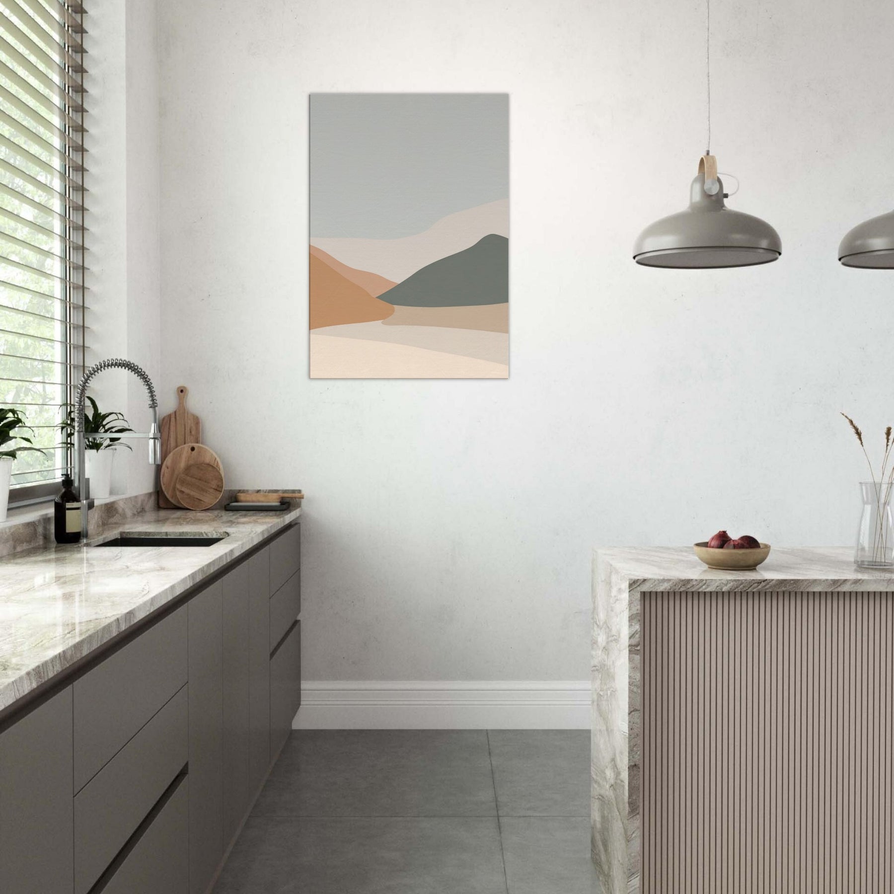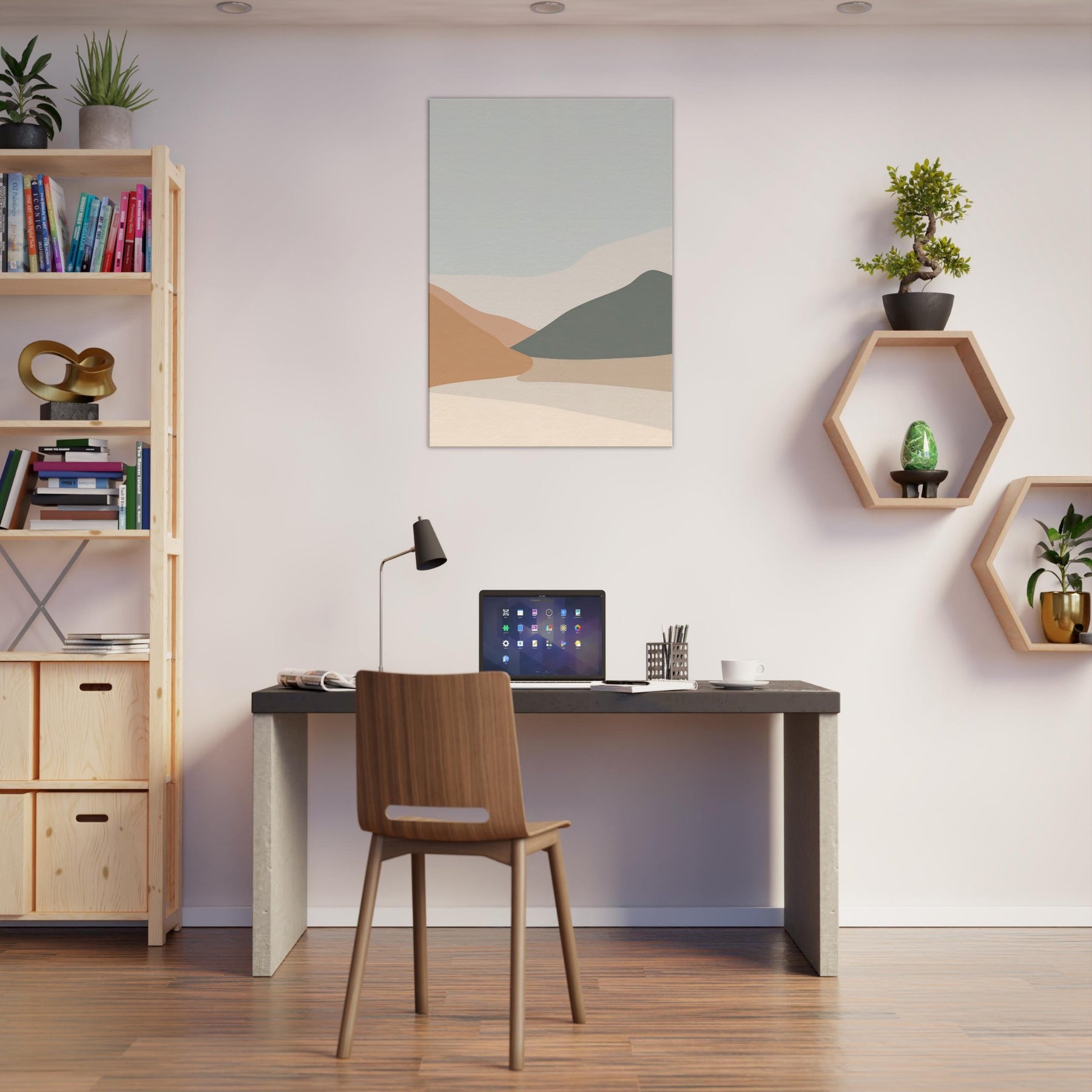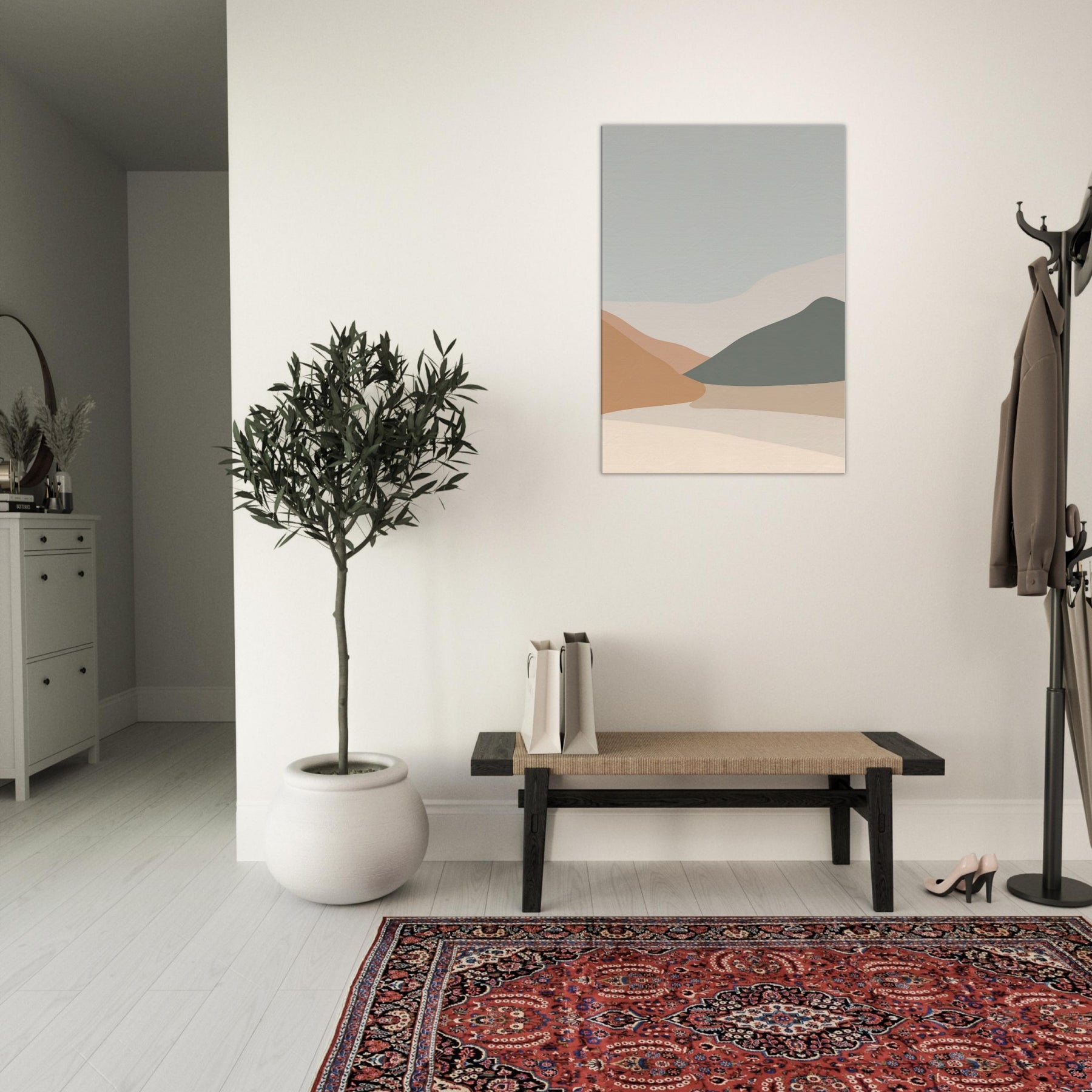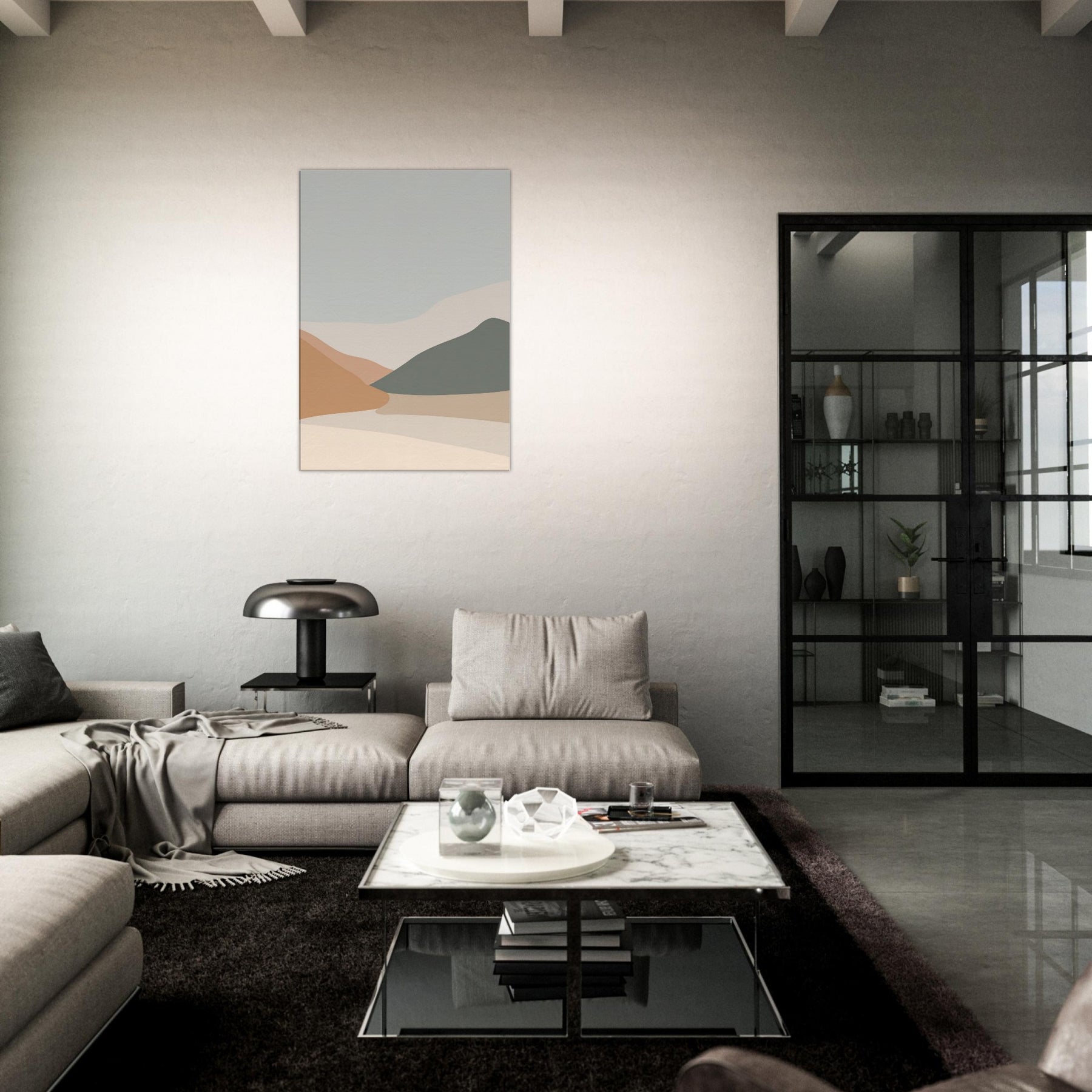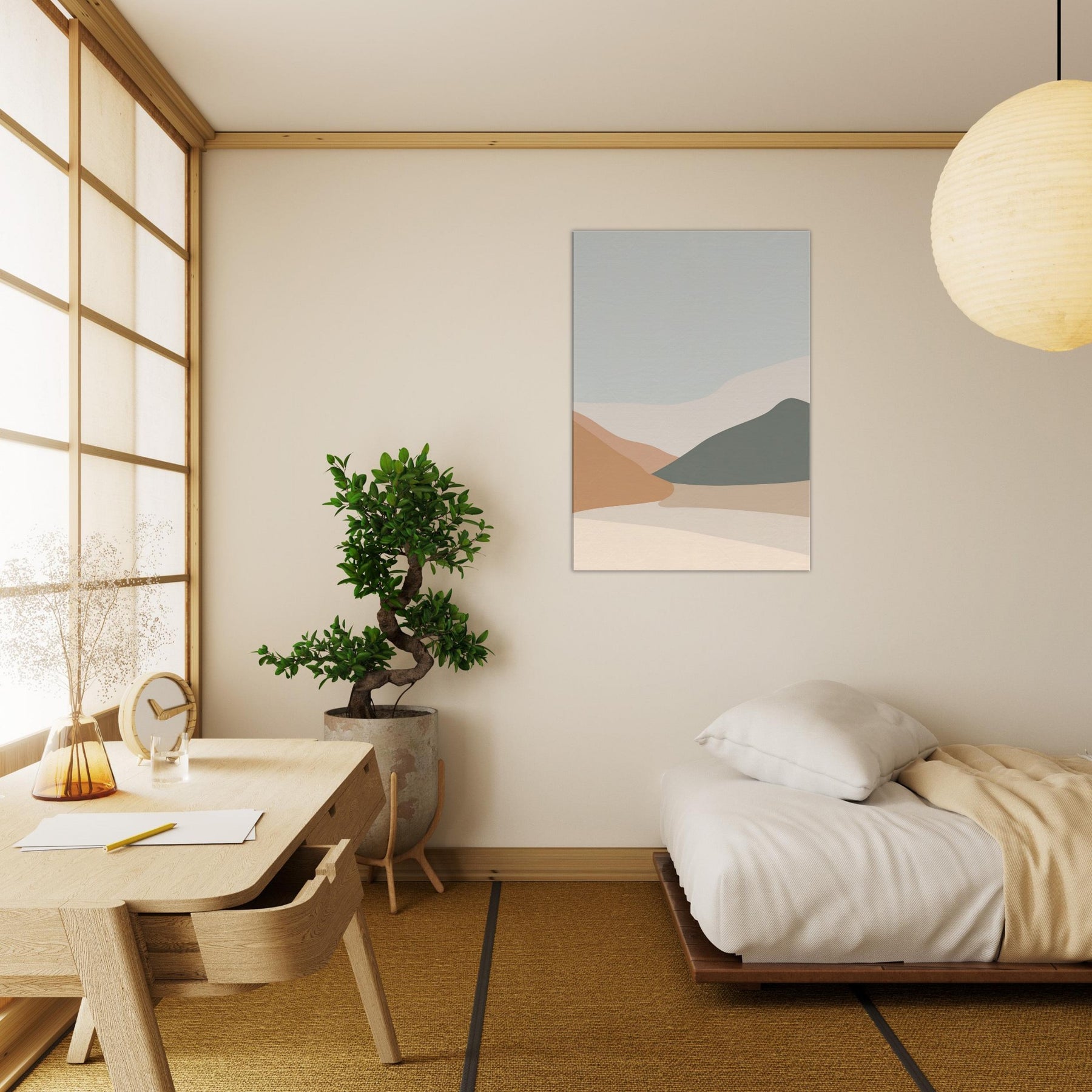 Like a quiet conversation with the horizon, this minimalist composition invites the eye to travel across softly layered Hills in a restrained palette of sand, sage, and pale blue. The gentle curves evoke distant valleys and morning air, turning a wall into a lens for calm. In living rooms, bedrooms, or studios, it adds quiet sophistication without shouting, pairing beautifully with natural textures and warm lighting. A timeless reminder that nature's geometry can soothe, center, and elevate everyday space.