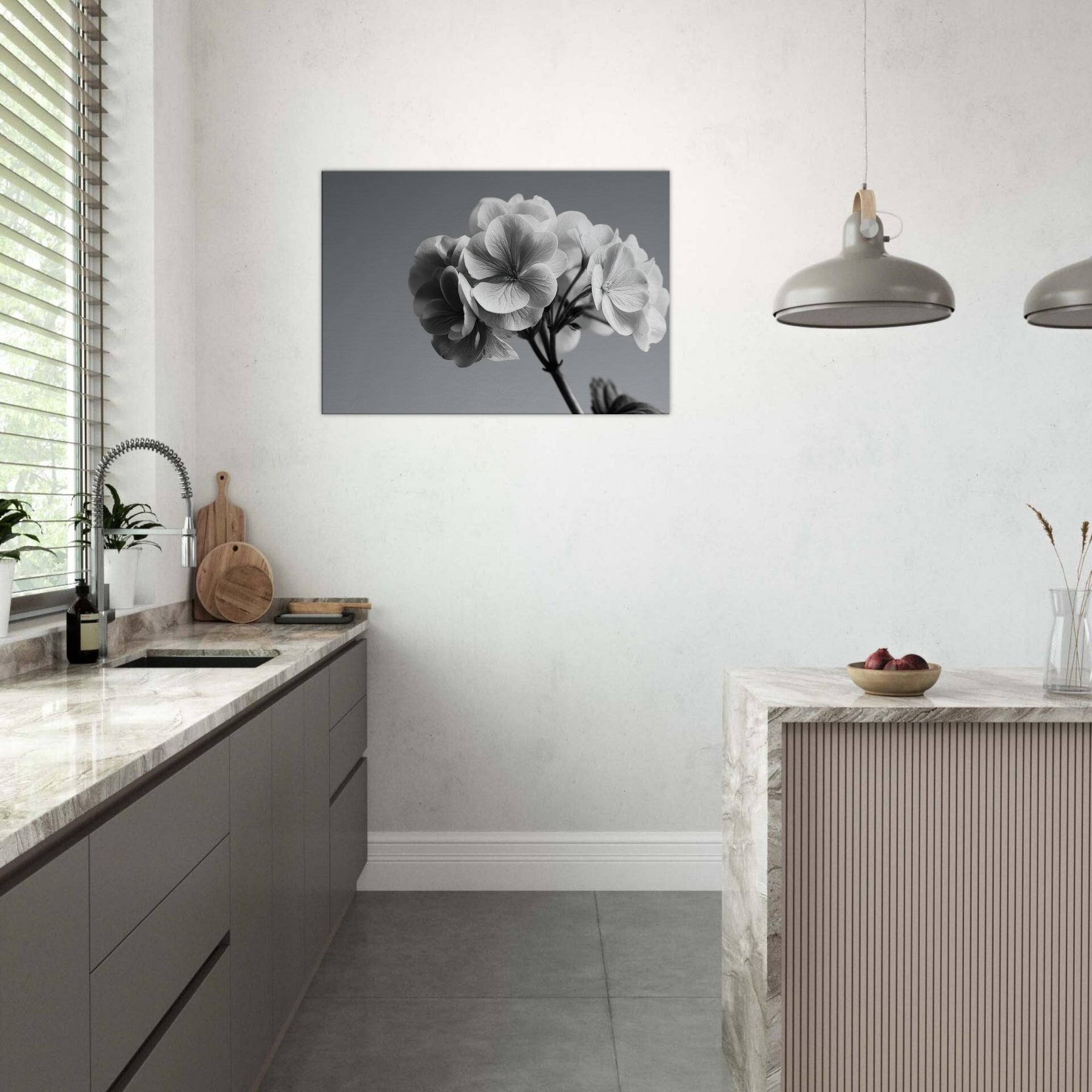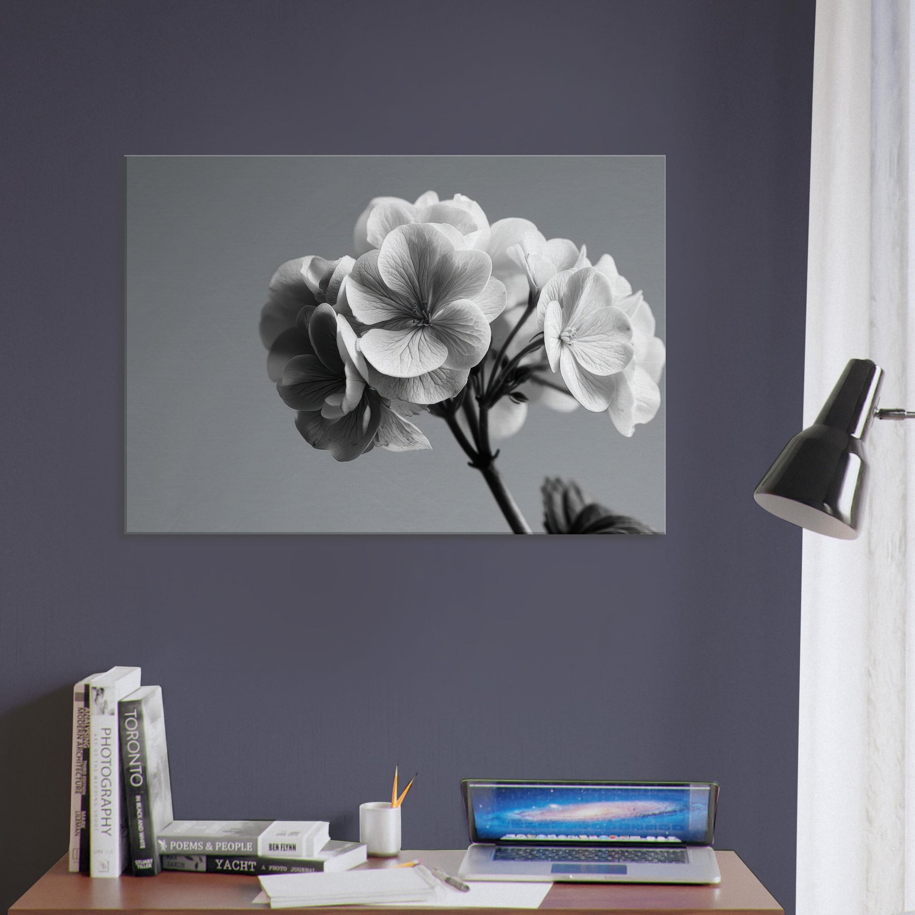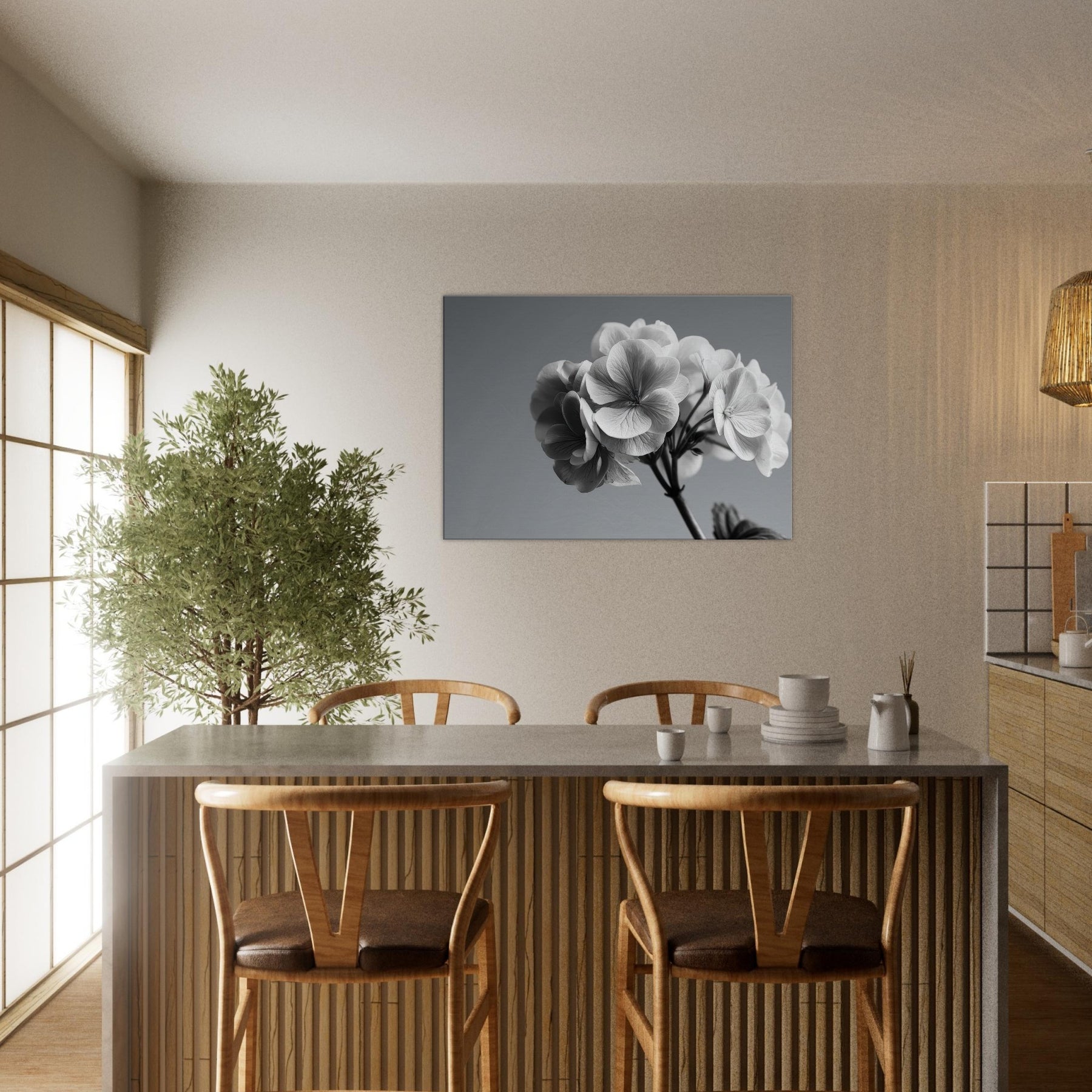 Immerse your space in the quiet drama of a hydrangea captured in pristine black and white. This wall art invites soft light and shadow to play across every petal, turning a simple bloom into a refined conversation piece.