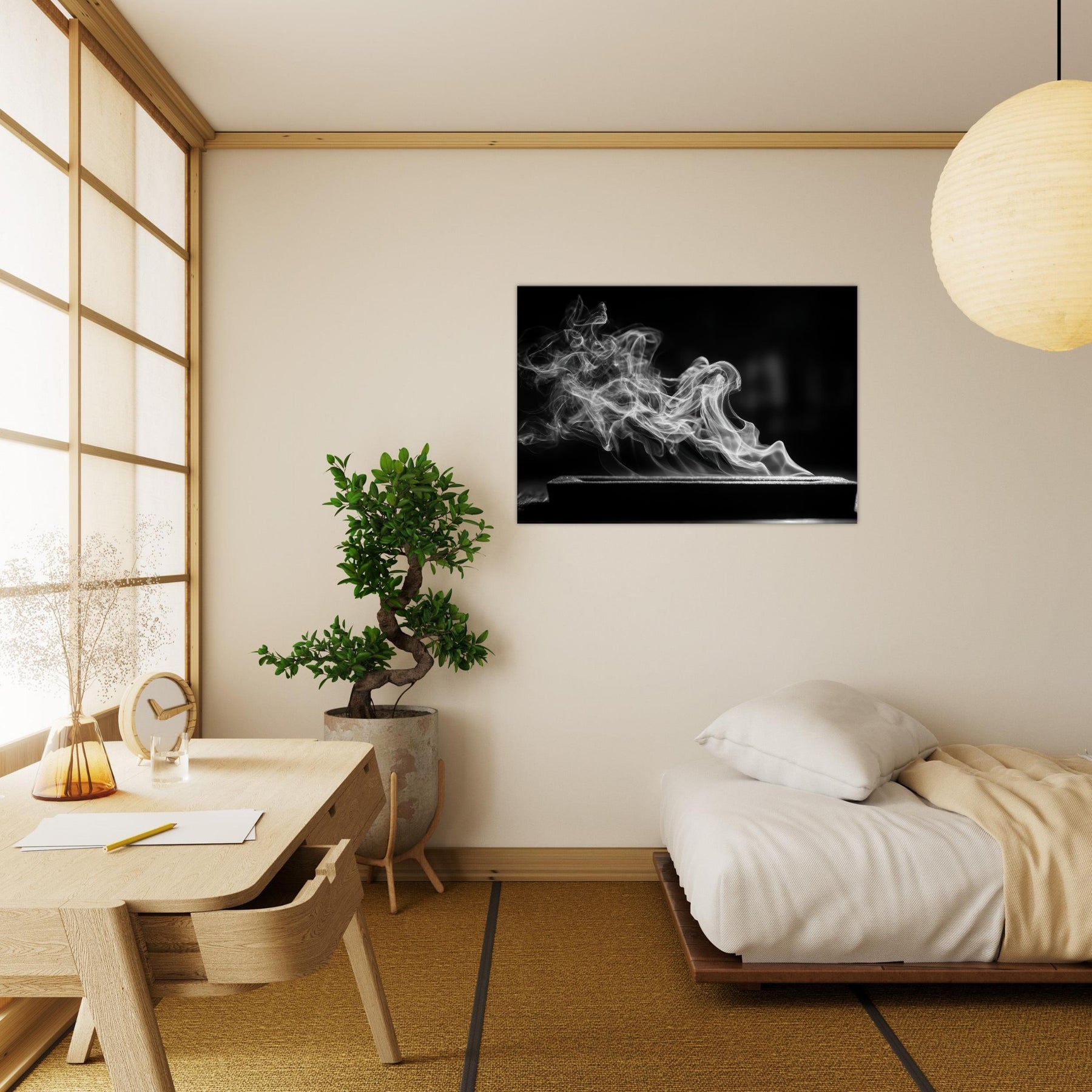 This image slows time, turning a living space into a serene sanctuary where evenings feel ceremonial and thoughts settle like ash. The mood is intimate and refined, a subtle drama that complements a couch, a desk, or a gallery wall. Let it drift through your room, and let the fragrance of calm linger.