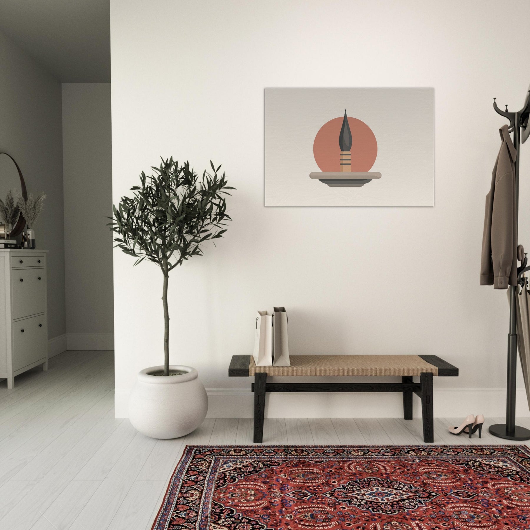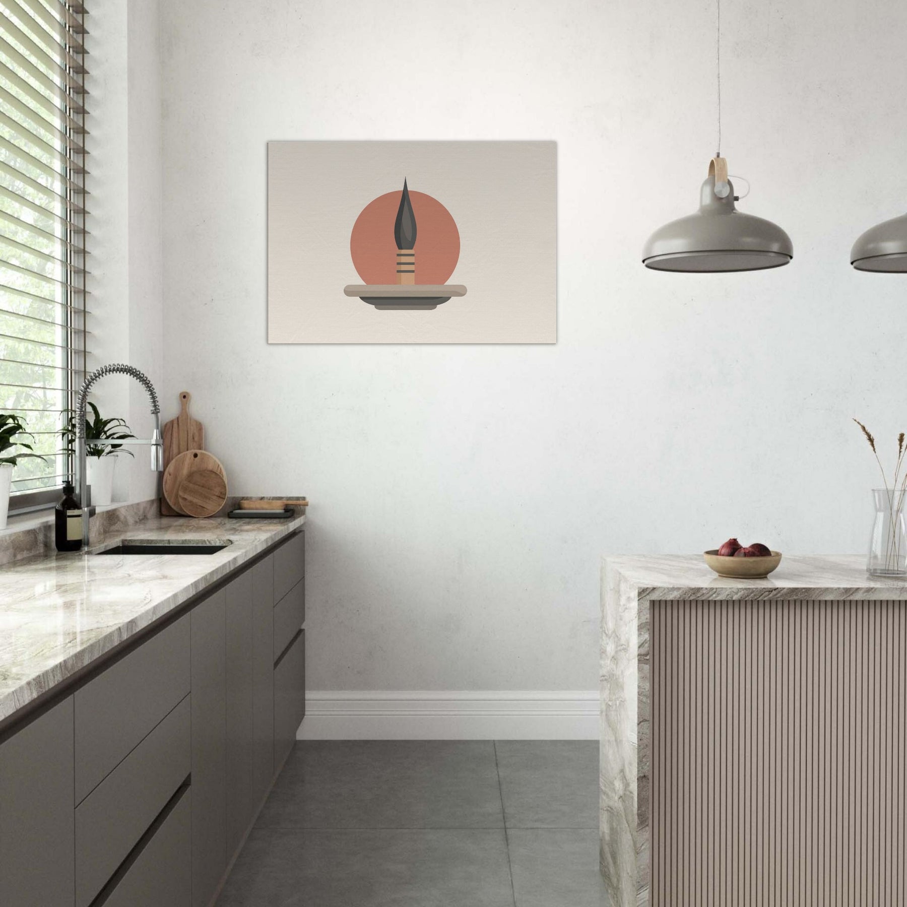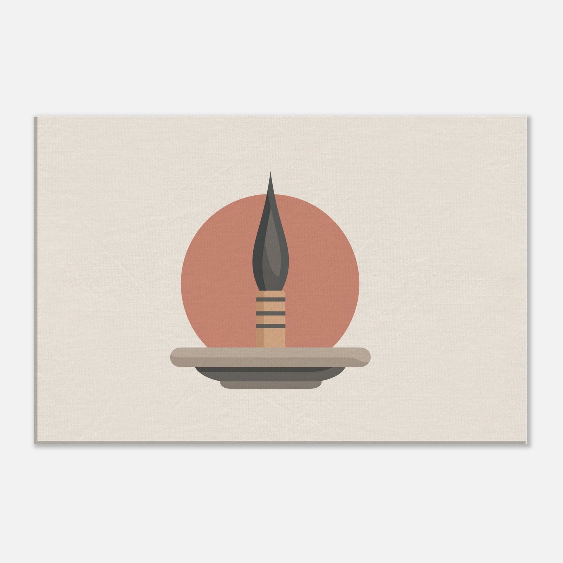This minimalist study of a Calligraphy Brush & Inkstone invites quiet contemplation into any room. The restrained palette and pared back forms evoke a serene studio dawn, where every stroke feels deliberate and unhurried. The warm ochre circle anchors the composition, while the muted layers suggest memory and craft. Perfect above a console or in a reading nook, this piece adds tactile hush and refined atmosphere, elevating everyday spaces with enduring grace.