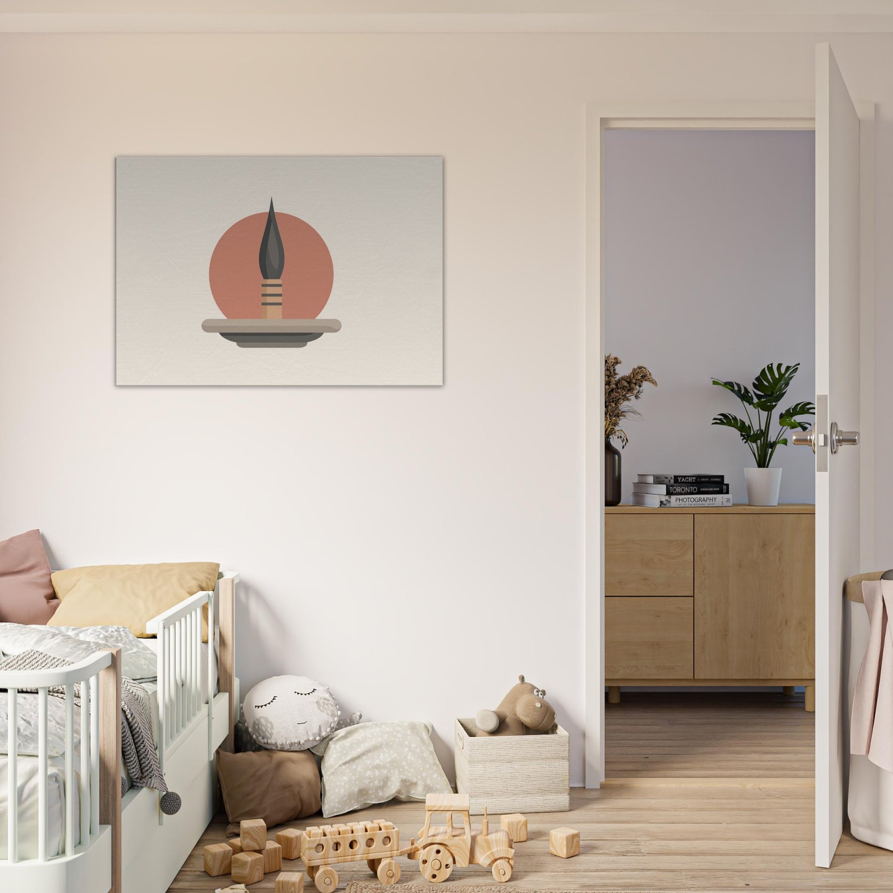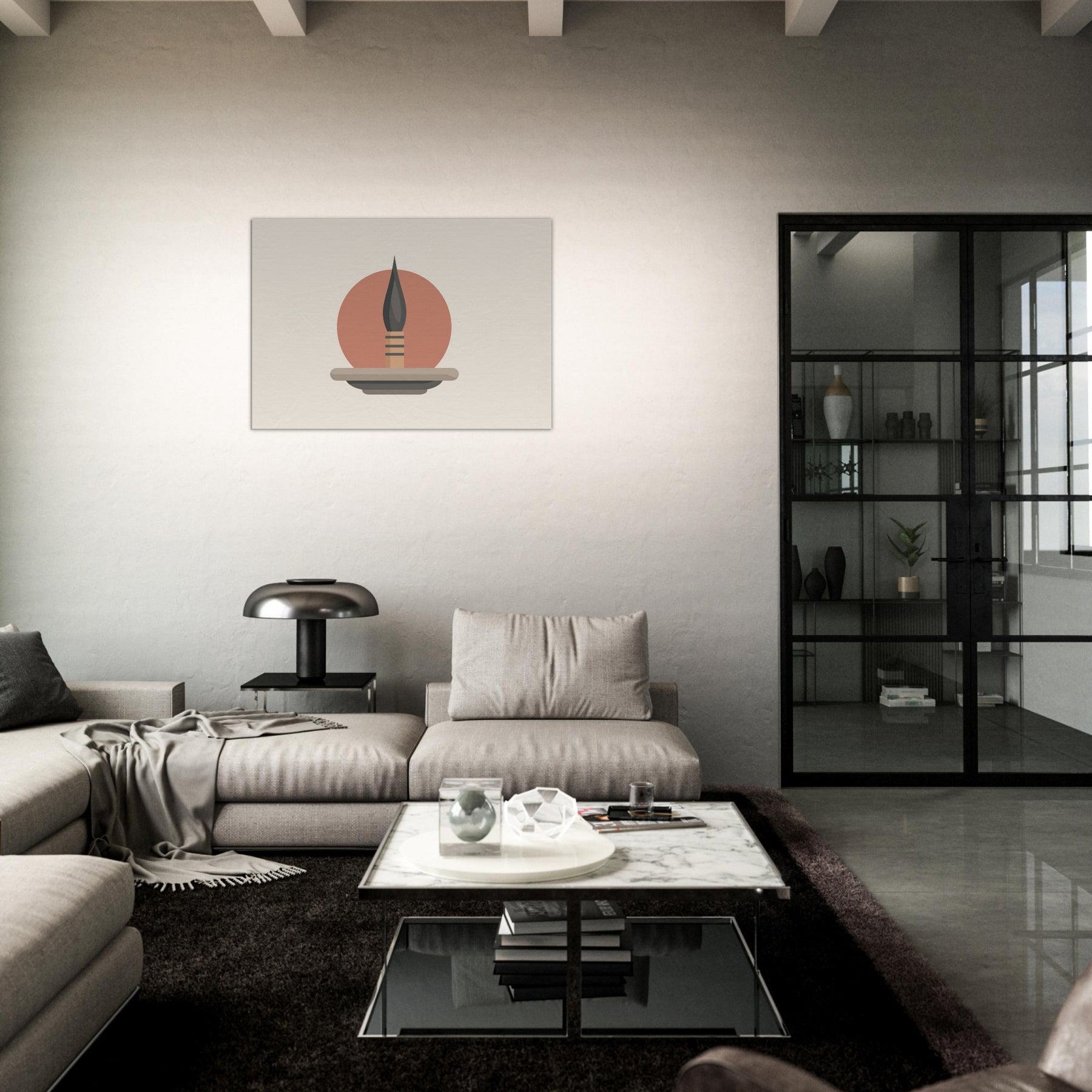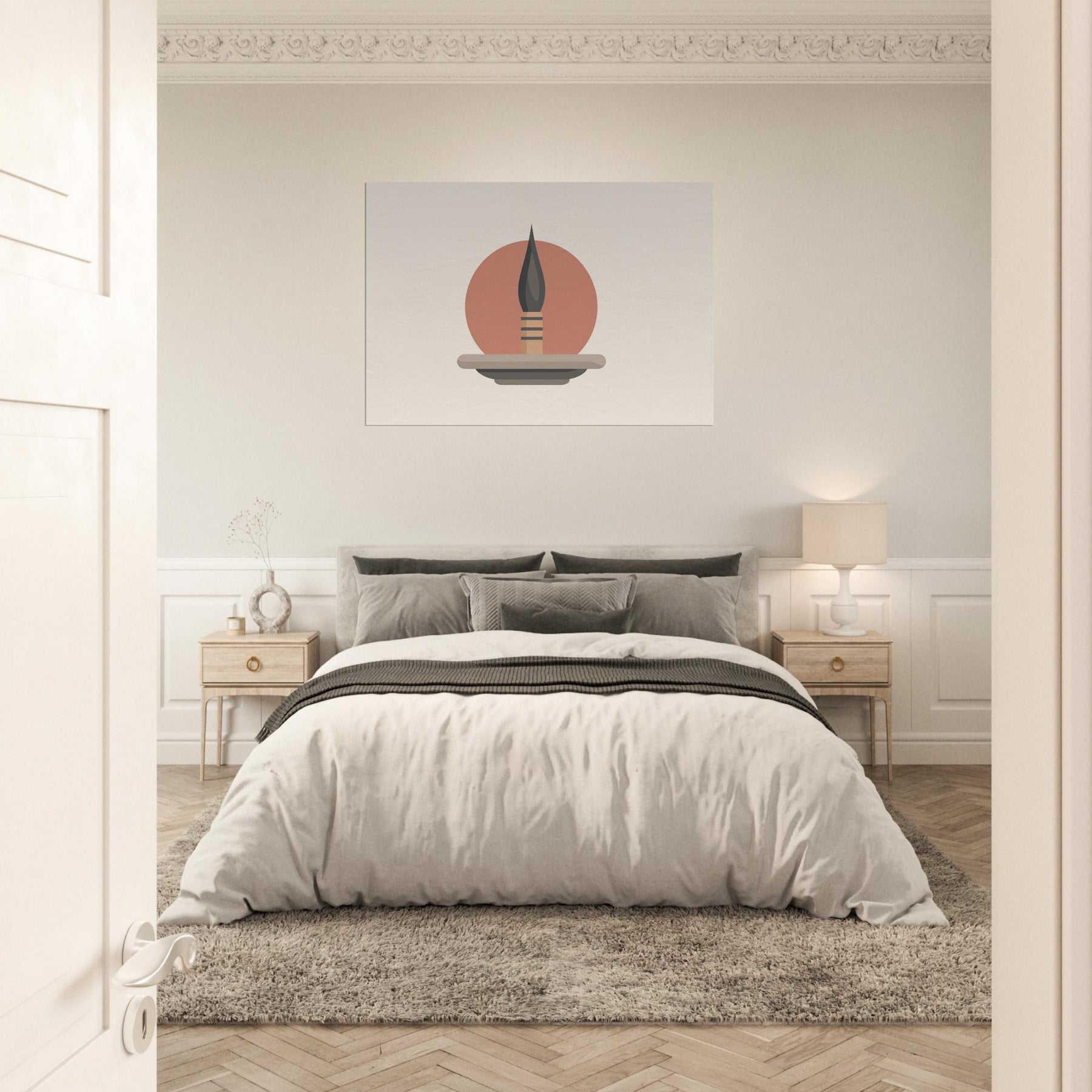 This minimalist study of a Calligraphy Brush & Inkstone invites quiet contemplation into any room. The restrained palette and pared back forms evoke a serene studio dawn, where every stroke feels deliberate and unhurried. The warm ochre circle anchors the composition, while the muted layers suggest memory and craft. Perfect above a console or in a reading nook, this piece adds tactile hush and refined atmosphere, elevating everyday spaces with enduring grace.