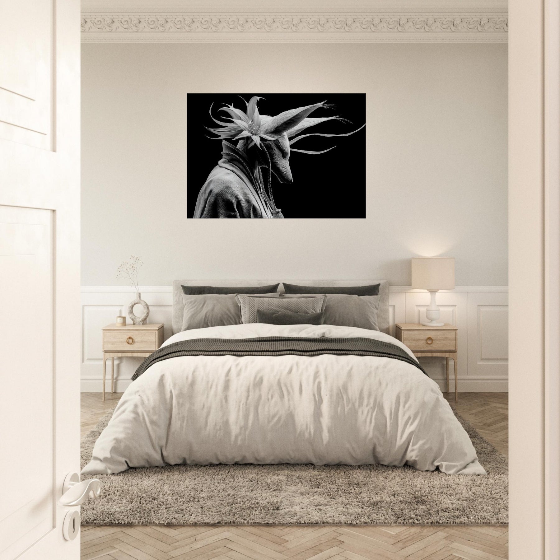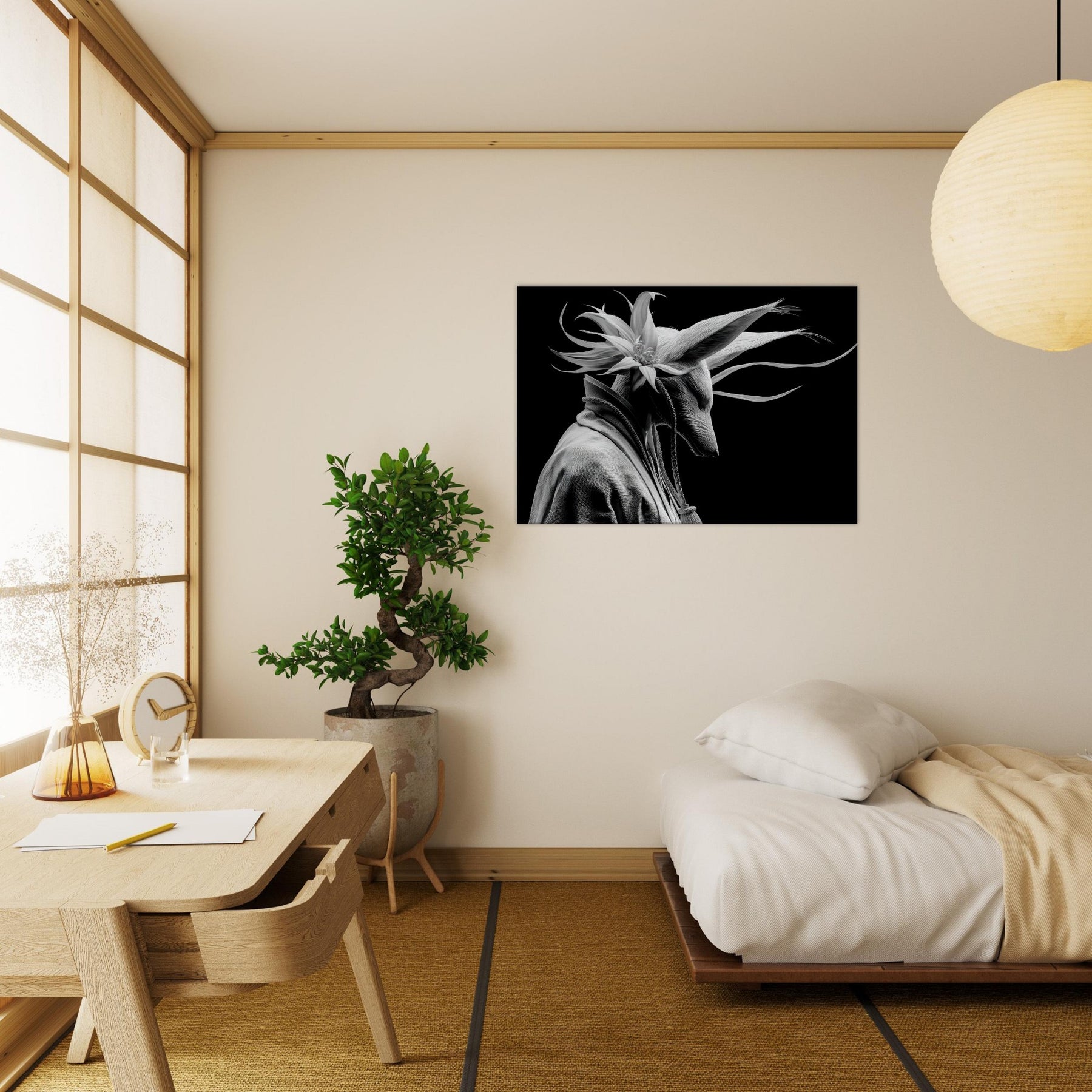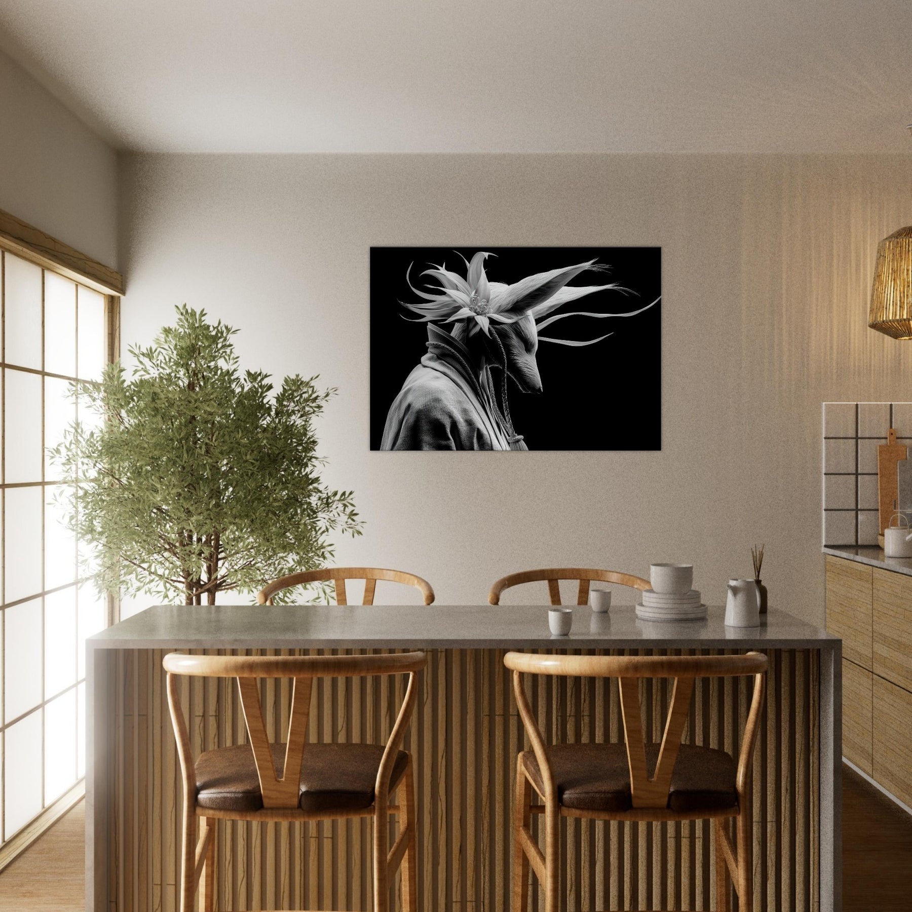 This wall piece transforms a living space into a nocturnal shrine, inviting calm, focus, and wonder. The contrast and restraint heighten every surface sofas, walls, lamps while the primary subject radiates mythic grace.