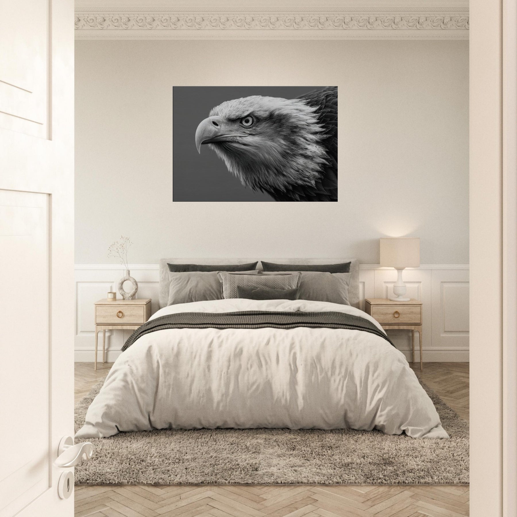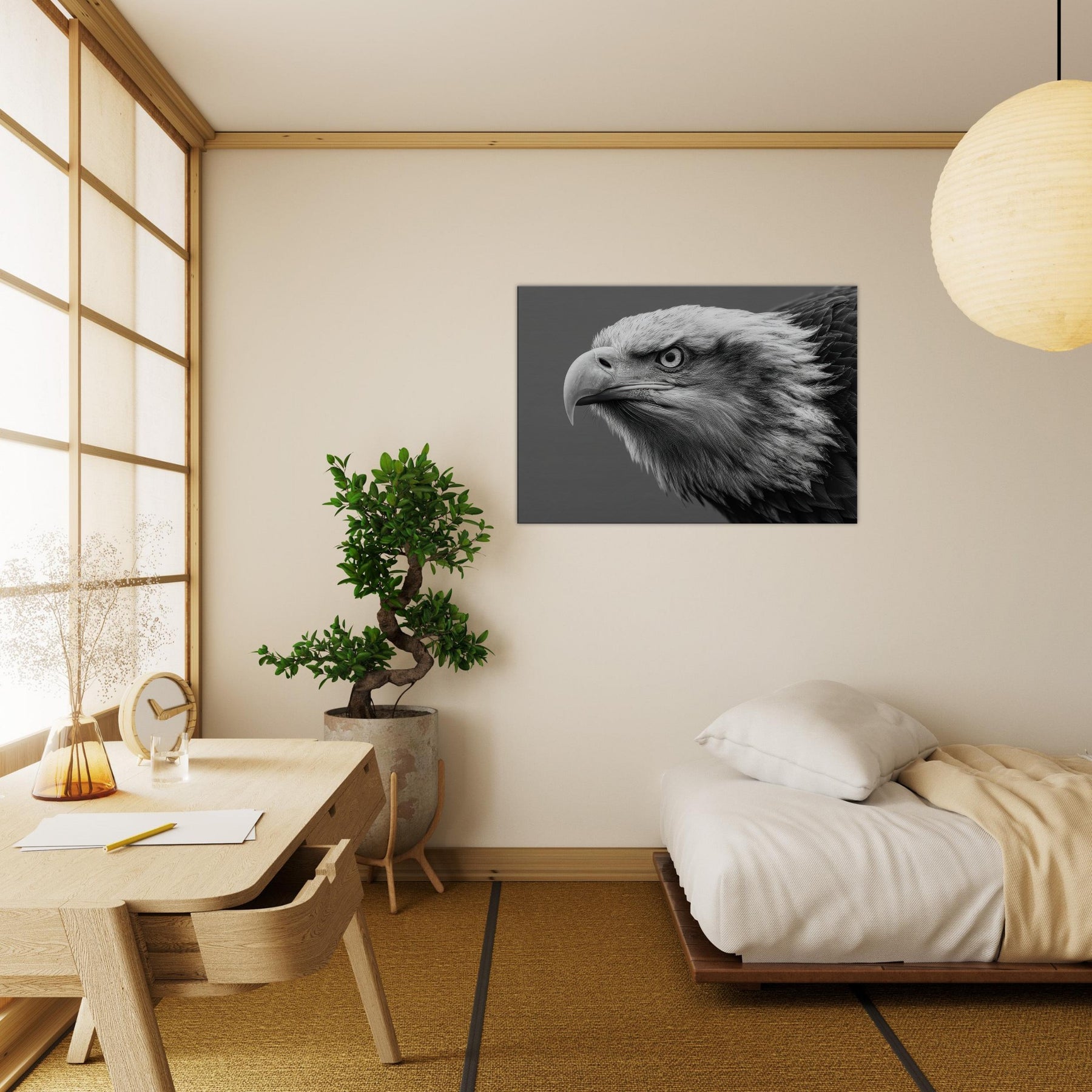 Against a quiet field of grayscale, this Eagle print commands the room with a breathing stillness. The bold contrast and razor fine feather detail invite a closer, almost ceremonial attention the sort of presence that elevates everyday spaces into a sanctuary. In a living room or study, the monochrome mood threads through furniture and light, adding depth without competing with your color palette. Let its steady gaze anchor conversations and mornings, turning walls into a quiet declaration of strength and clarity.