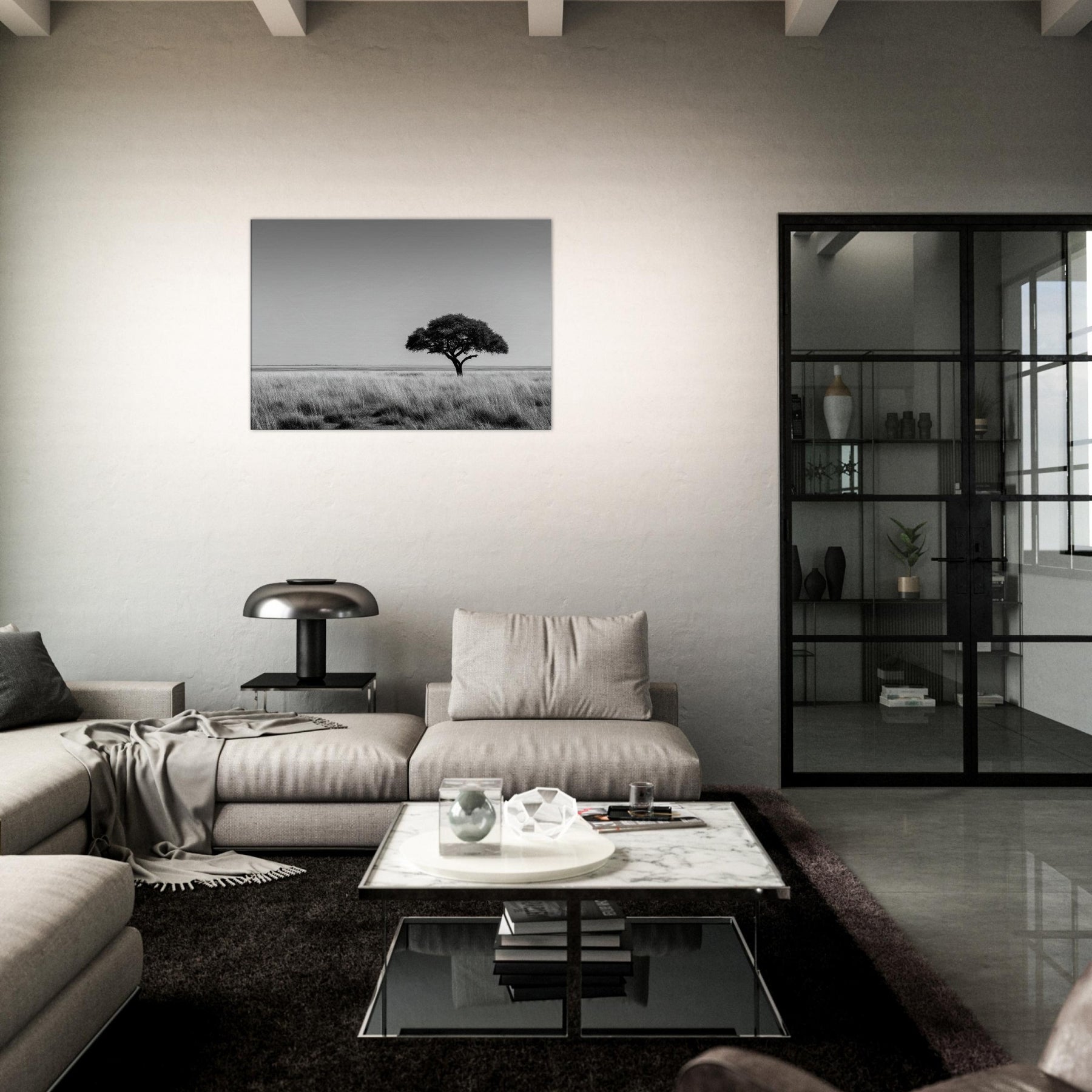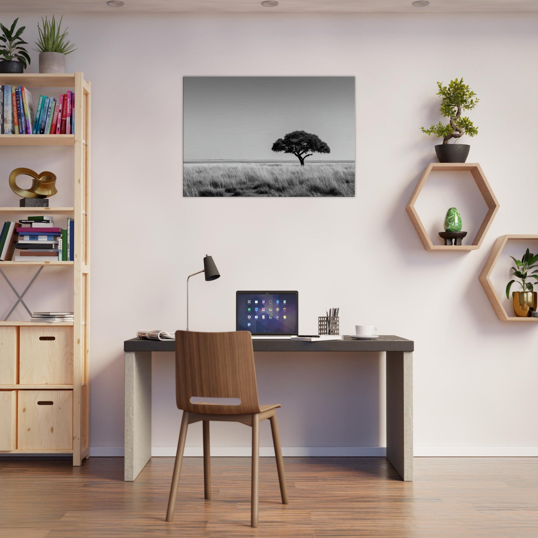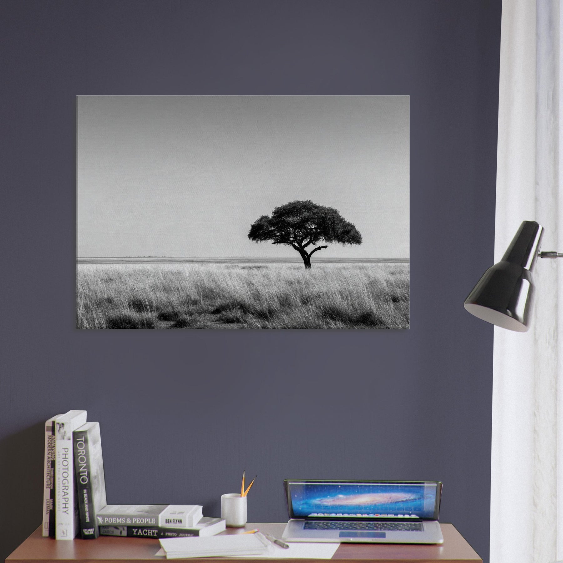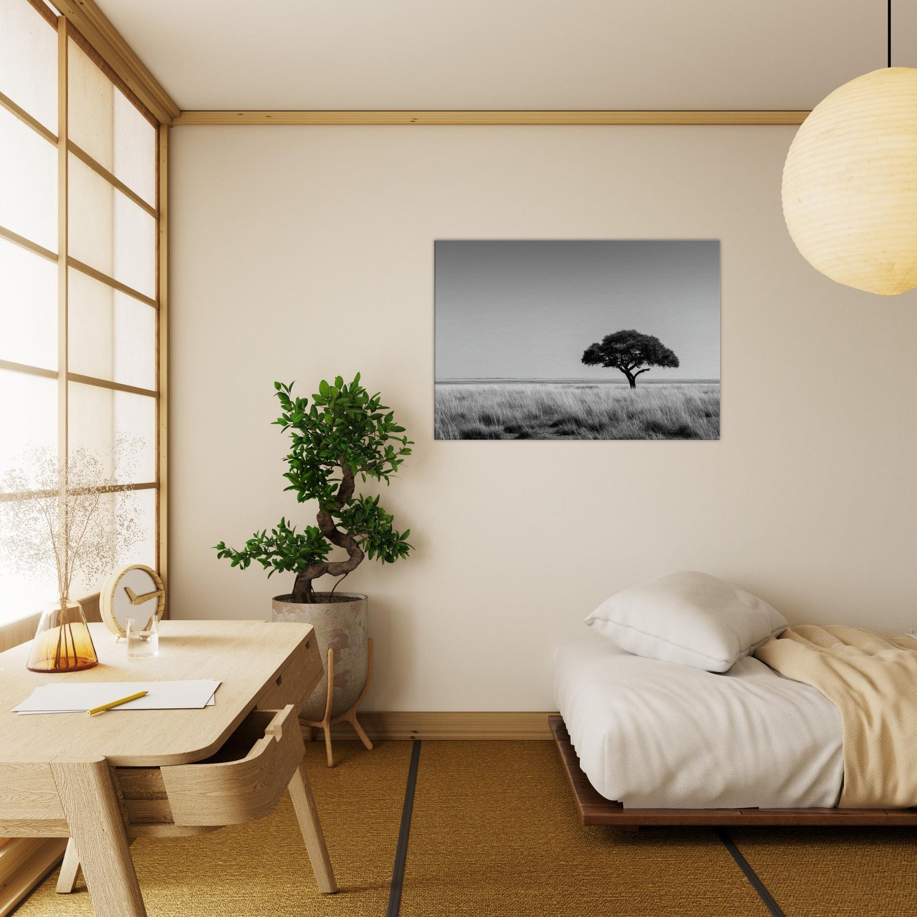 The grainy, luminous field and stark branches invite slow breathing, fostering a sanctuary like mood in any room. This artwork captures Savannah’s timeless strength and grace, turning a living space into a serene of focus and grace, where daily moments feel more deliberate and deeply grounded.