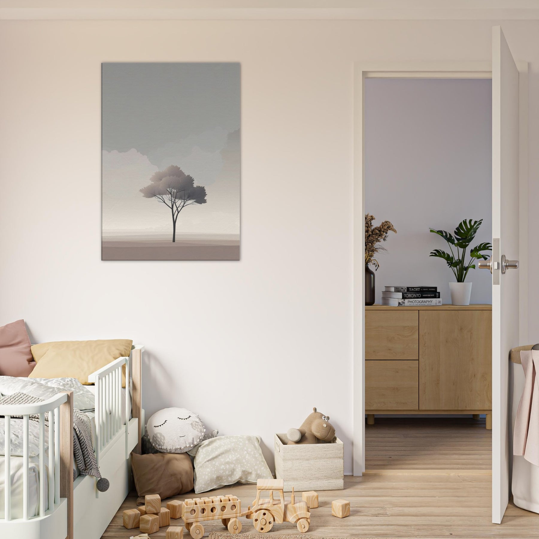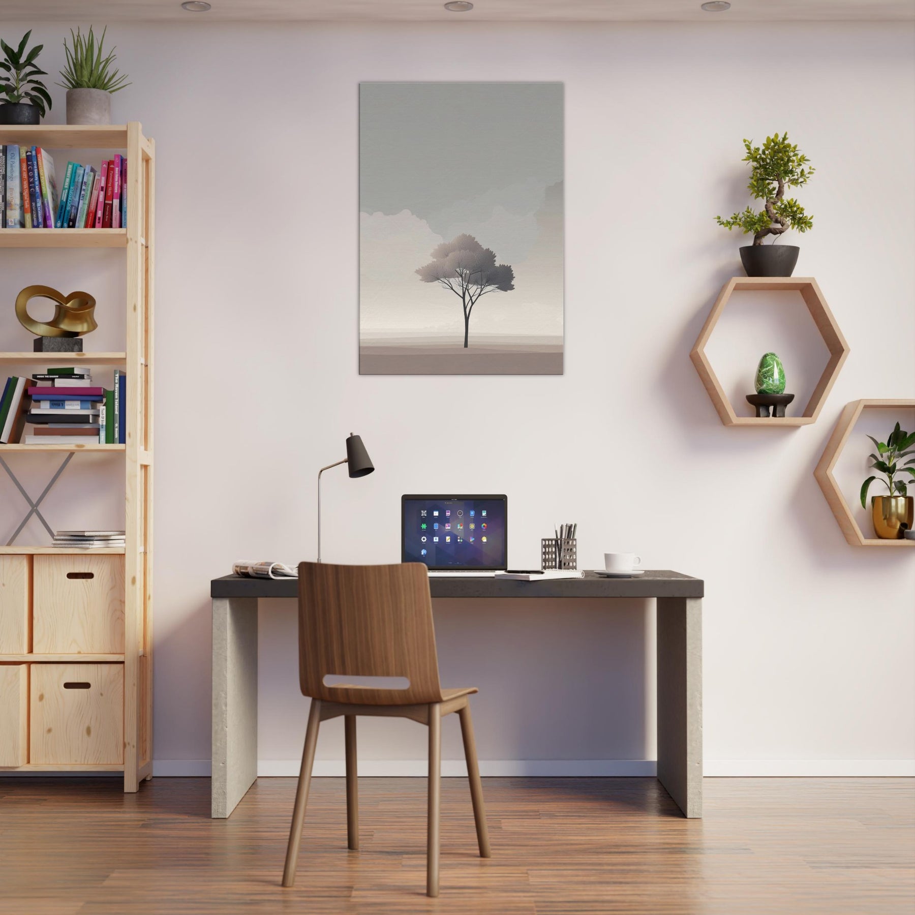 Against a vast, quiet horizon, the Lone Tree stands with spare elegance. In soft gradients of sand and smoke, its slender trunk anchors a canopy of delicate branches, inviting a meditative breath into the room. This minimalist composition slows time, letting light play across walls and corners, turning an ordinary wall into a window of calm. Hang it in a living room or bedroom to soften hard edges, sharpen focus, and guide conversation with a subtle, nature inspired presence.