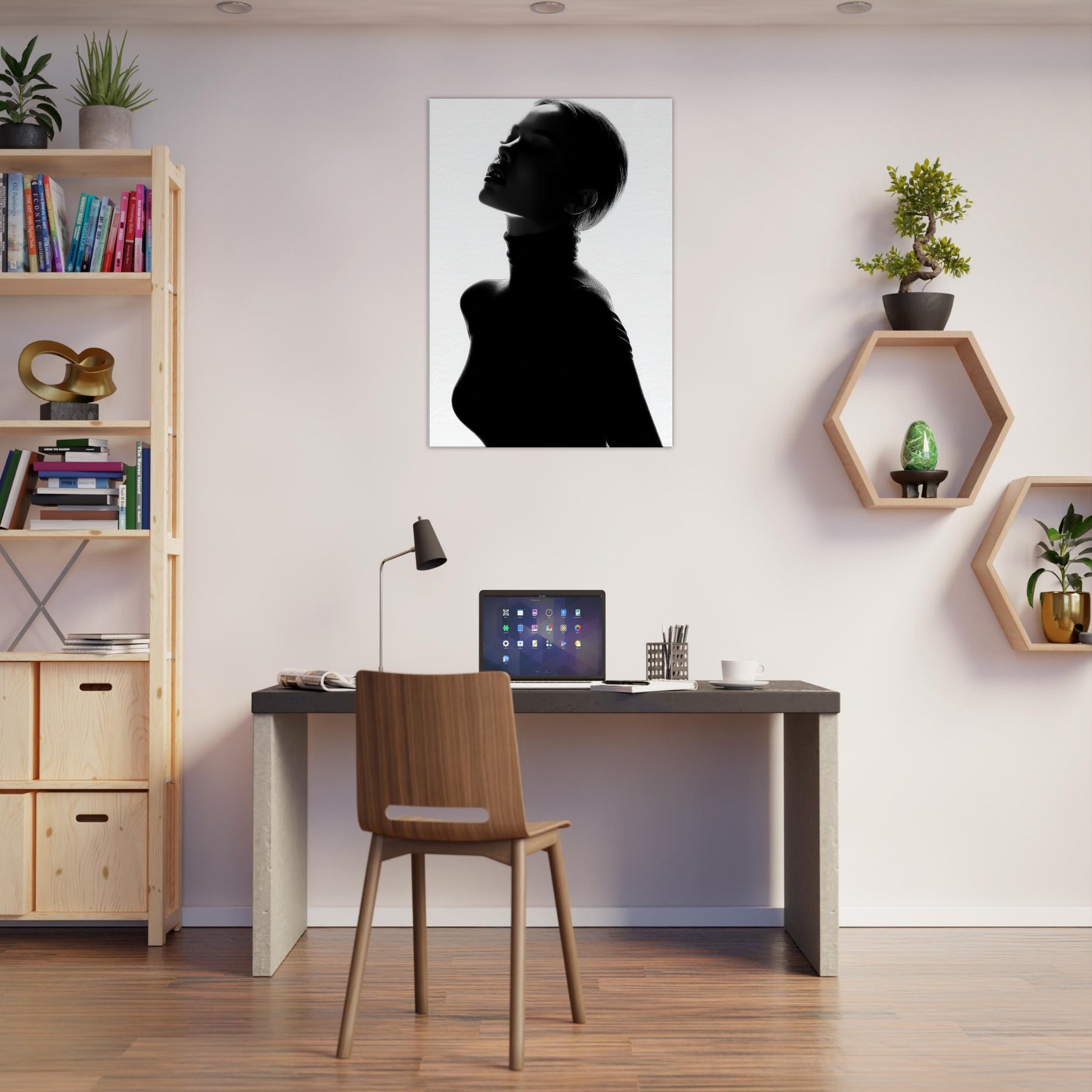 A study in light and shadow, this piece centers on the Female Silhouette, inviting a hush of mystery into your living space.