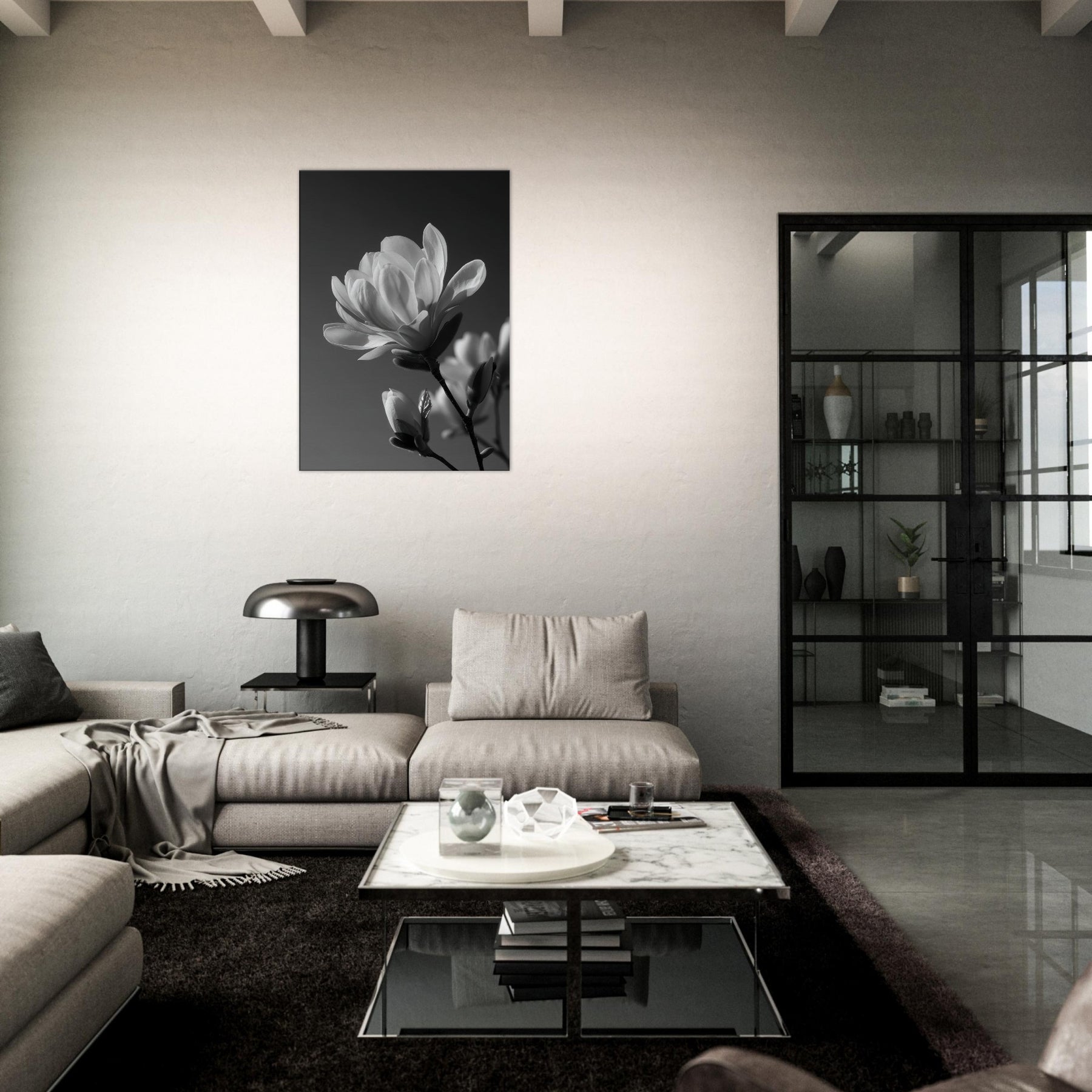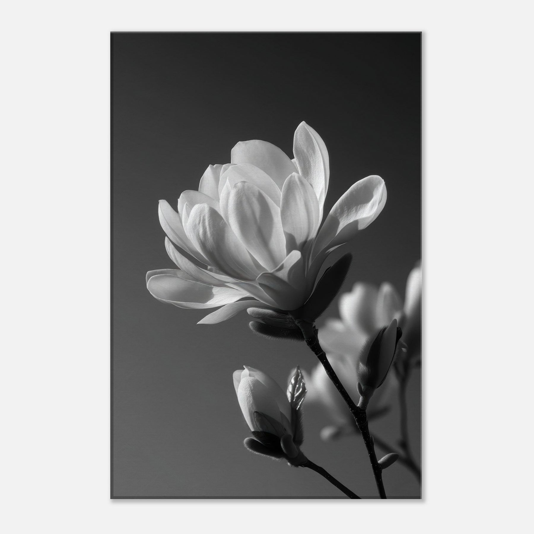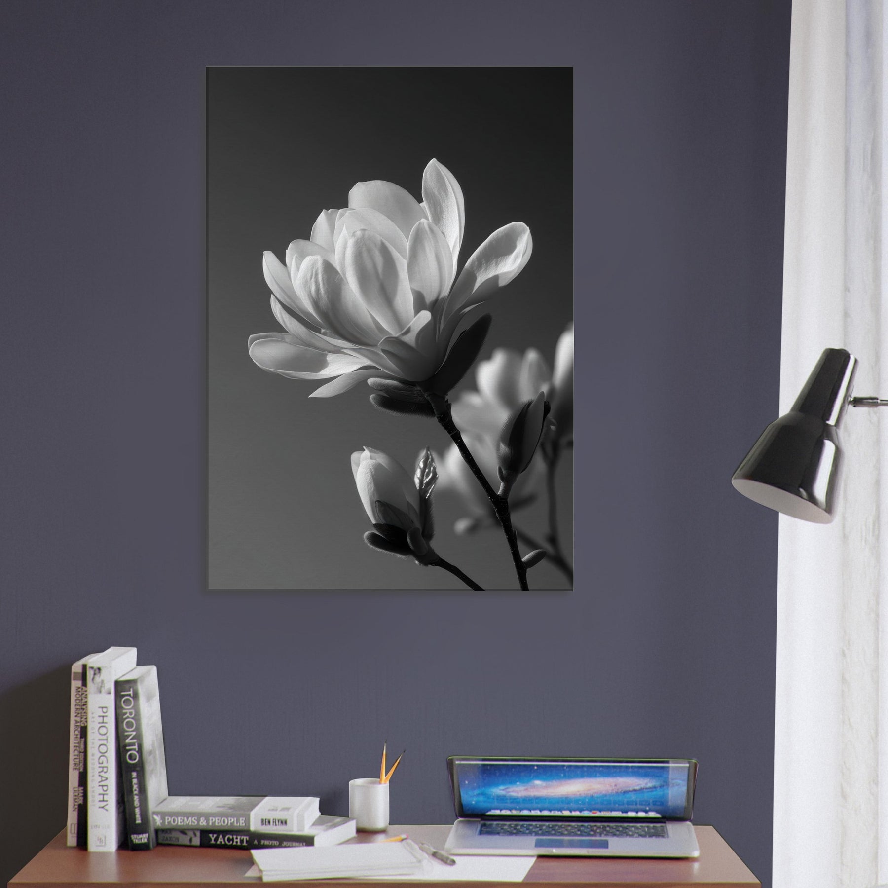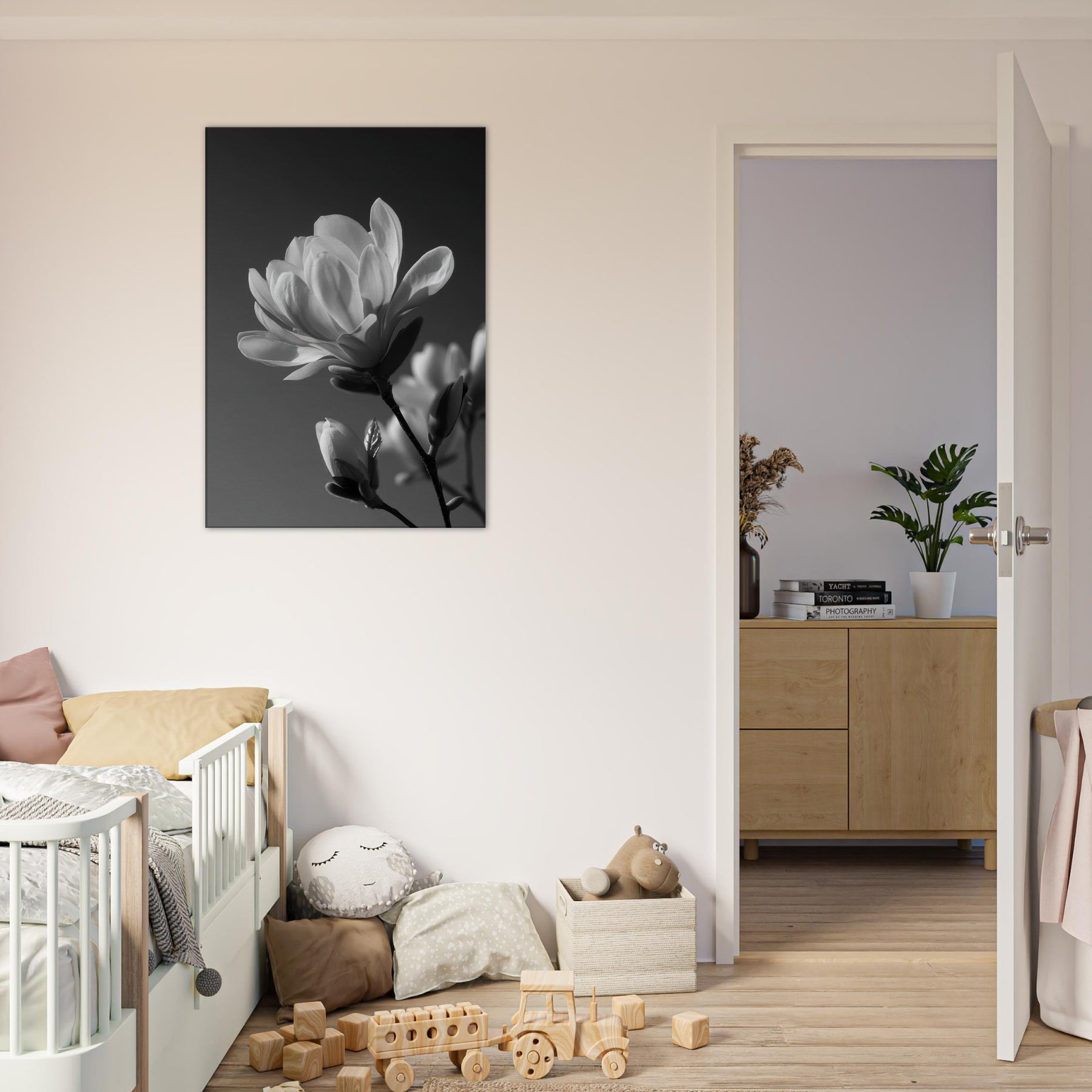 An intimate study of a Magnolia in monochrome, this print threads light and shadow into a quiet ritual of form. The soft curves of petals unfurl with tactile grace, inviting a calm, meditative presence into the room. In stark black and white, Magnolia blooms become a timeless focal point elegant, precise, and serene welcoming stillness to a living space. It pairs beautifully with minimal furnishings, casting subtle texture along walls, and elevating a lounge, bedroom, or hallway with contemporary nature inspired refinement.