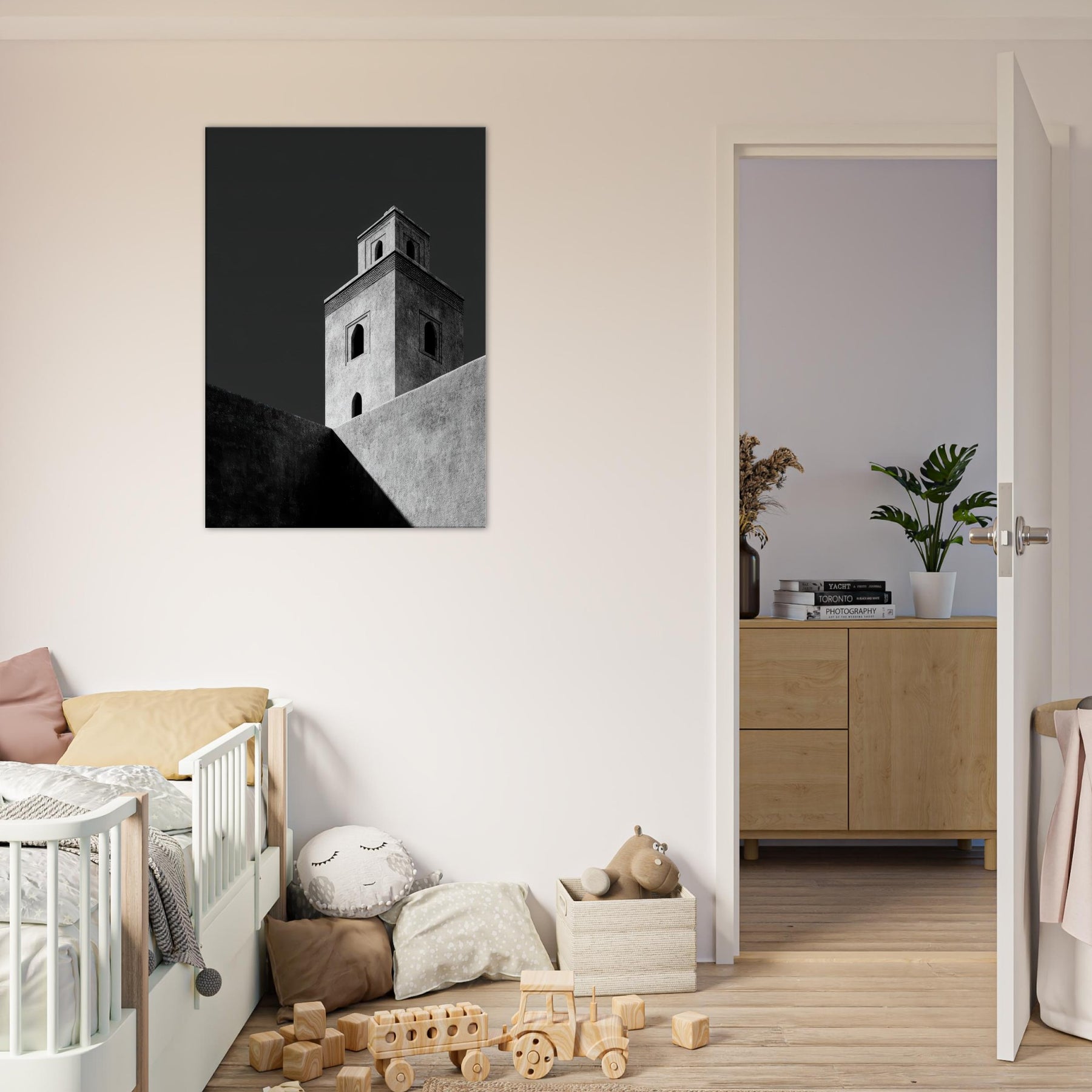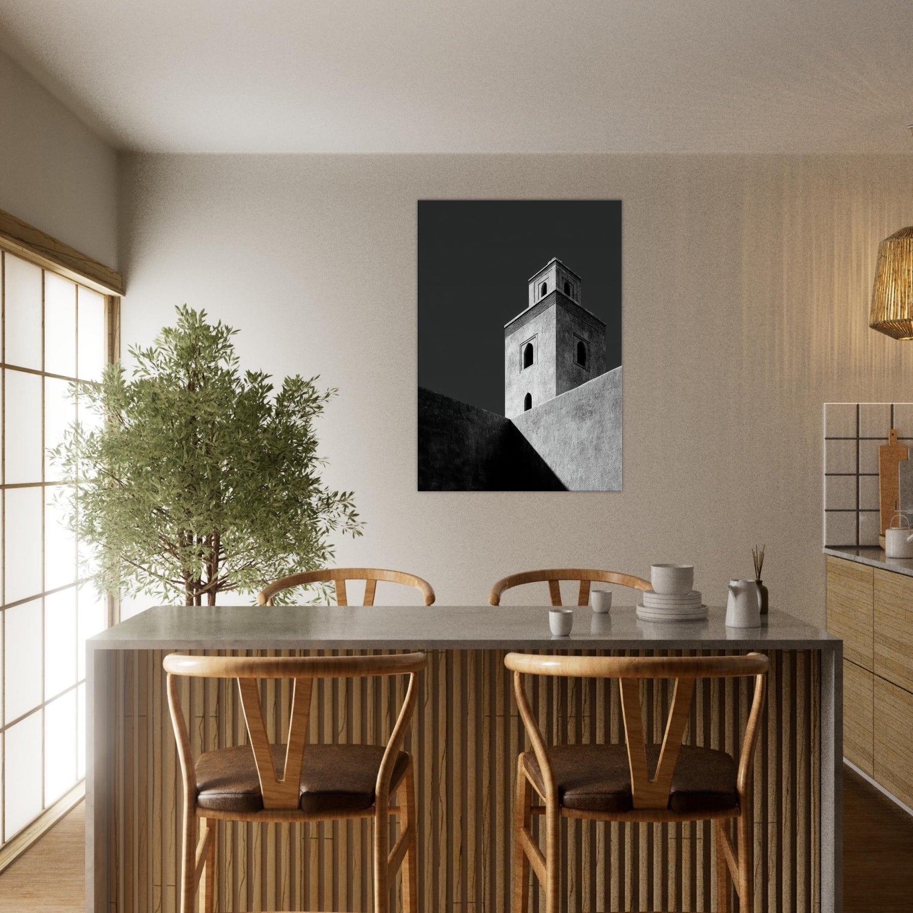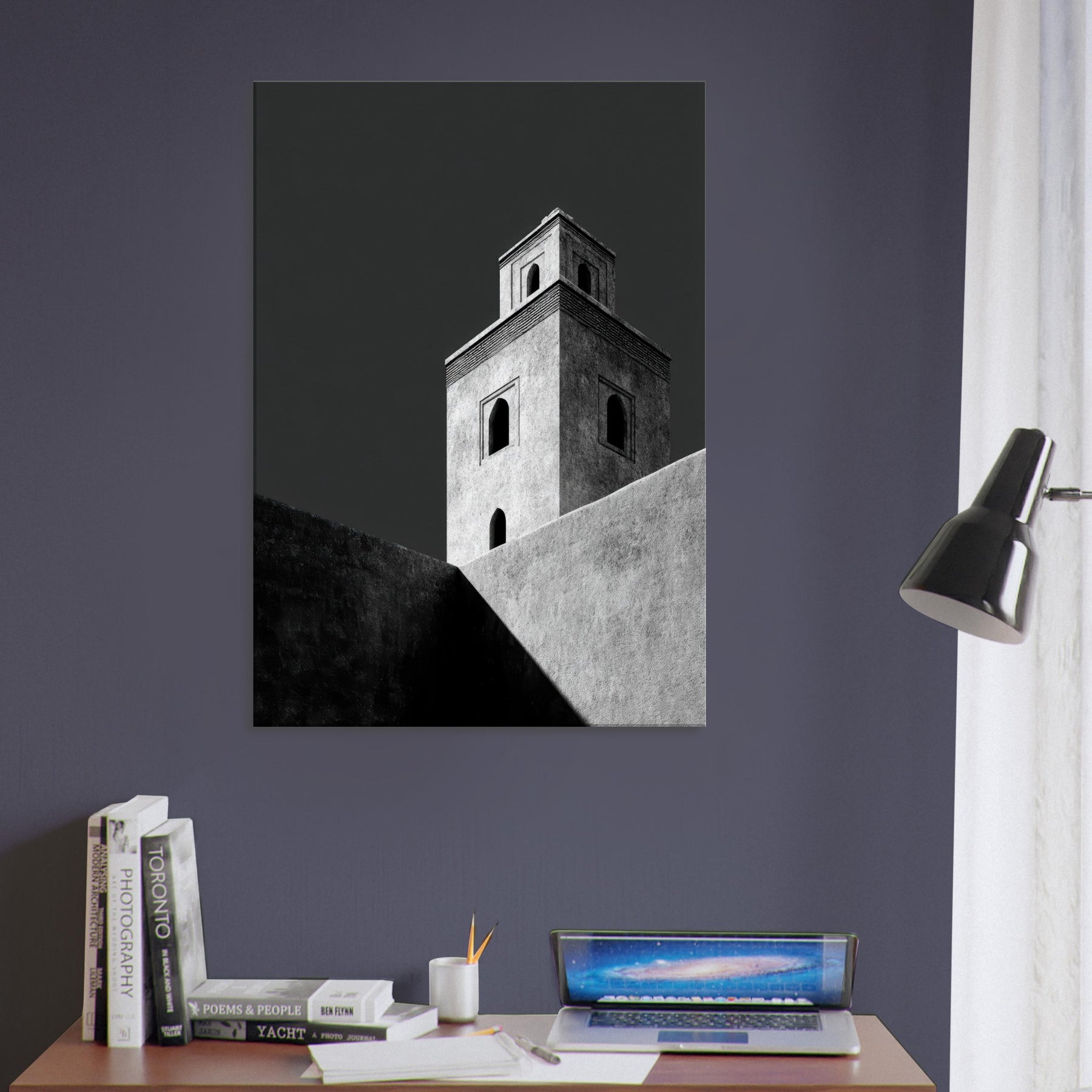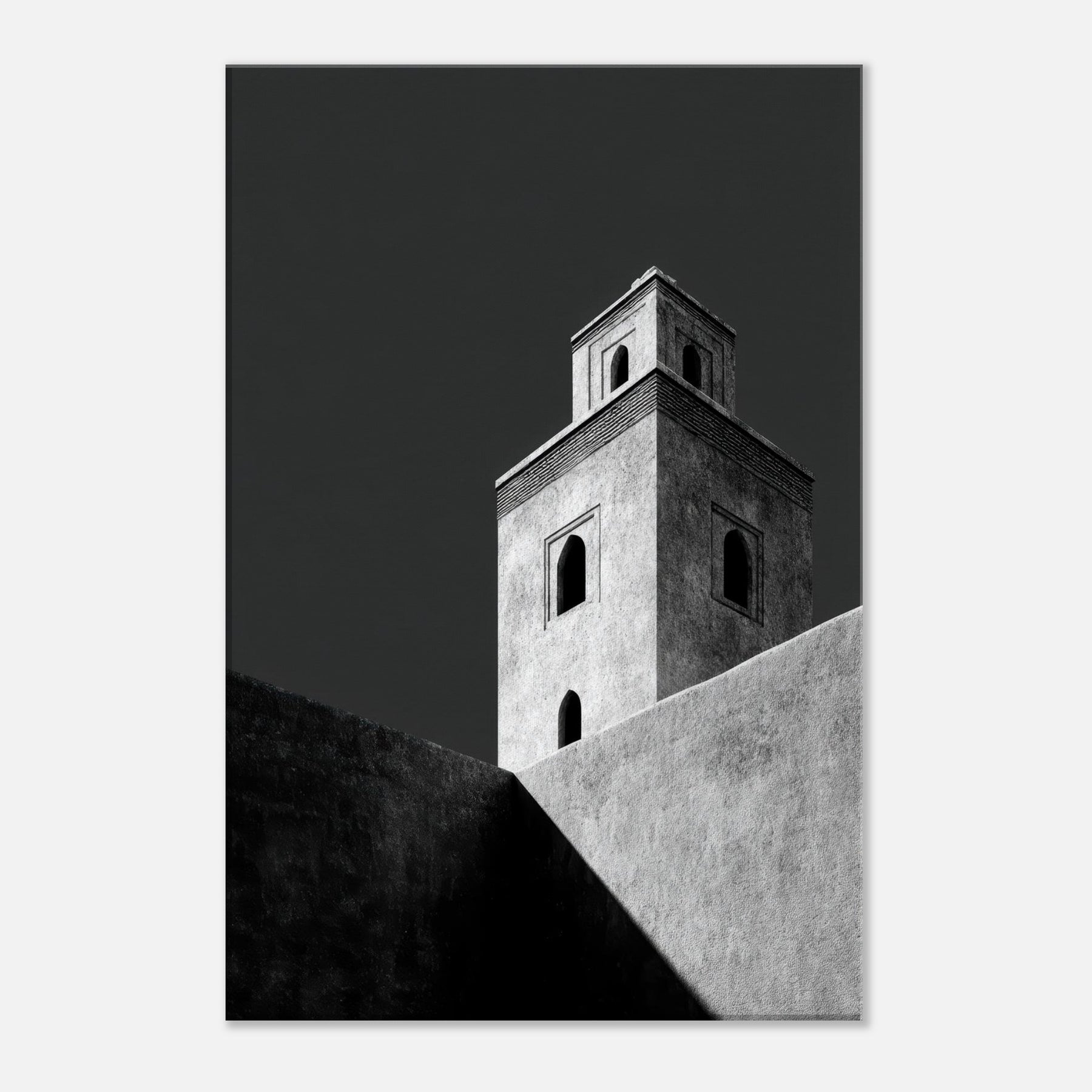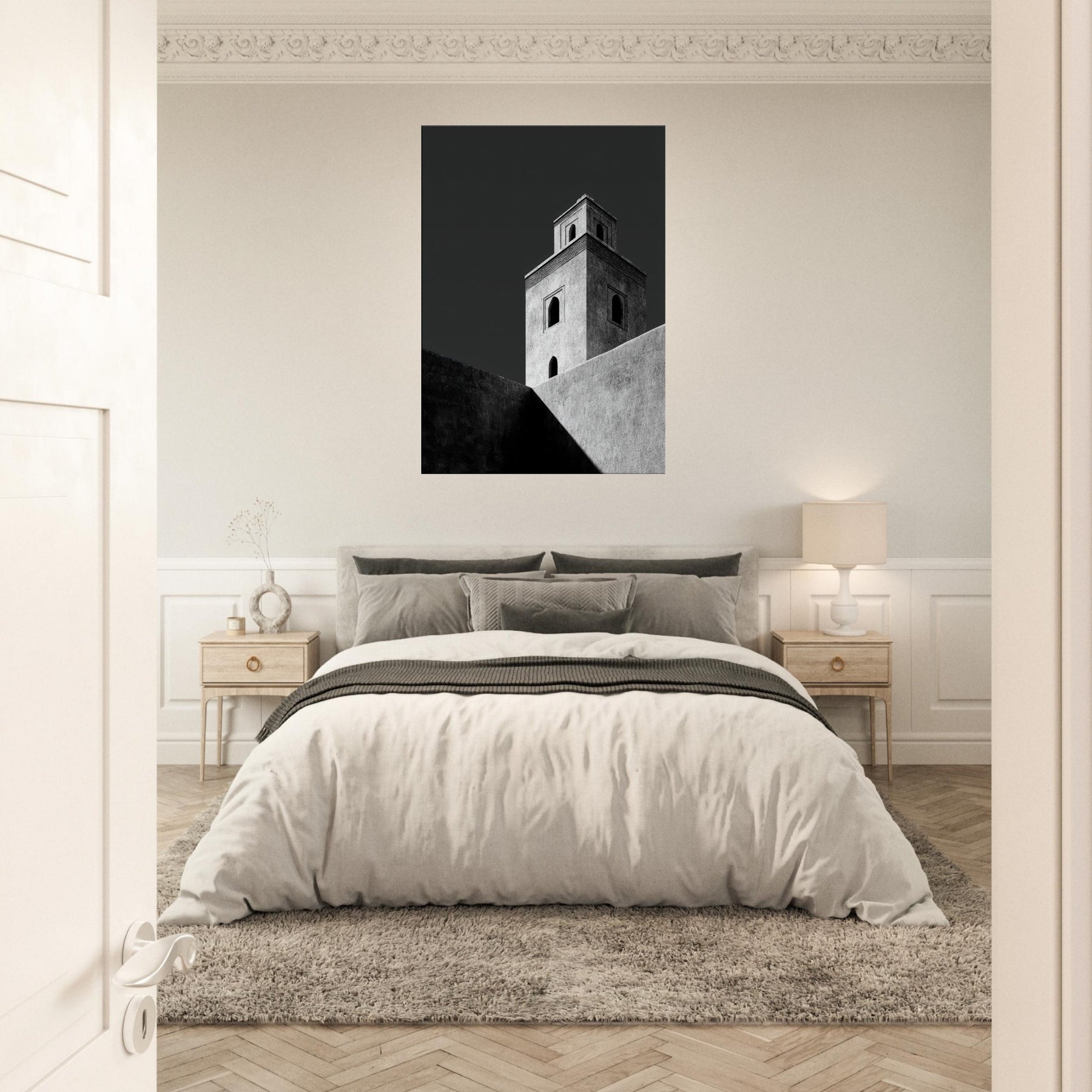 Marrakech, rendered in stark black and white, distills the city’s quiet geometry tower, arch, and wall arranged with calm precision. Light and shadow carve sculptural forms that feel ancient and modern at once, inviting a slow, attentive gaze.