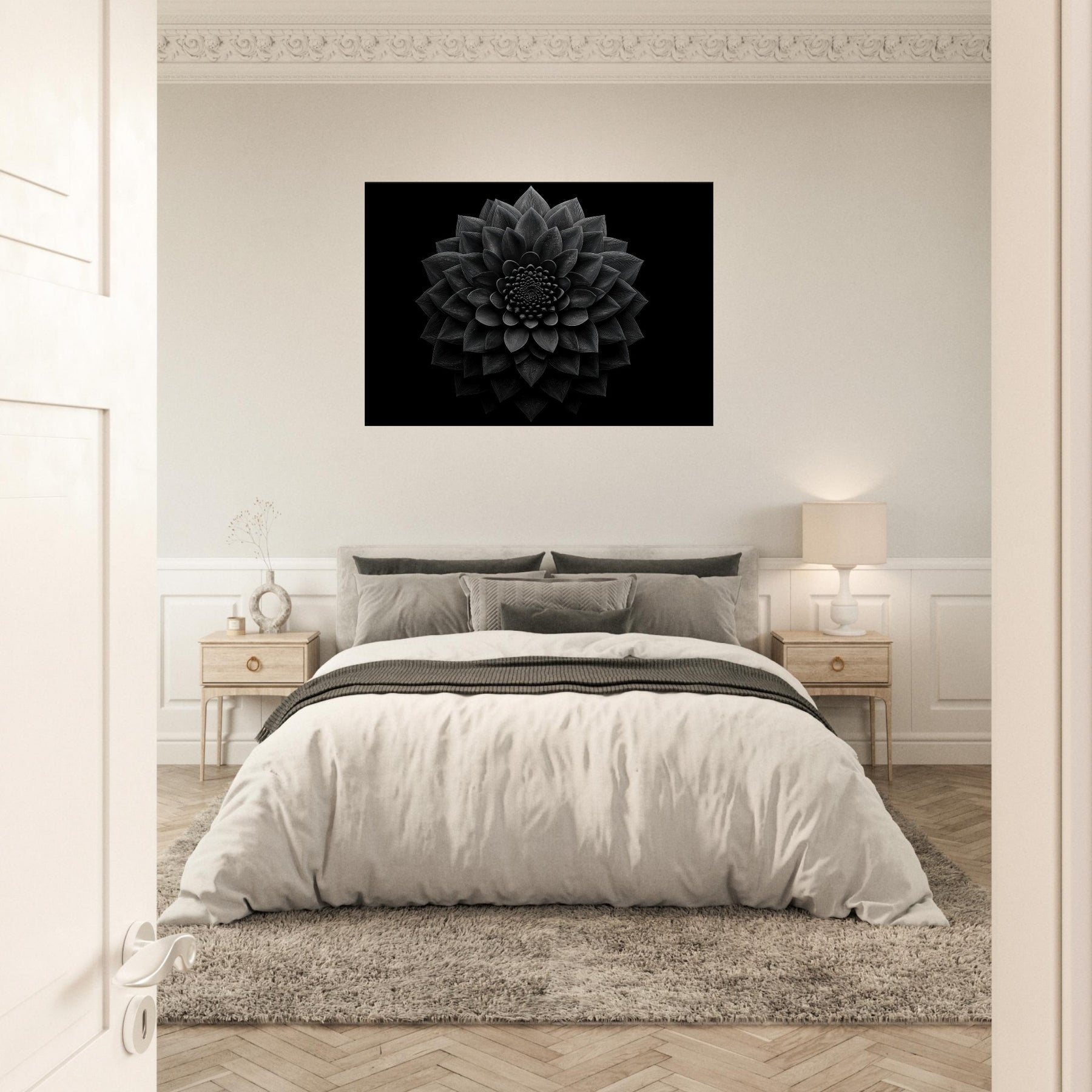 The stark contrast against a velvet wall creates depth and mood perfect for a living room, study, or entryway. Let this mystical bloom become a subtle focal point that anchors conversations and infuses your home with timeless, meditative elegance.