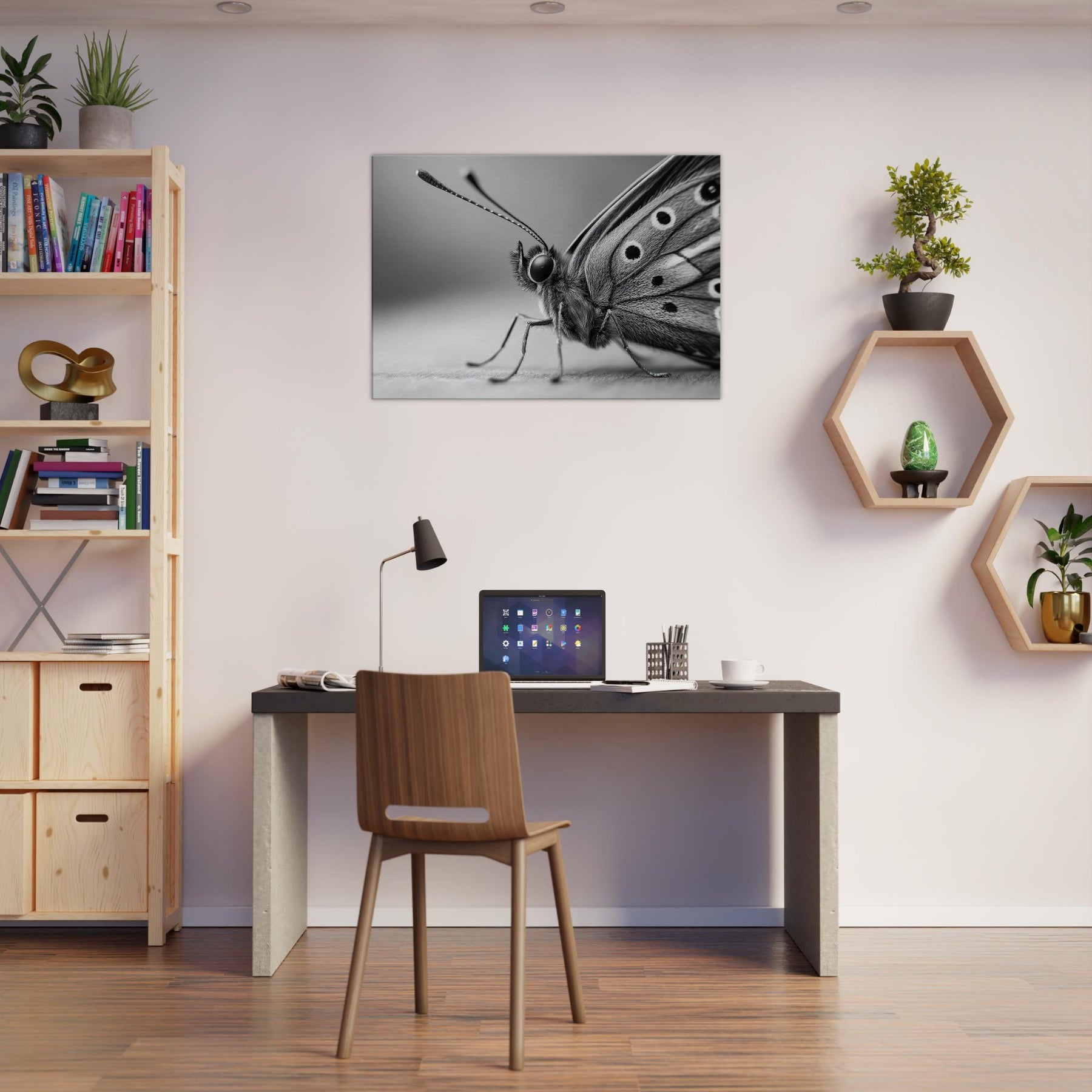 The minute lines and soft gradients invite a closer look, turning a wall into a moment of stillness and wonder. Perfect for a living room or bedroom, it pairs modern restraint with nature's architecture, humbling the room and inviting reflection.
