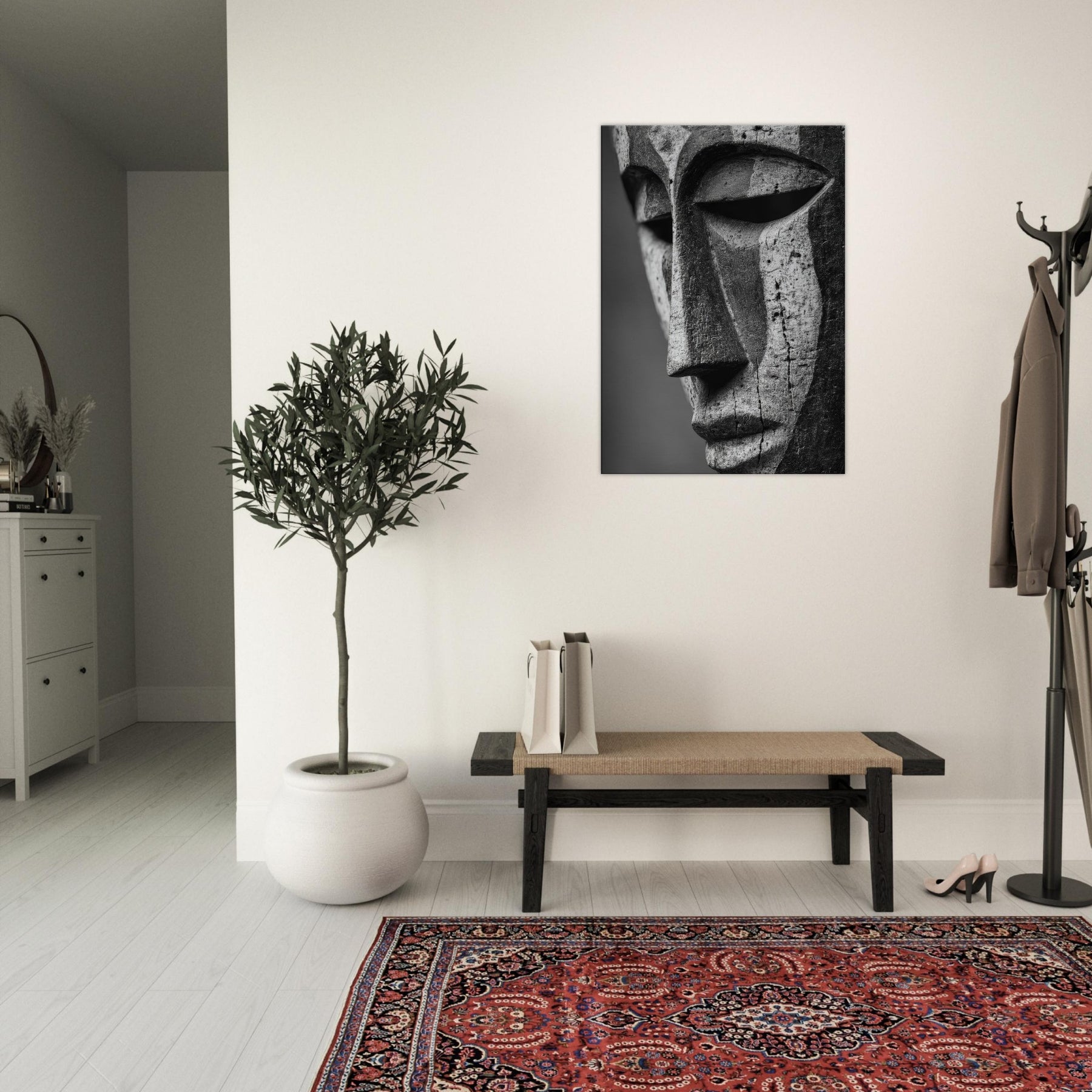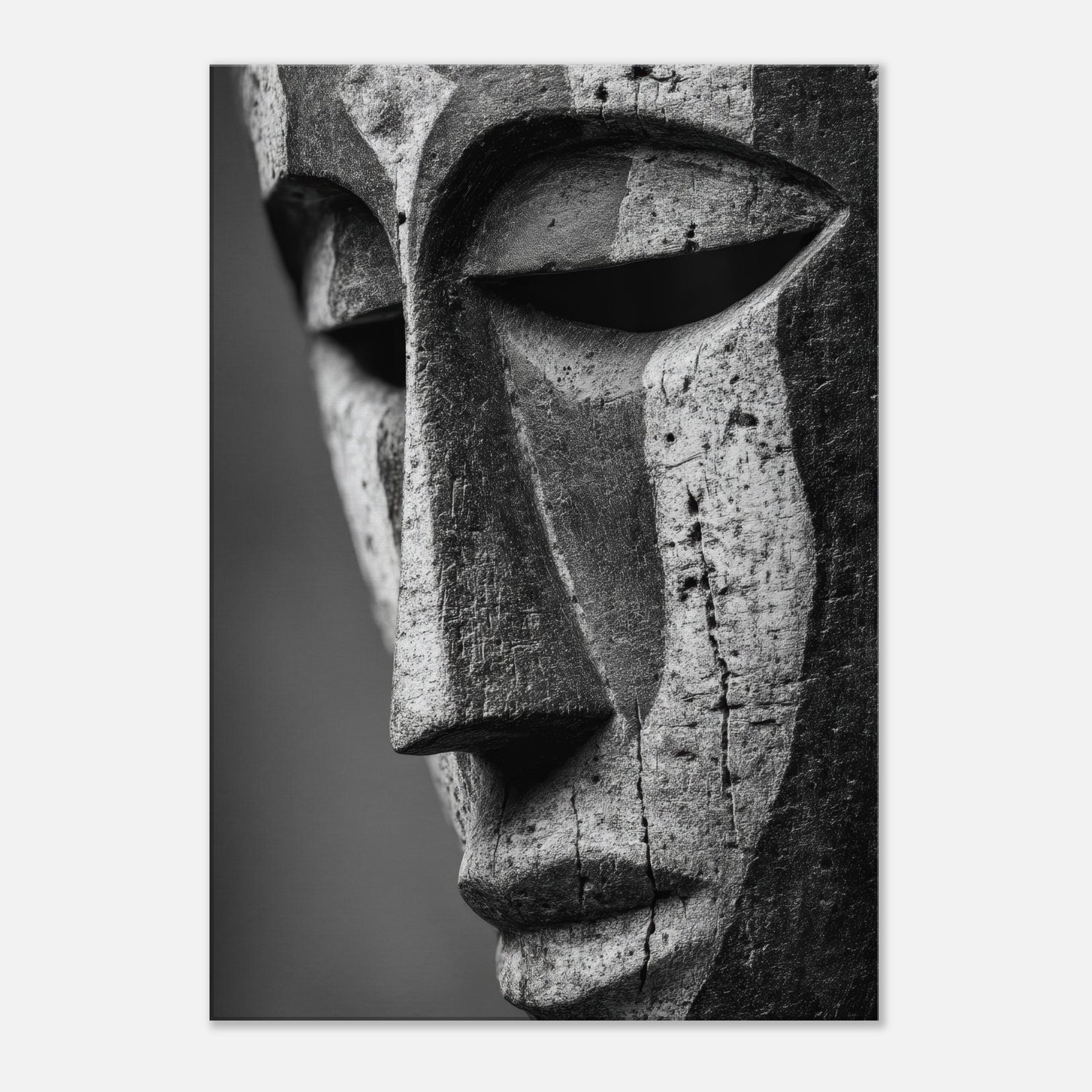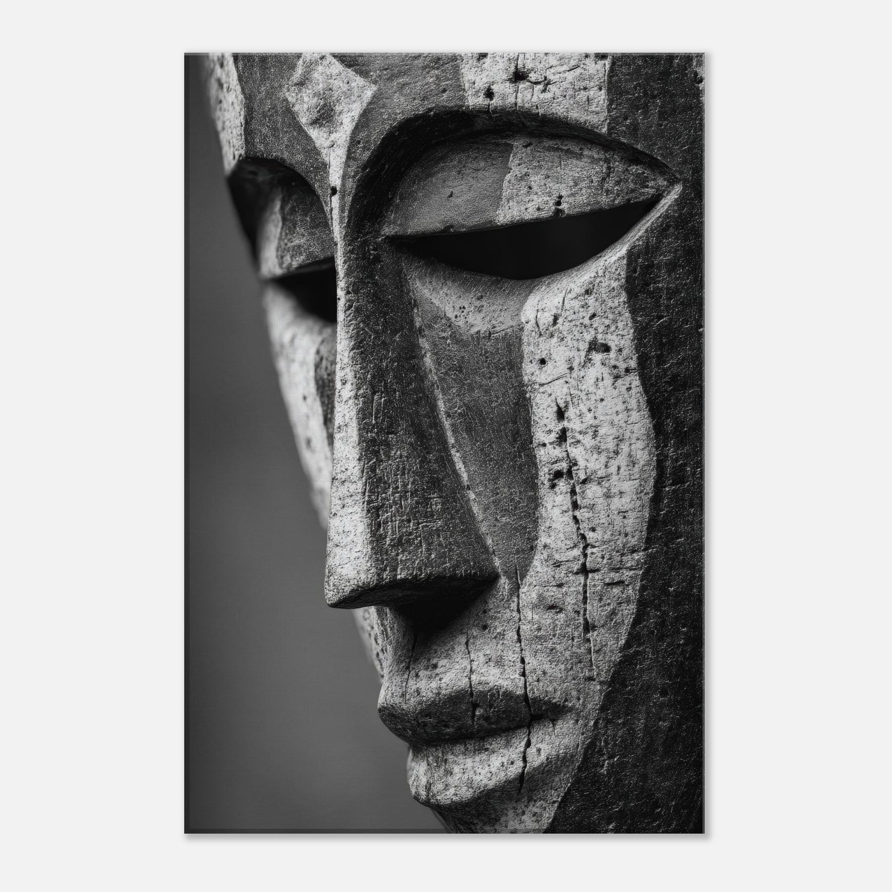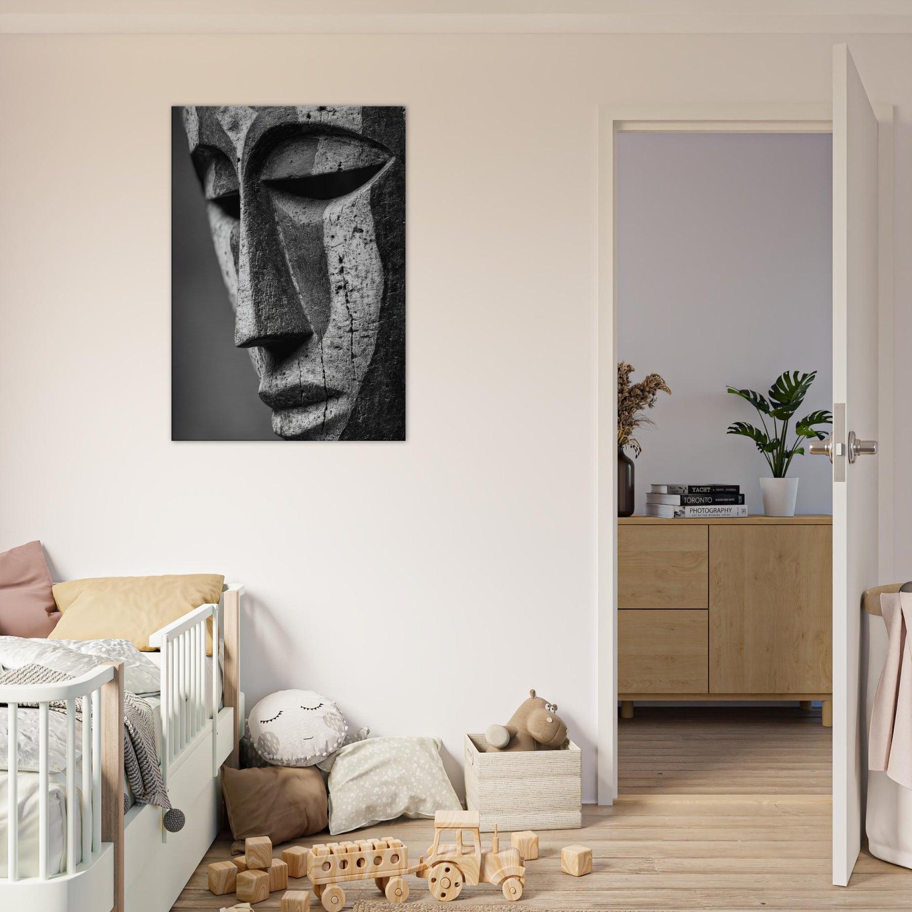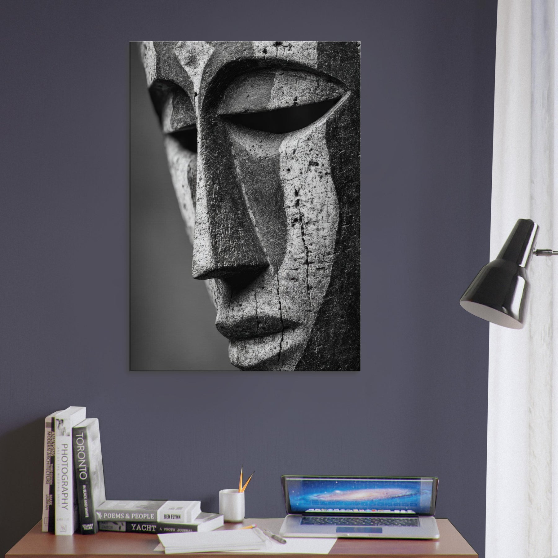 Carved in shadow and line, the Tribal Mask invites a quiet gaze that settles into the room’s rhythm. This black and white study distills expression to pared down form, turning light into texture and memory into atmosphere.