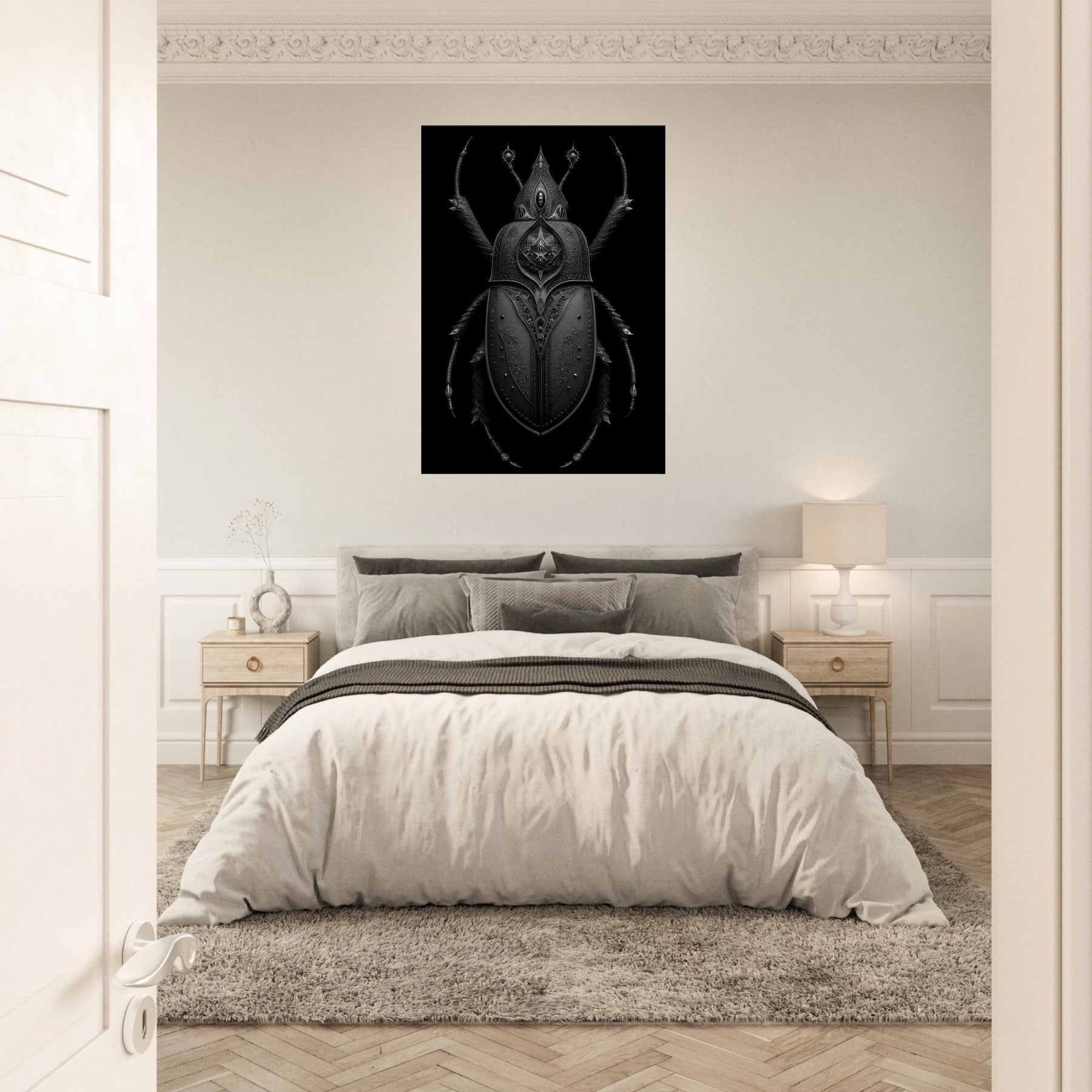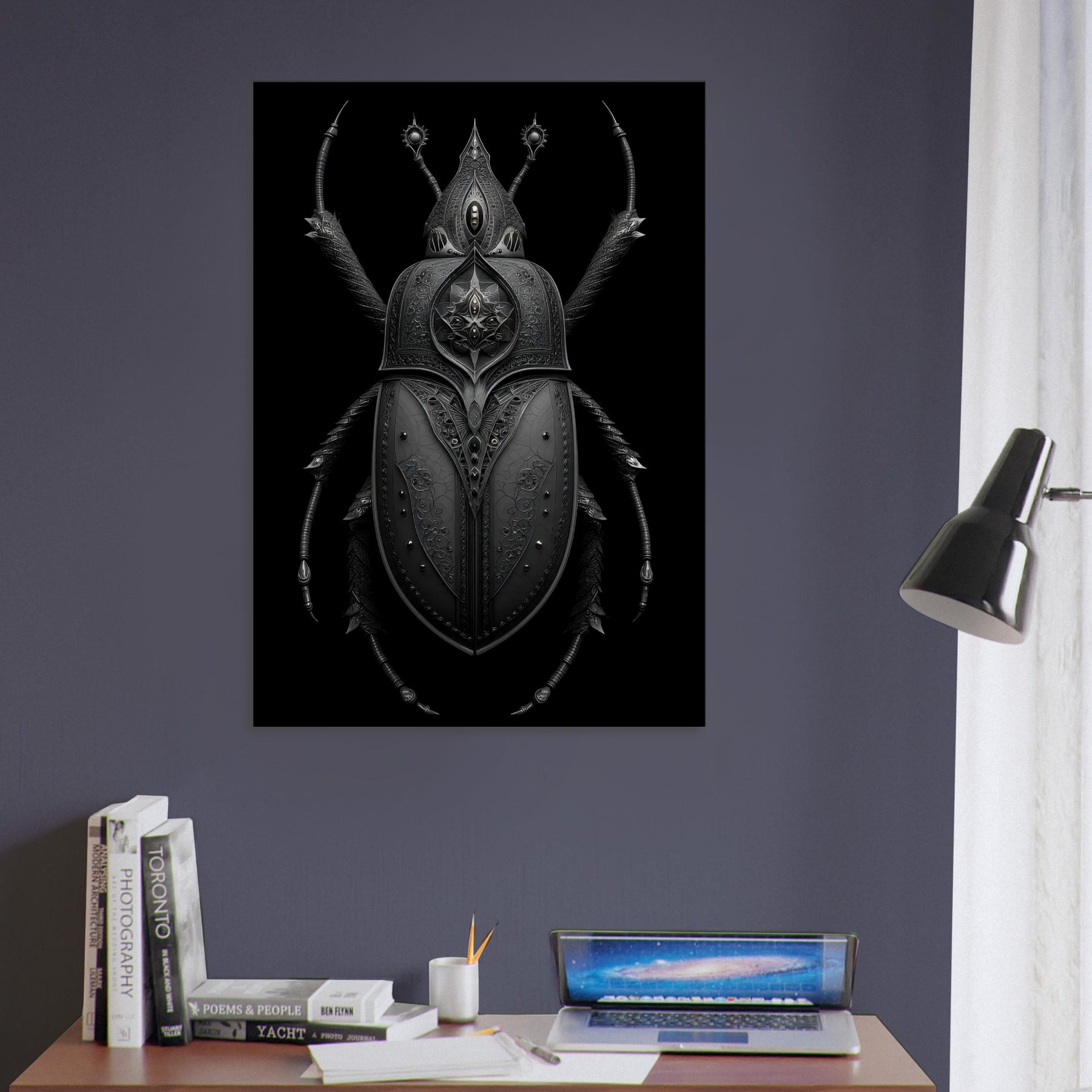 In this commanding composition, the Scarab is etched with regal filigree and bejeweled symmetry, like a relic from a nocturnal temple.
