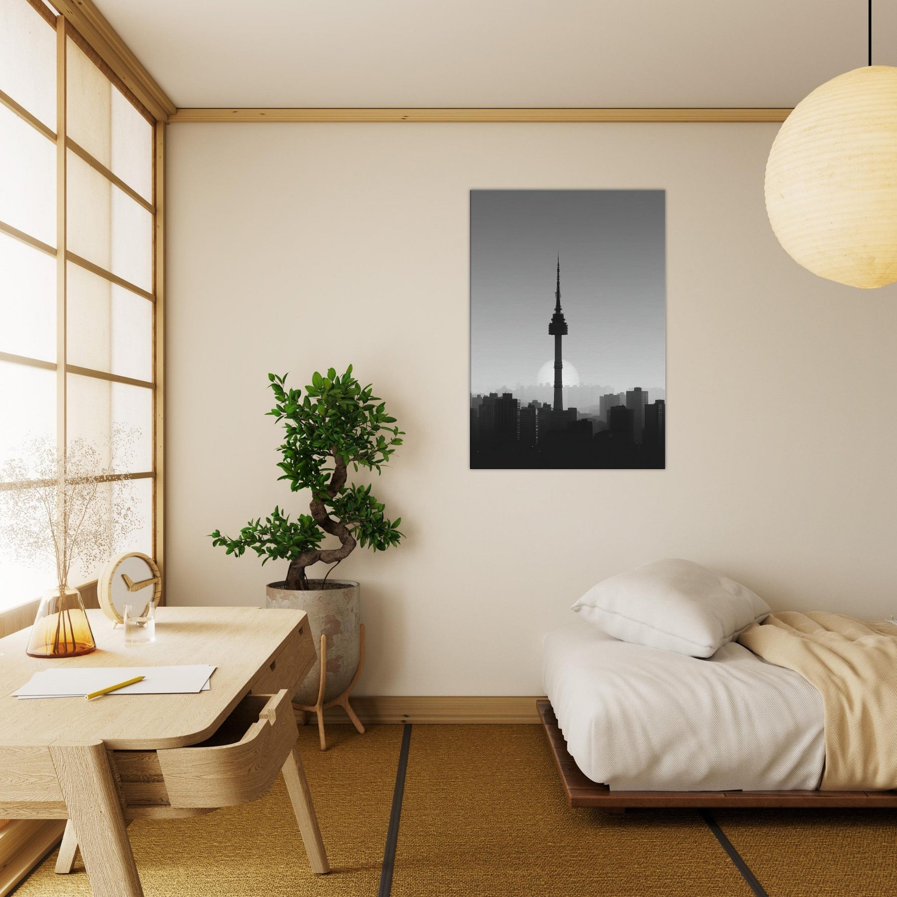 The contrast invites reflection, making a room feel grounded yet expansive. Hang it to anchor a living space, where the absence of color sharpens memory and mood, perfect for a serene loft, an urban study, or a gallery wall that longs for quiet drama.