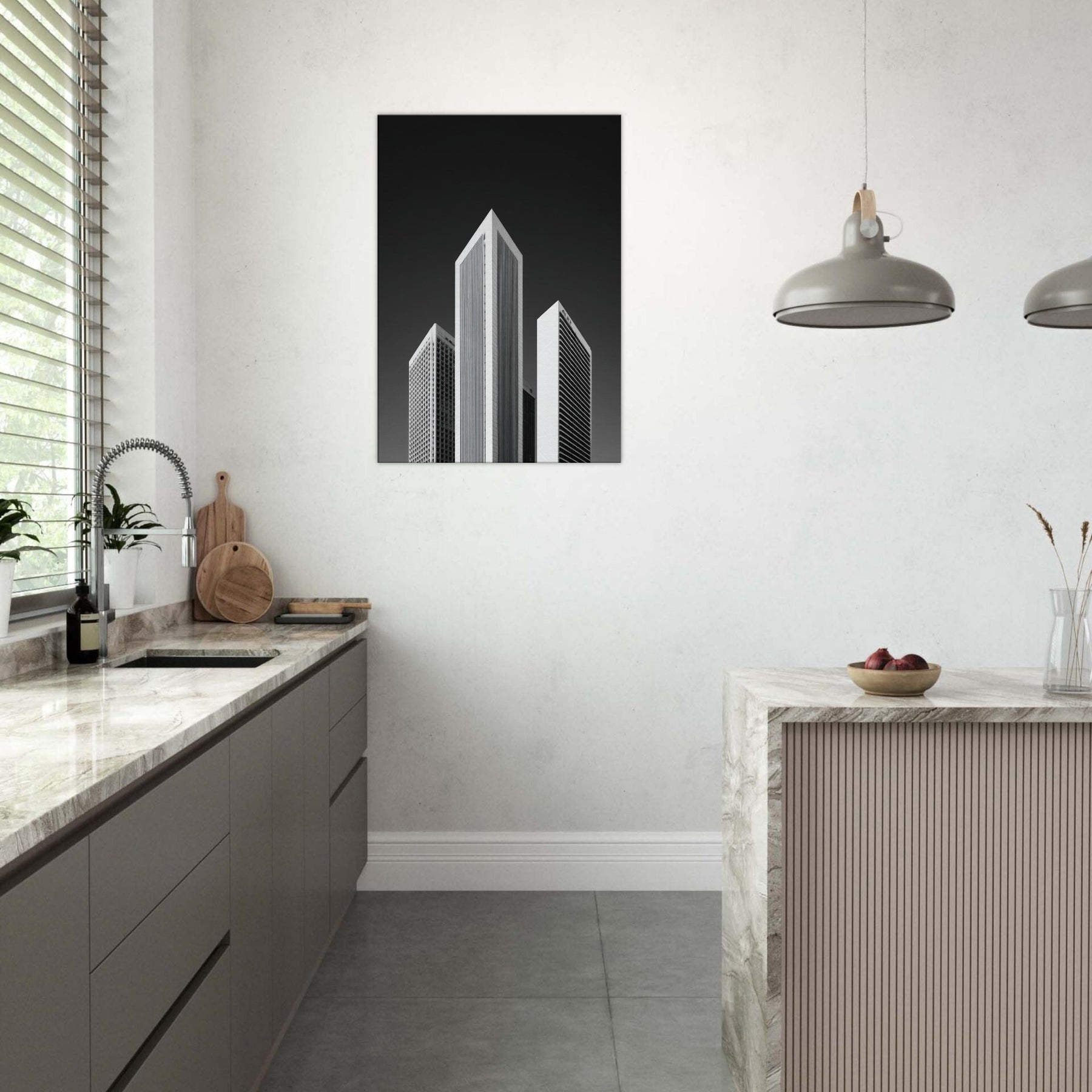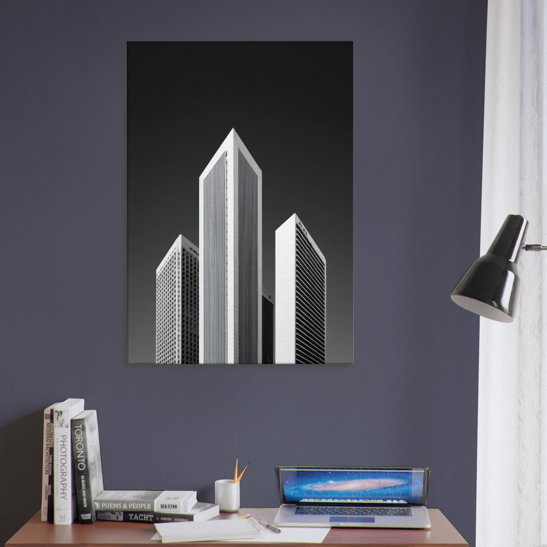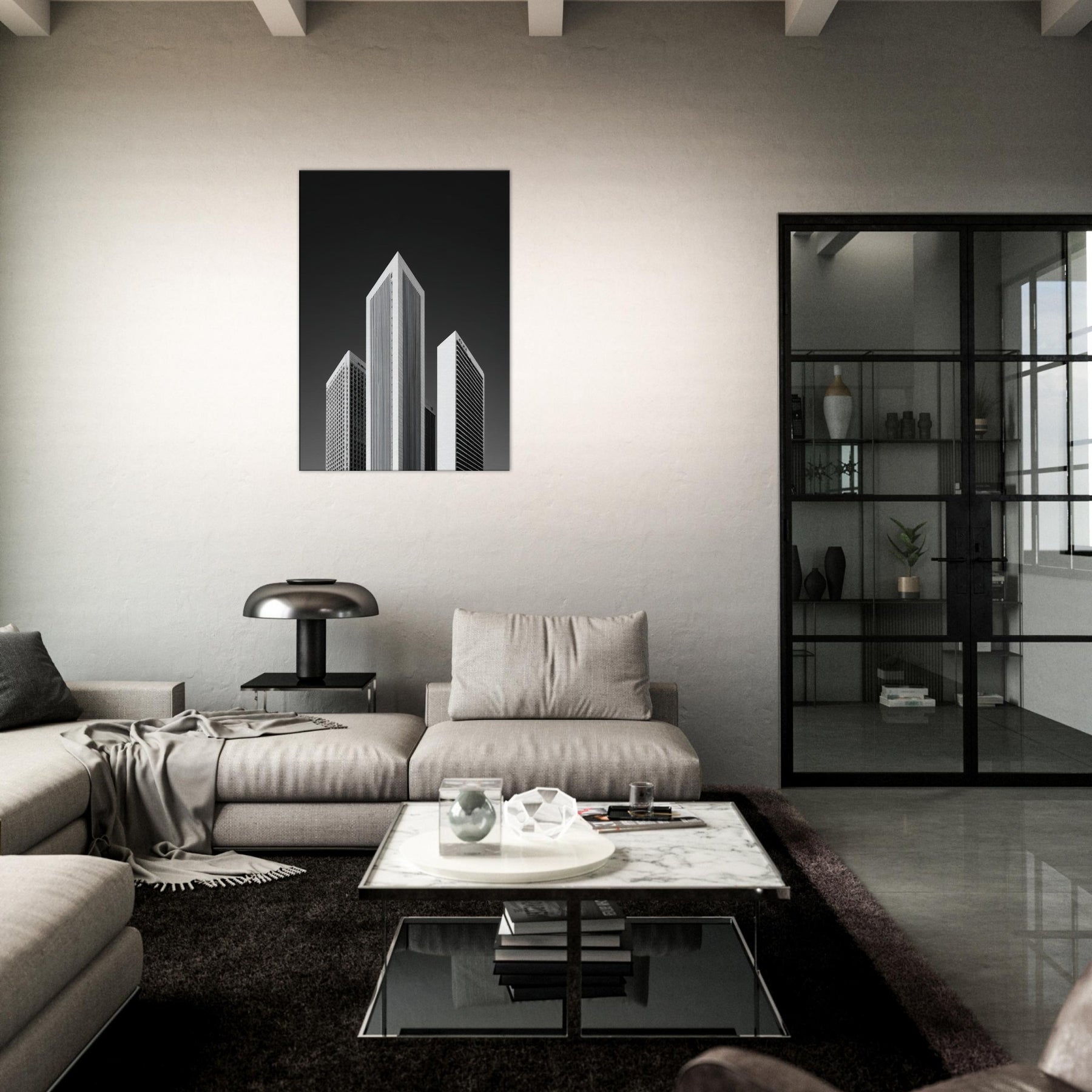 Hang this in a living room or office to invite focus, structure, and a cinematic, nocturnal atmosphere. The piece transforms walls into a horizon of rhythm and memory, offering urban clarity without color and a timeless, sophisticated focal point.