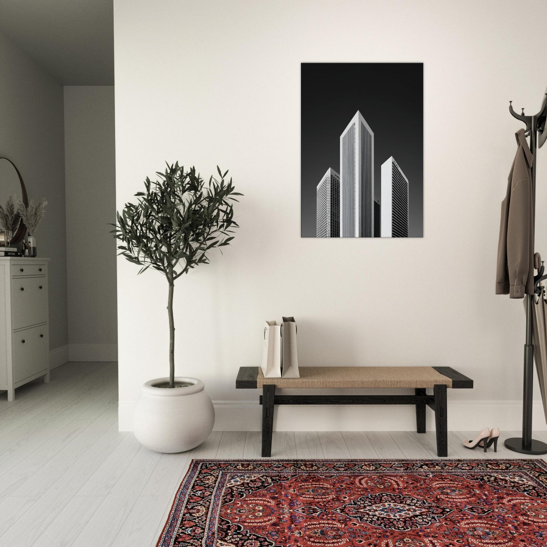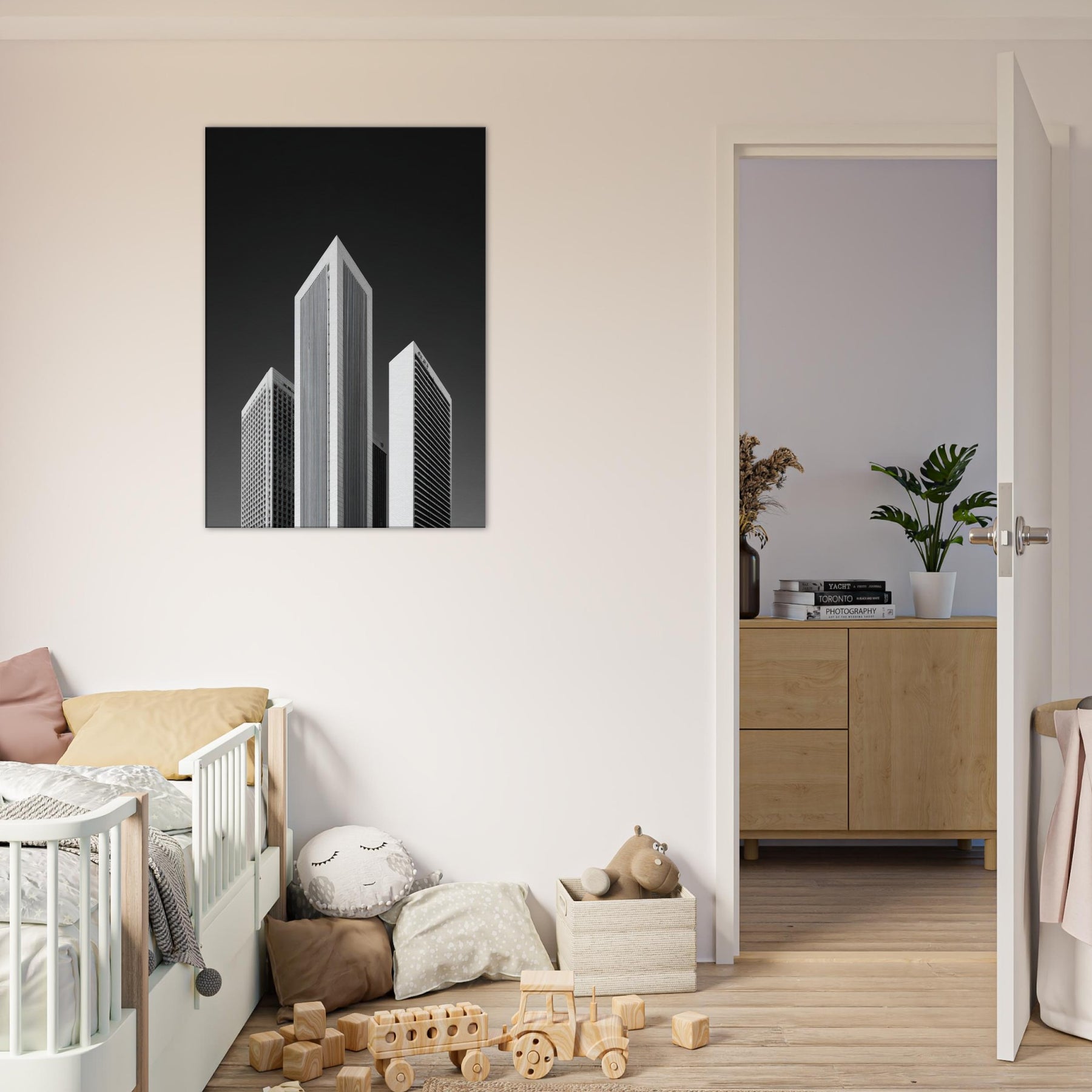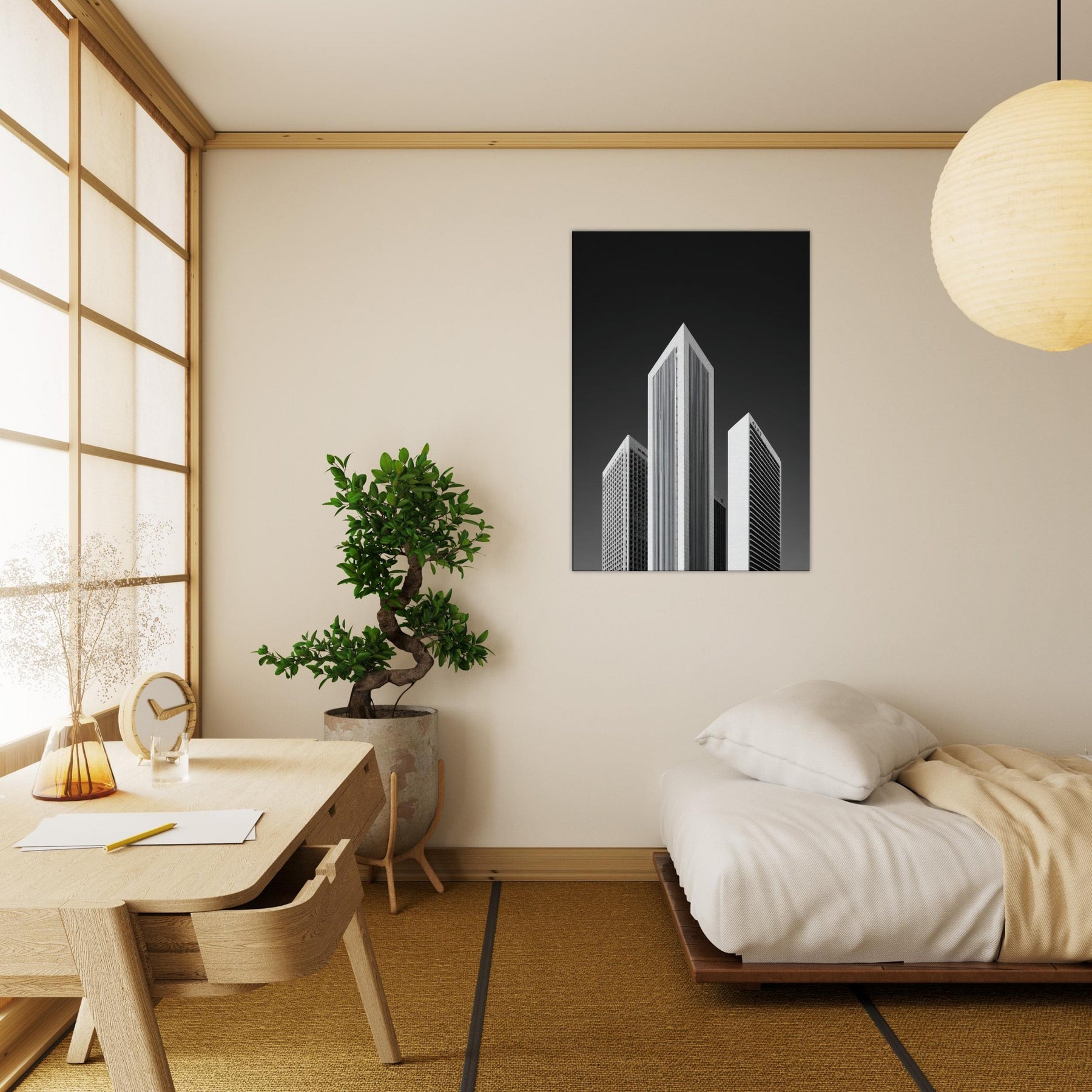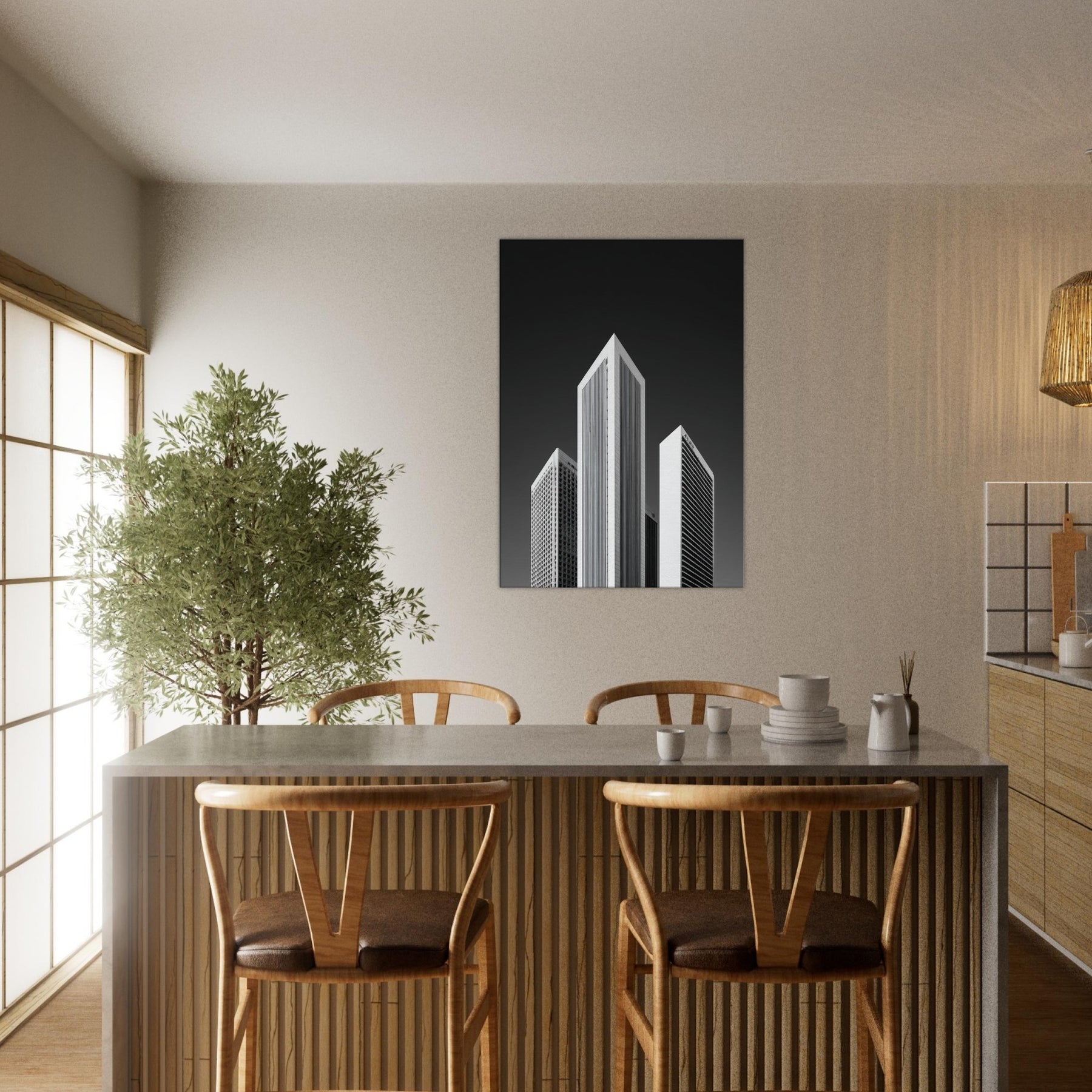 Hang this in a living room or office to invite focus, structure, and a cinematic, nocturnal atmosphere. The piece transforms walls into a horizon of rhythm and memory, offering urban clarity without color and a timeless, sophisticated focal point.