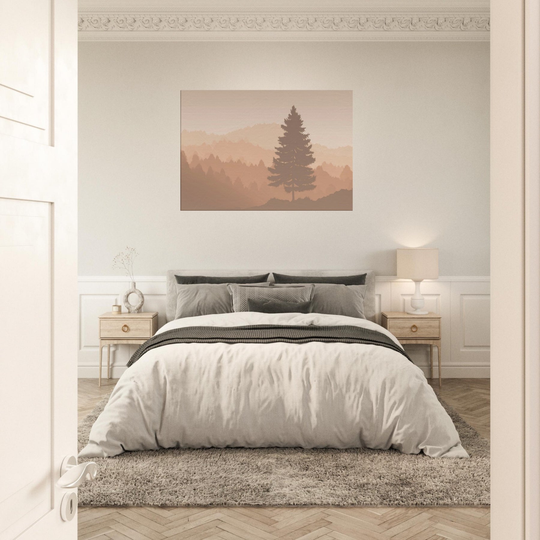 Foggy Forest settles softly into your space, inviting stillness without shouting. This minimalist scene refracts early light through a quiet chorus of pines, turning a into a calm meditation. The atmosphere feels expansive yet intimate, a reminder that nature's quiet can fill a room with breathing space. Perfect above a sofa or in a bedroom, it cradles conversations and slows the day. Here, the Foggy Forest breathes in warm, muted tones and serene silhouettes.