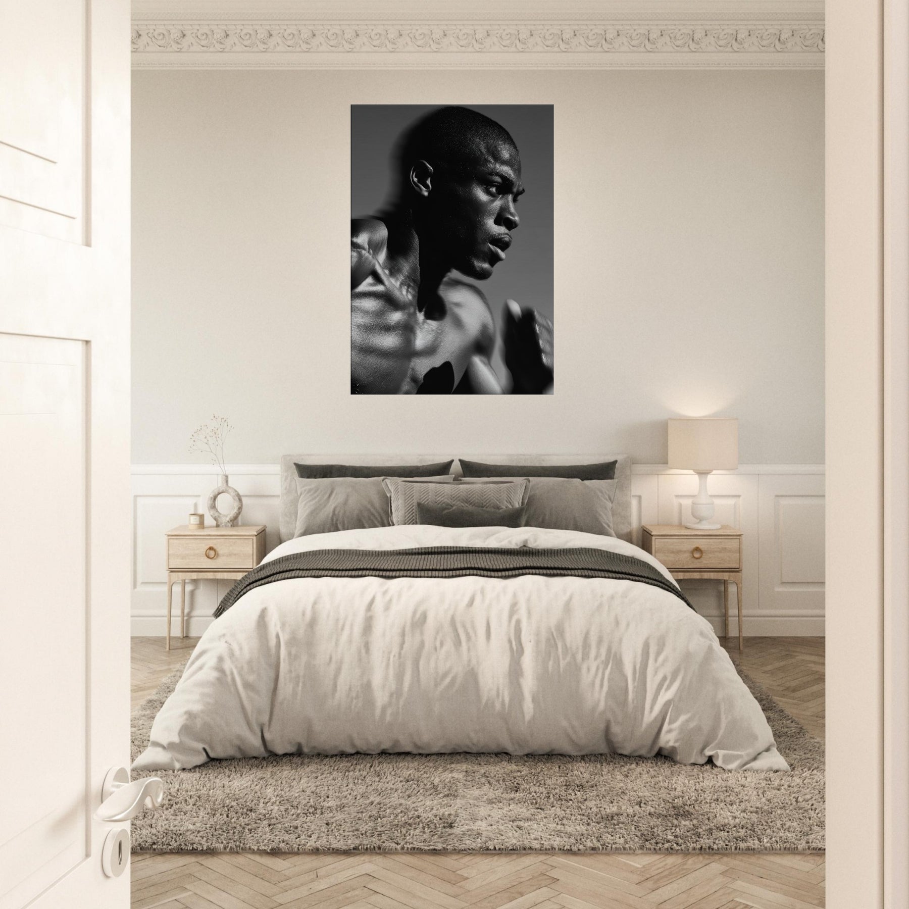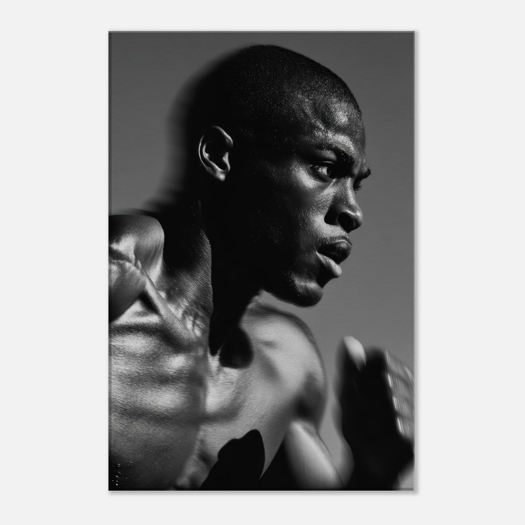 This black and white study captures raw momentum and resolve in a single breath. Light traces the contours of asserting muscle and pressed motion, inviting the eye to follow, breathe, and feel the heartbeat of a fleeting stride.
