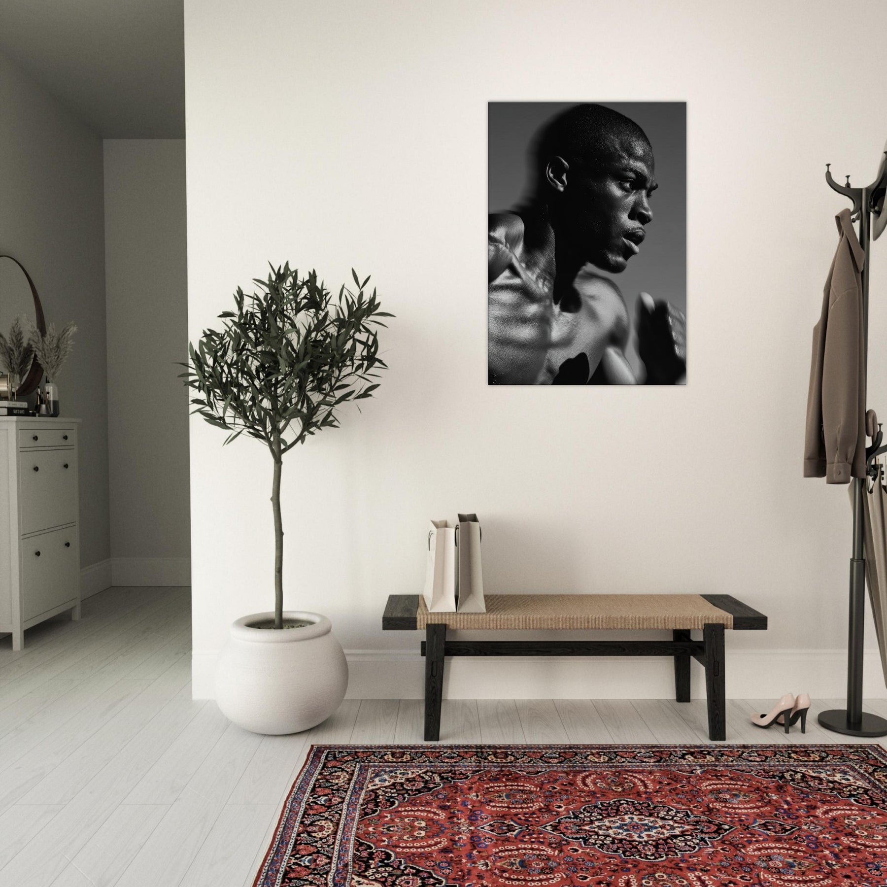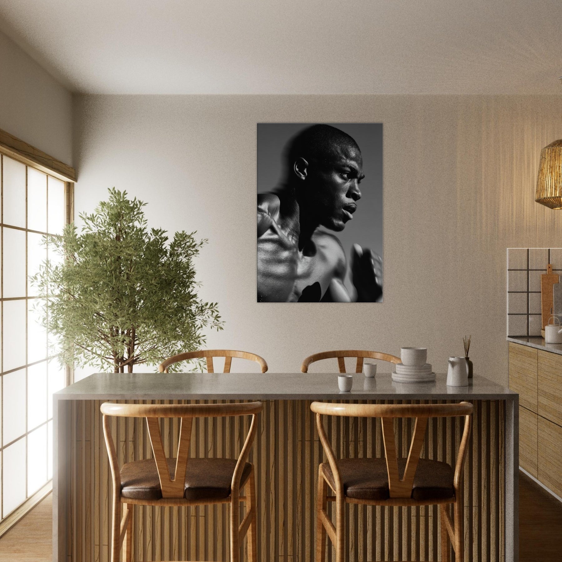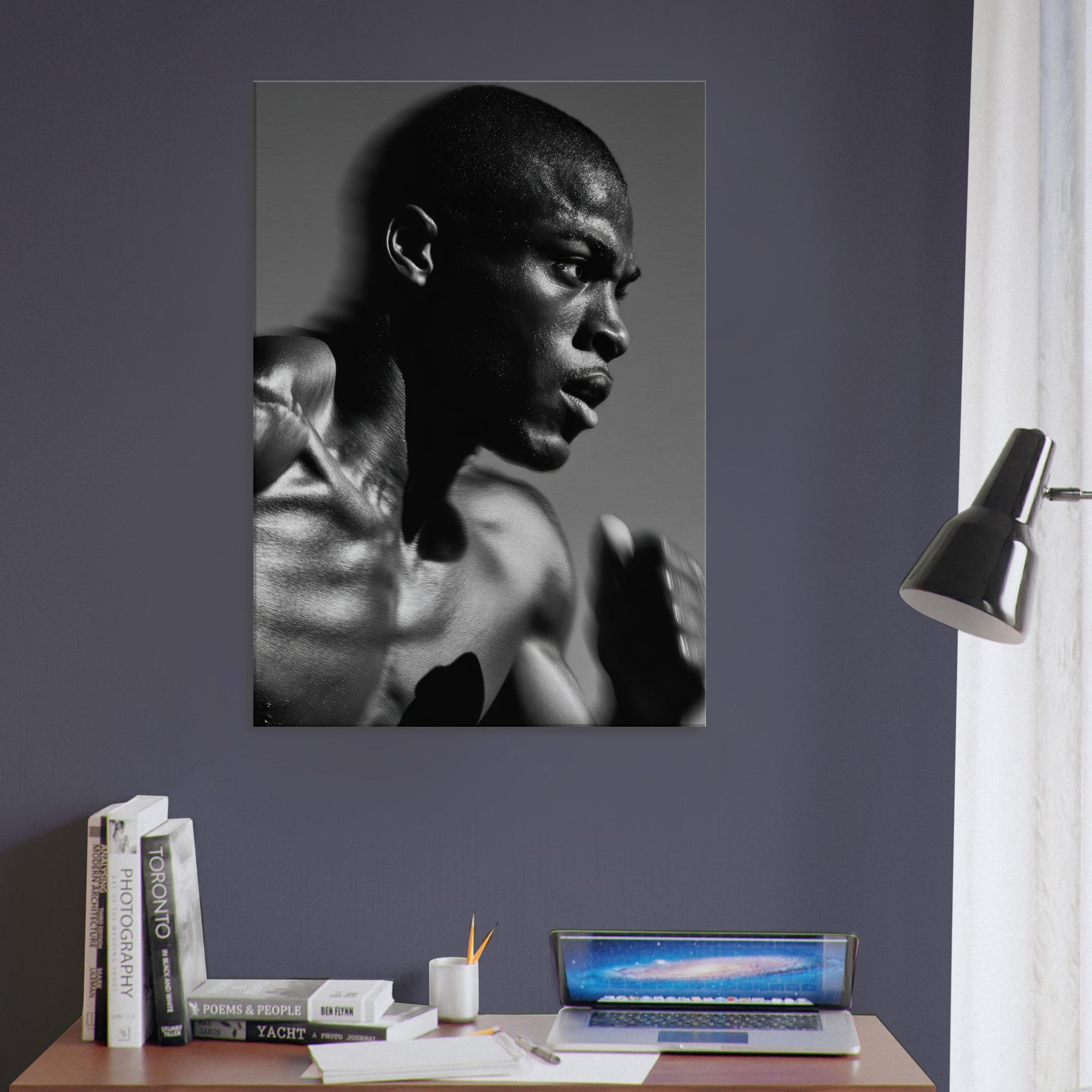 Perfect for a modern living space, it brings a calm yet electric energy to walls, an artwork that complements sleek furniture, moody palettes, and contemplative corners, transforming everyday rooms into a gallery of movement and presence.