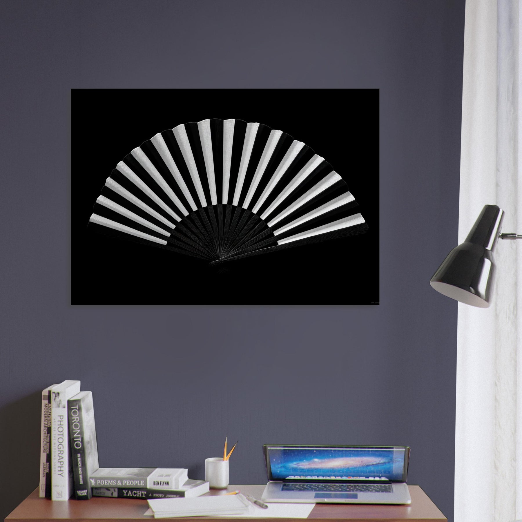 An elegant study in contrast, this hand fan unfolds a graceful arc of black and white lines against velvet night. The hand fan becomes a quiet sculpture that catches light, casting a meditative rhythm across a room. In a modern living space it anchors a monochrome gallery wall, inviting slow attention and contemplation. Its tactile rhythm and graphic precision spark a mood of refined restraint cool, dramatic, and timeless. Let the hand fan translate memory into atmosphere, turning a corner into a serene retreat.