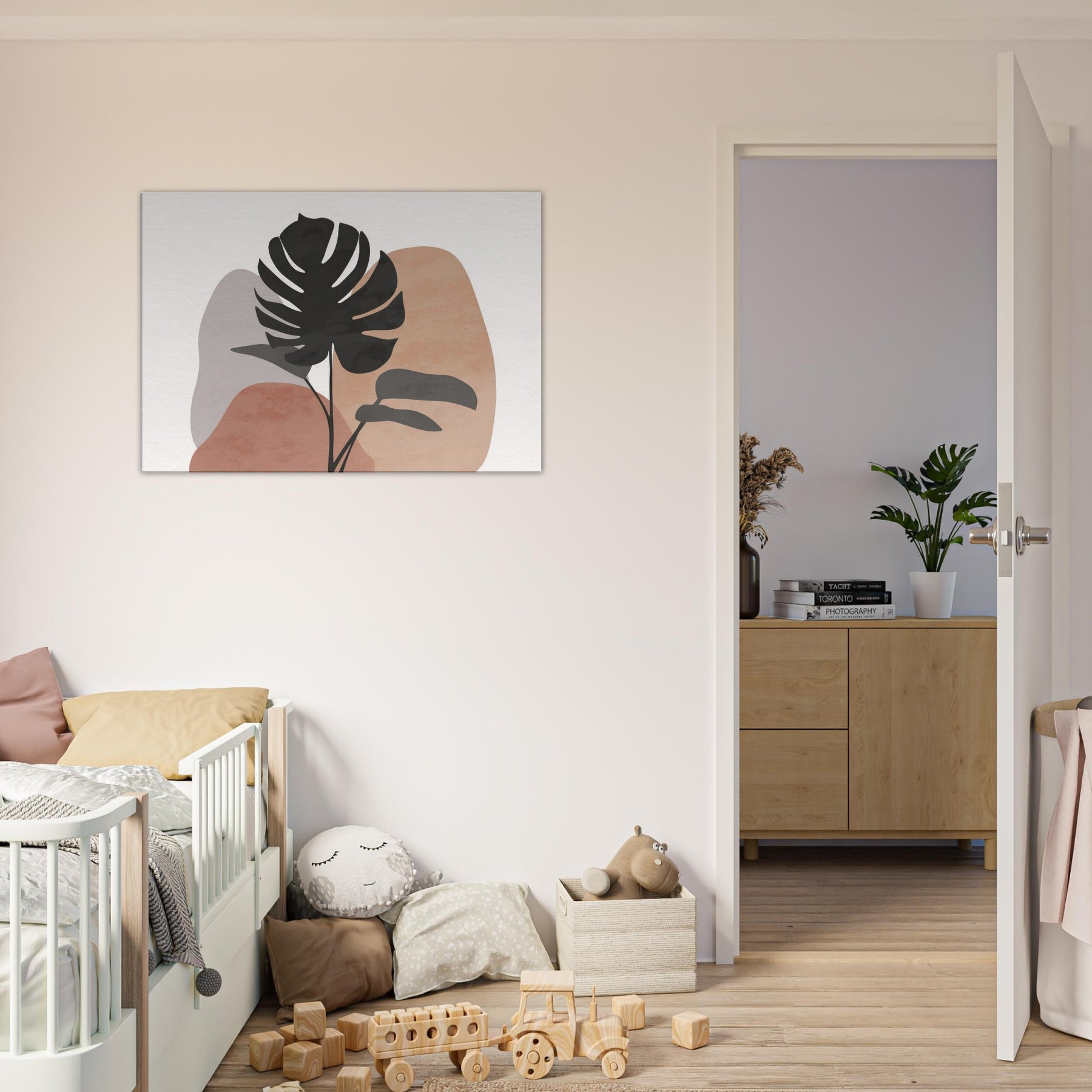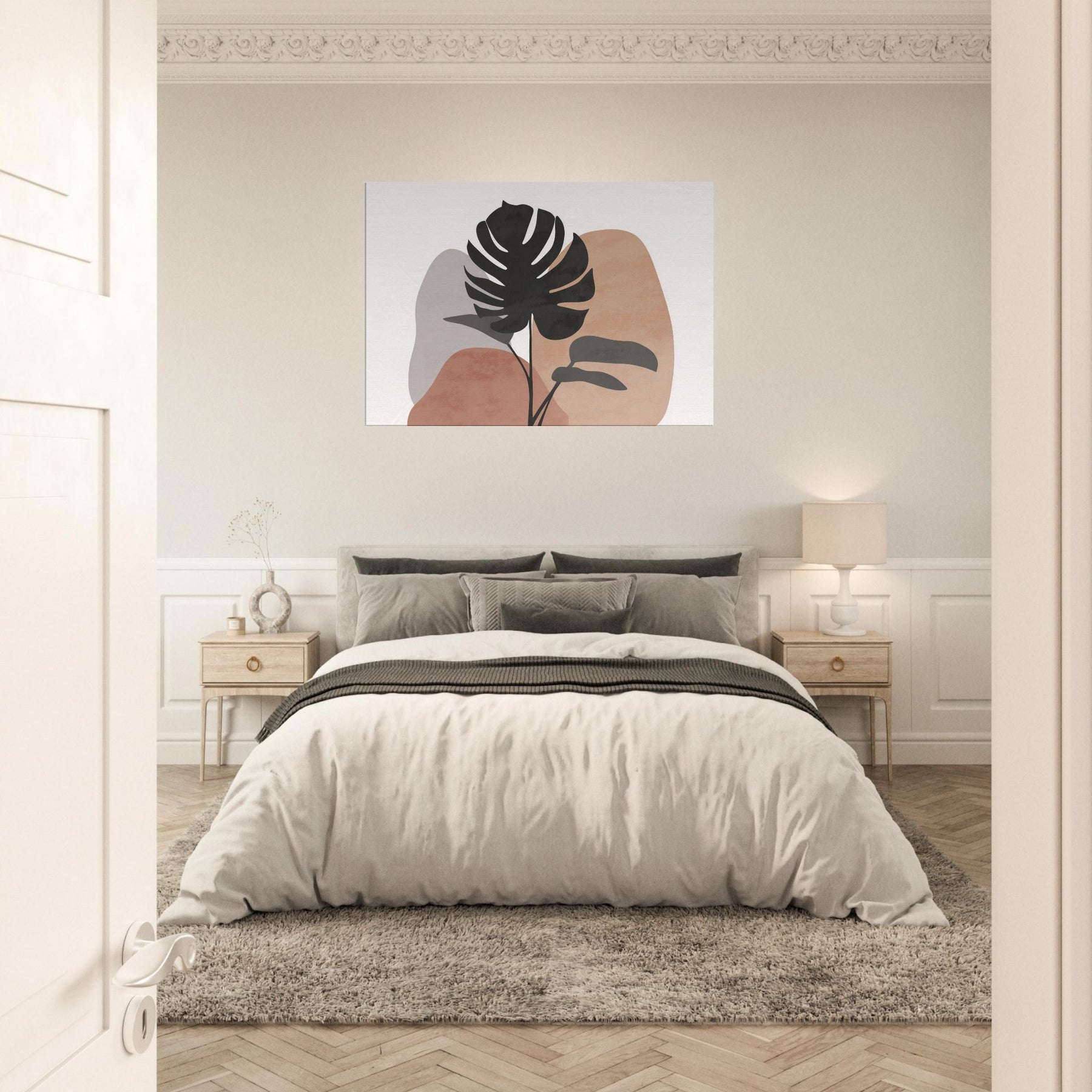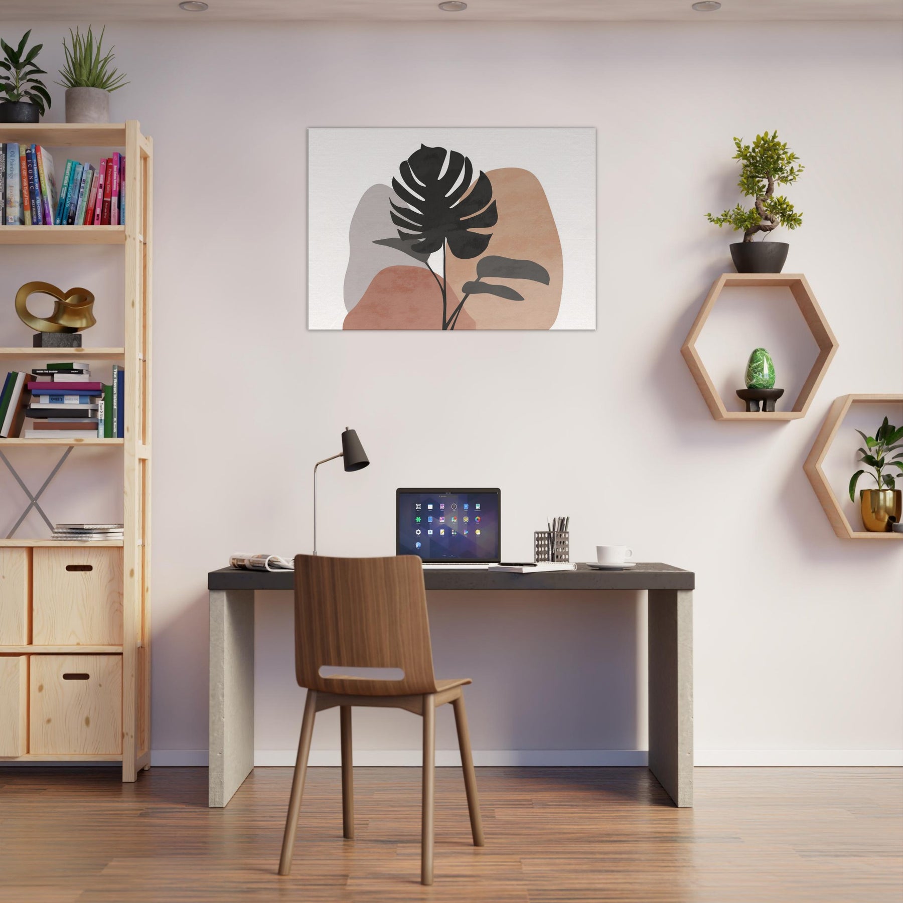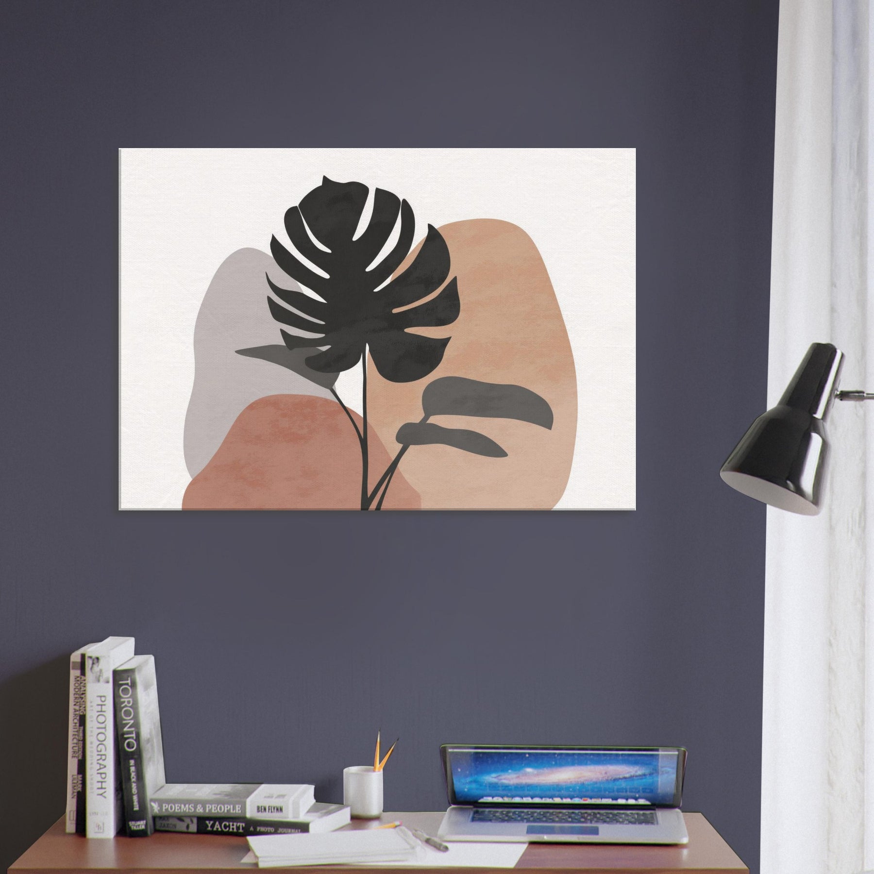 Calm, sunlit air meets quiet lines in this minimalist Monstera study. A single tropical silhouette rises against soft, earthy hues, inviting a breath of nature into your living space. The Monstera's sculpted form feels both bold and serene, balancing modern decor with organic warmth. Hang it above a sofa or console to channel effortless tranquility, as if a forest breeze paused in your room.