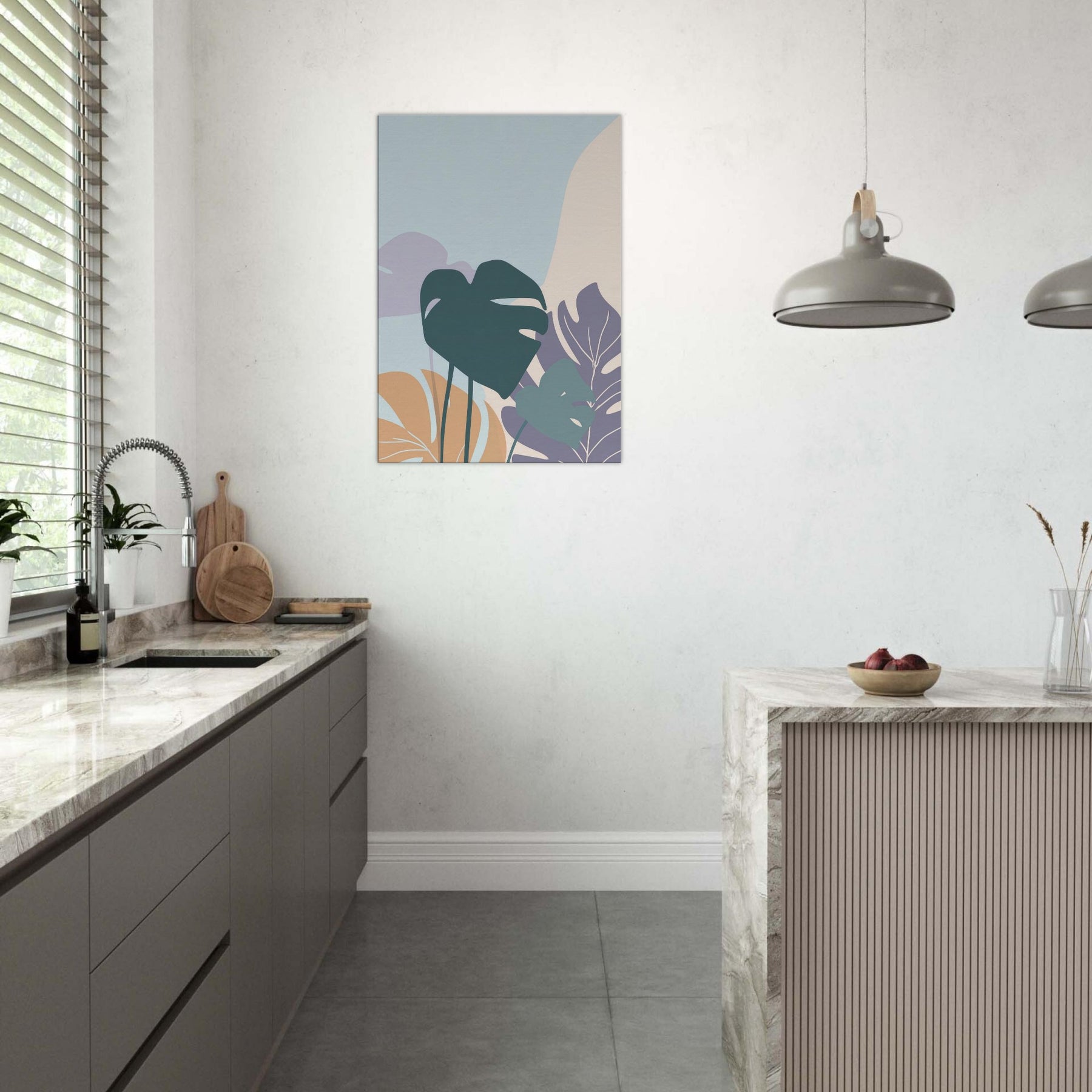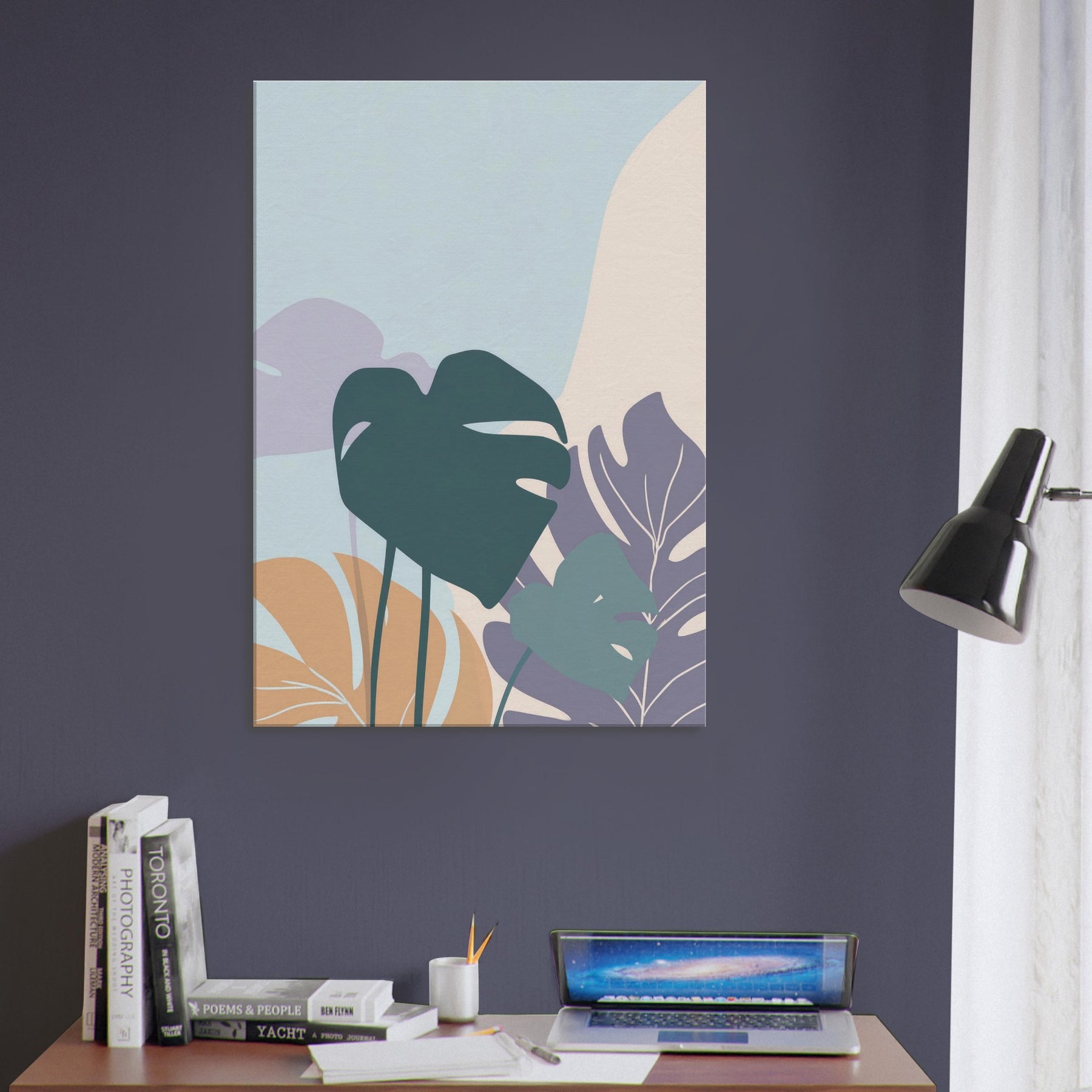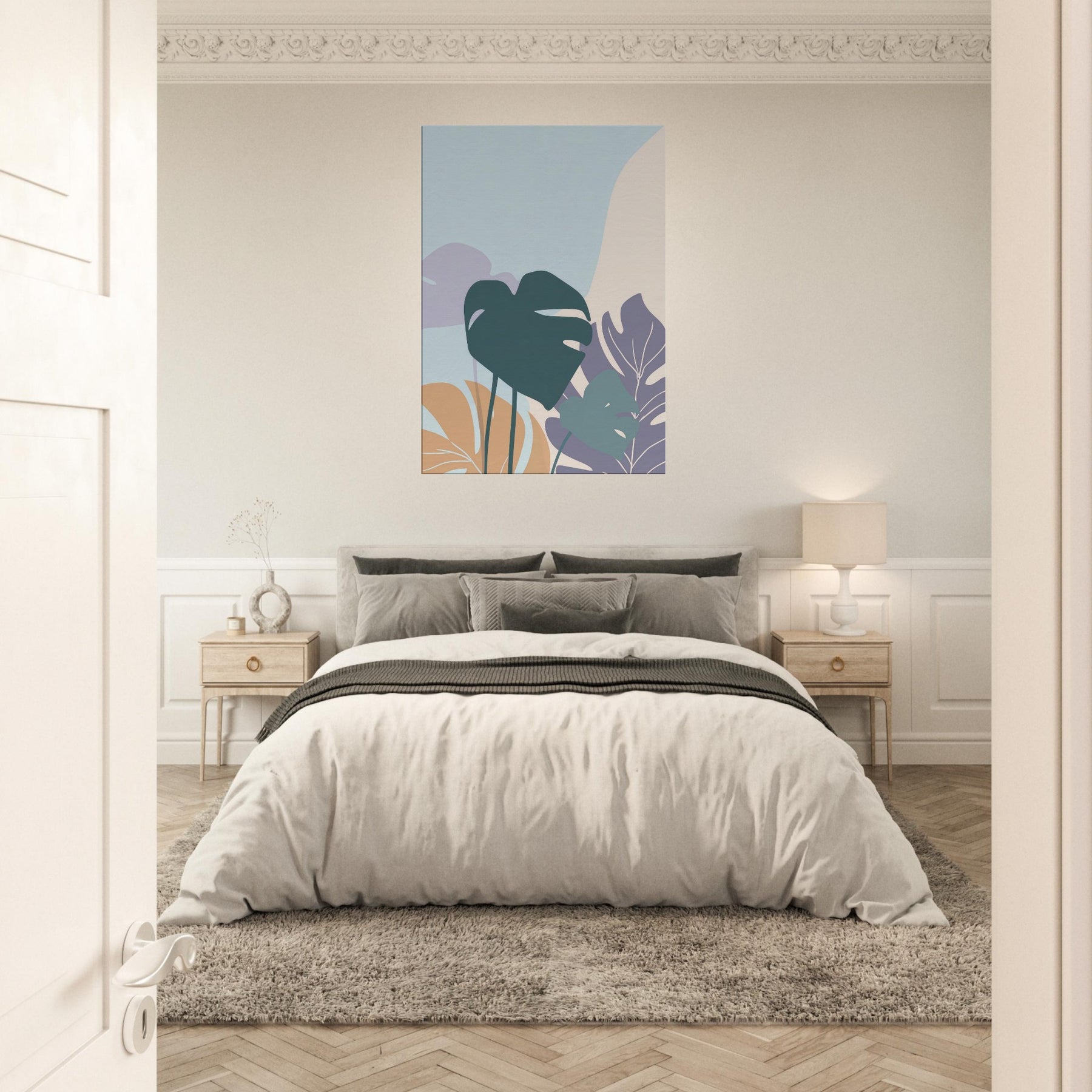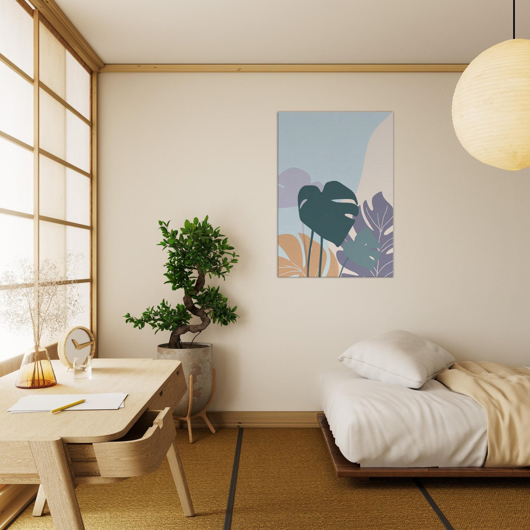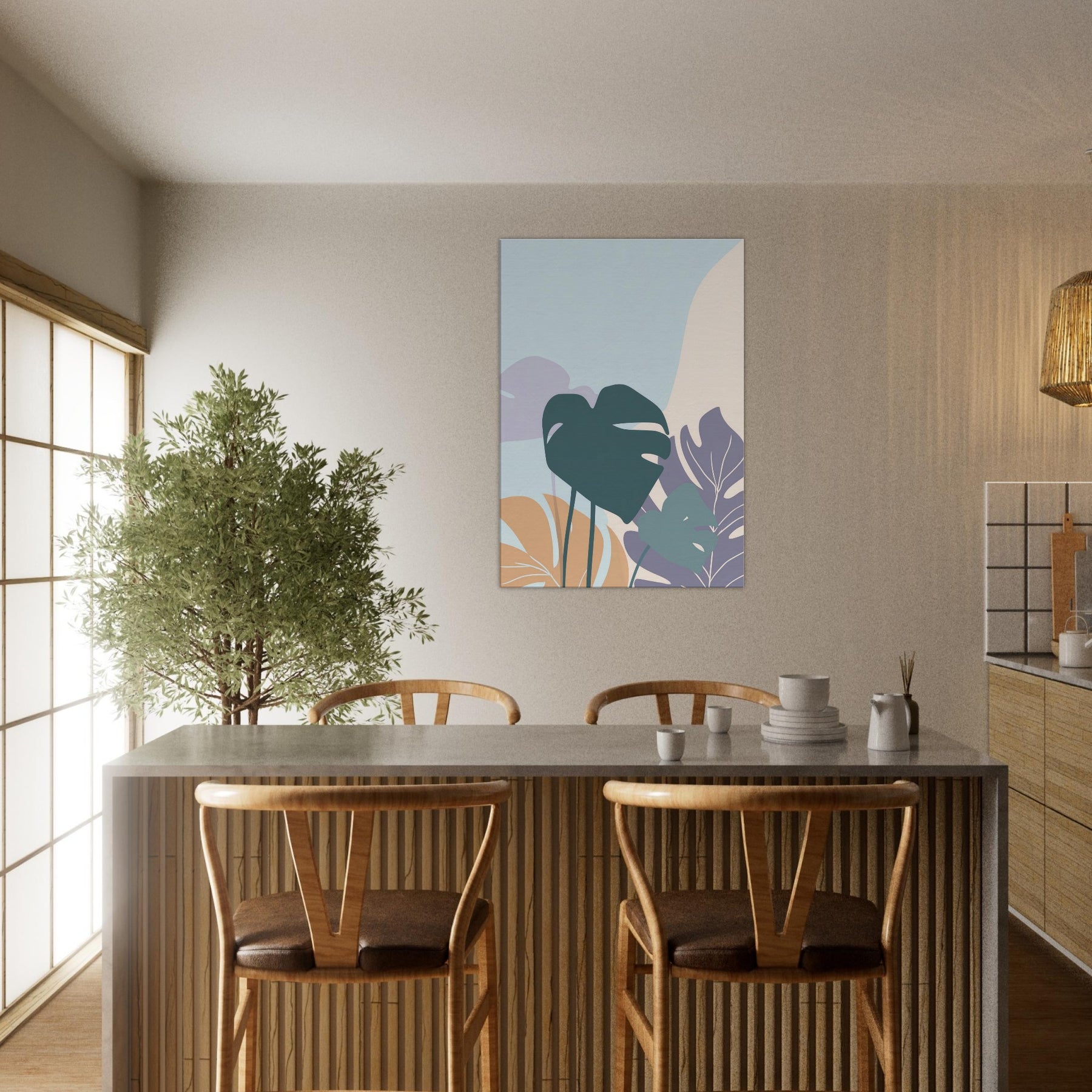 Like a breath of quiet, this minimalist Monstera study unfurls across the wall in gentle, sculptural strokes. Soft, layered shapes rise against a pale hush of color, inviting a slow gaze and a moment of calm. The Monstera leaf forms float with elegant restraint, turning simple light into mood perfect for a serene living room, bedroom, or workspace. It pairs with warm woods and neutral textiles, elevating space with nature’s rhythm and a whisper of green that never overwhelms.