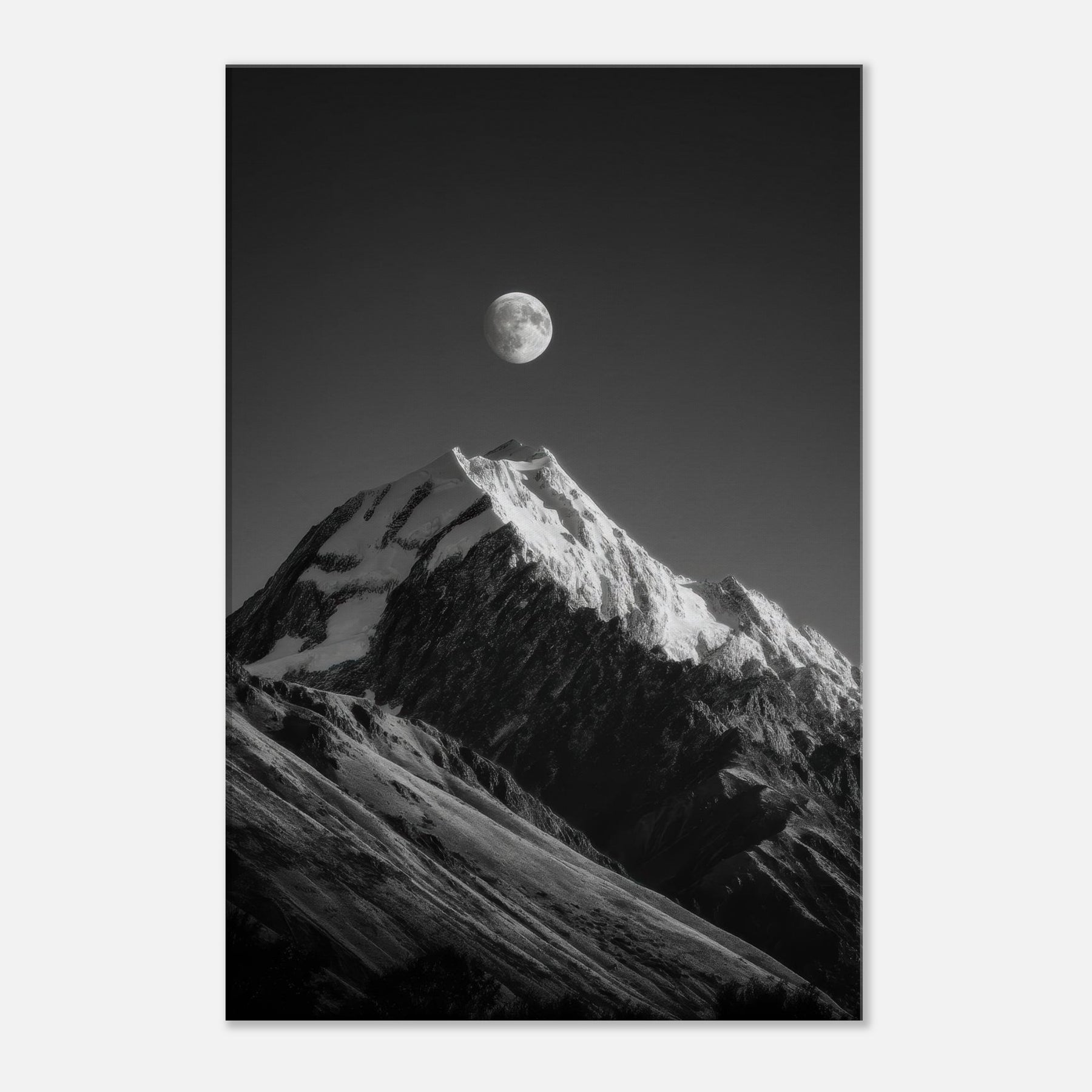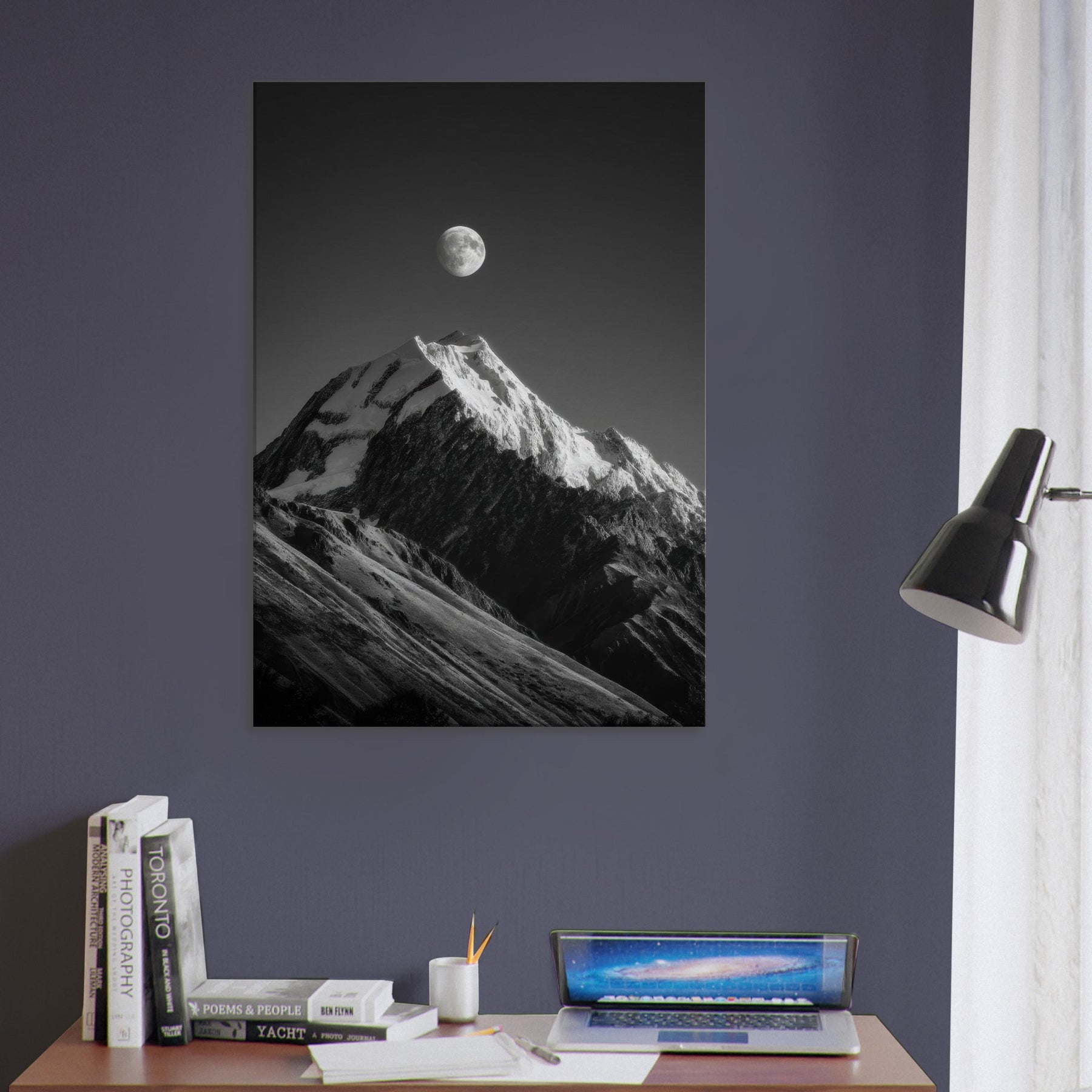 Moon Over Mountains (Minimal) invites quiet reverie, where a solitary peak is defined by light and shadow against an expansive sky. The piece exudes a cool, contemplative energy that softens a room with subtle drama. In black and white, its moonlit balance enhances living spaces with a serene, mystical mood. Perfect for a lounge or study that craves clarity, focus, and a touch of restrained wonder.