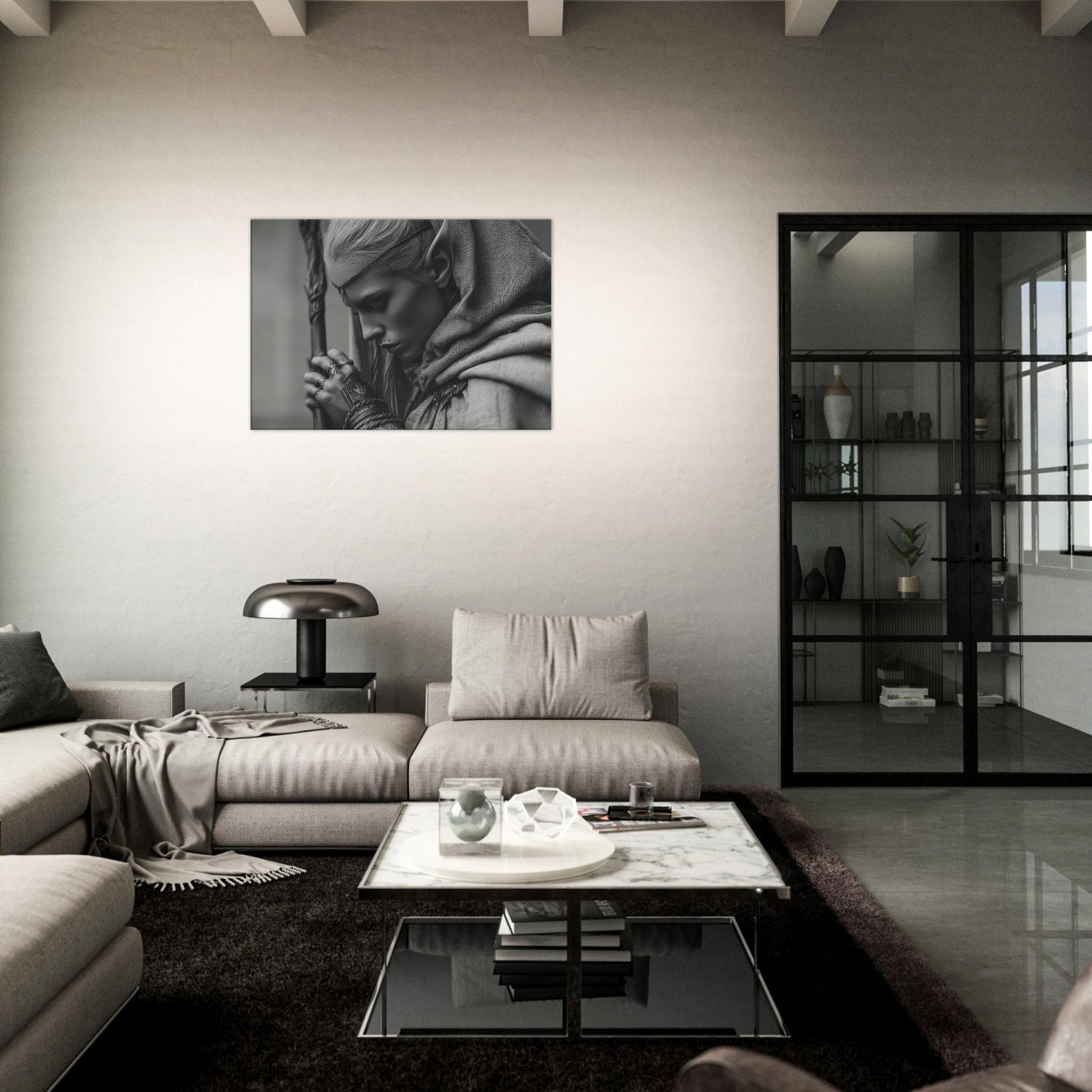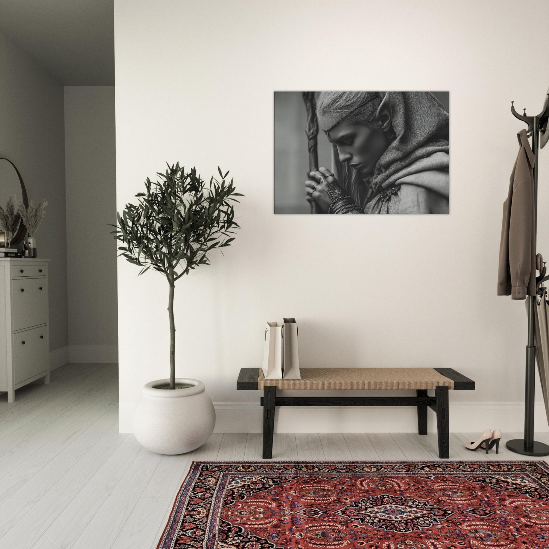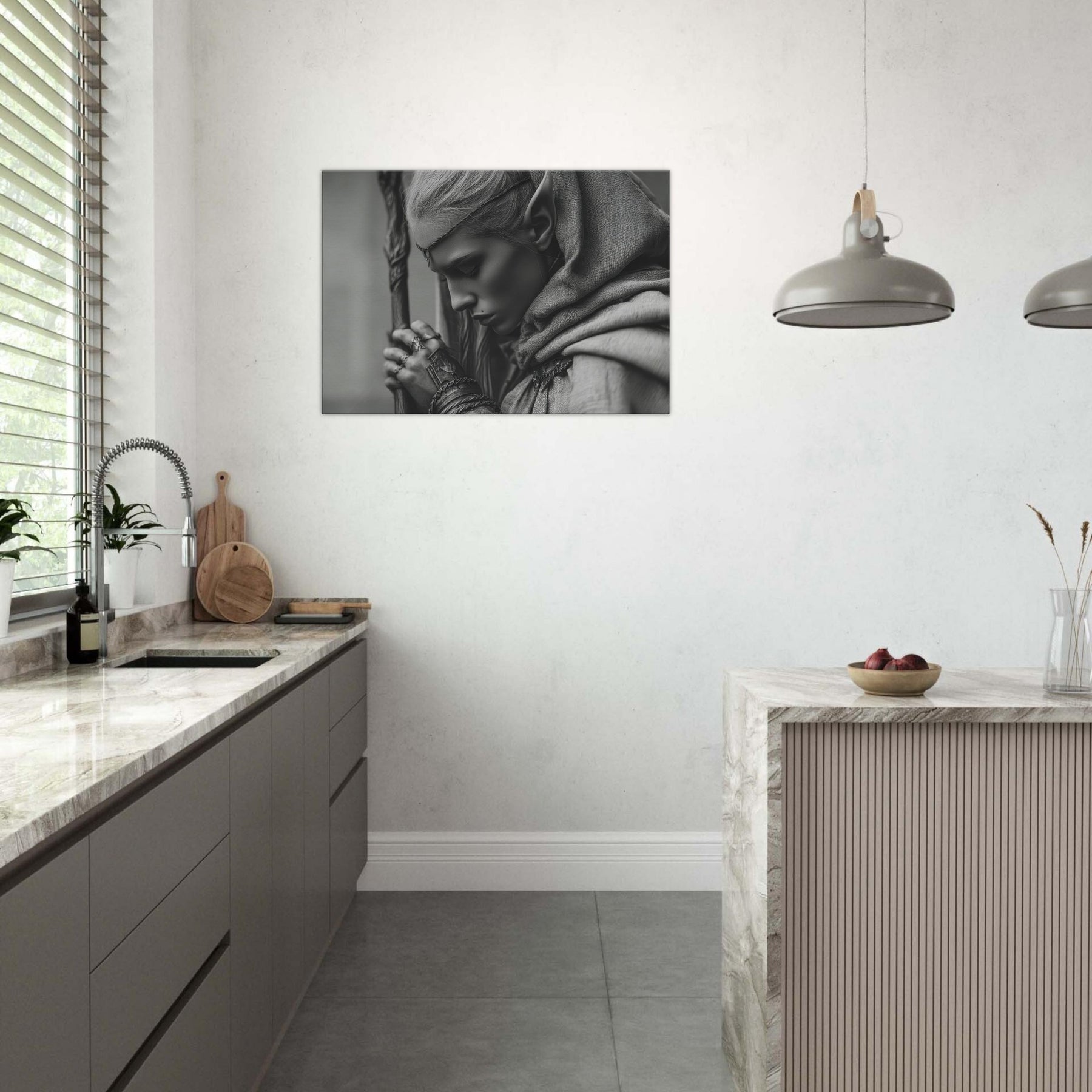 Immerse your space in a quiet, moonlit tension with this artwork in monochrome, where shadow and light trace every contour. The minimalist lines invite stillness, while the subtle textures evoke ancient forests and whispered runes.