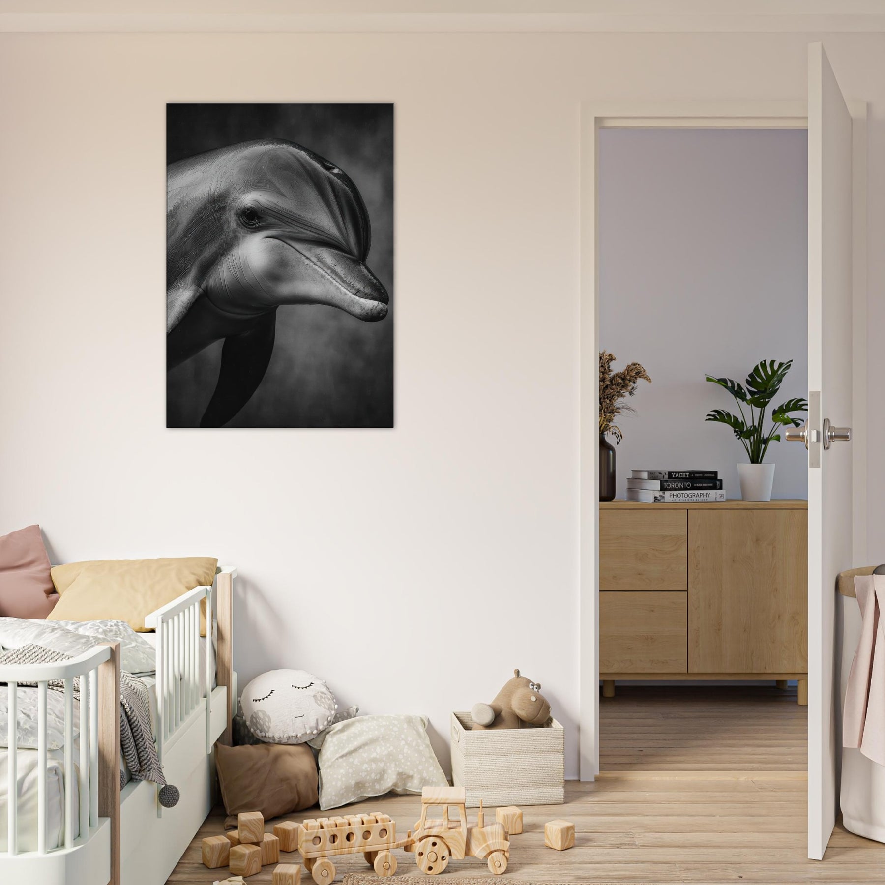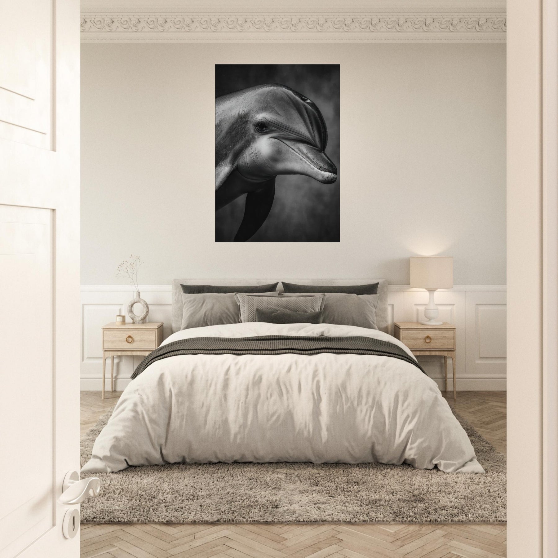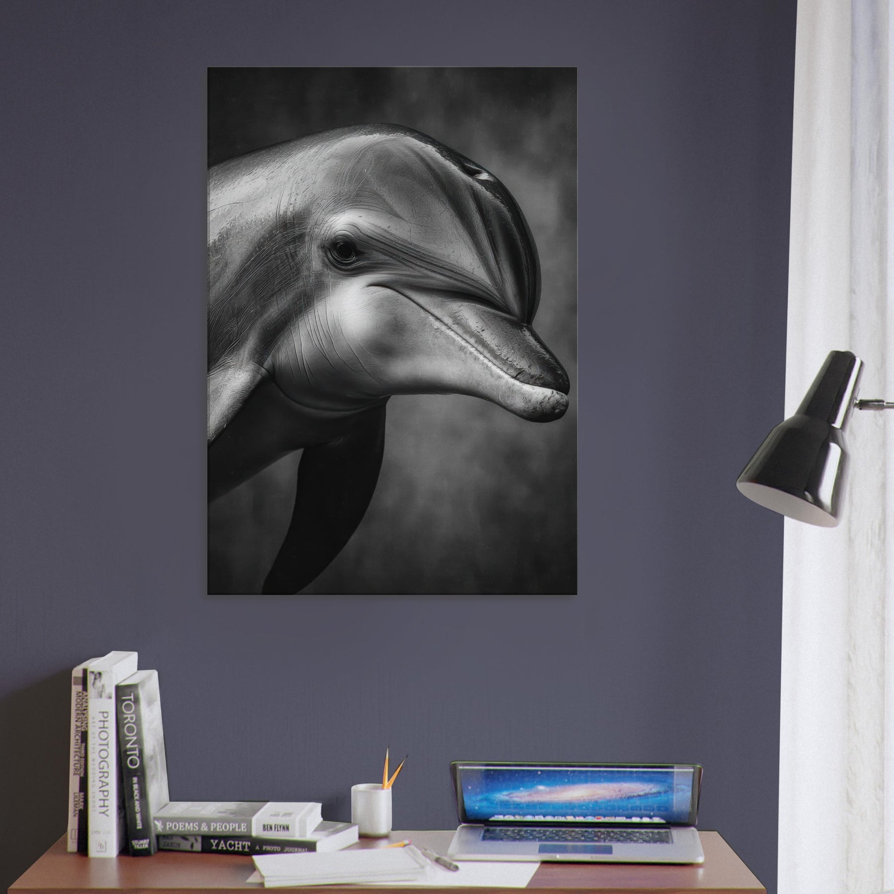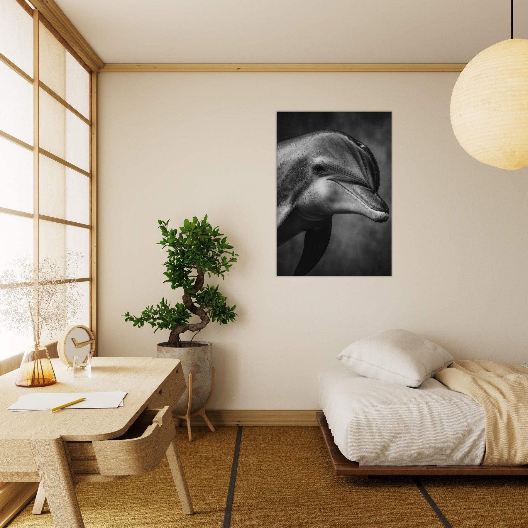 Immerse your space in the quiet current of a dolphin's presence, captured in stark black and white that amplifies the sculpture of its form. This image invites a calm, meditative drift soft gradients of light tracing the lines of a creature at once intimate and timeless. Hang it in a living room or study to conjure a serene coastal breath; the dolphin seems to sweep through the room, turning walls into an ocean of contemplation.