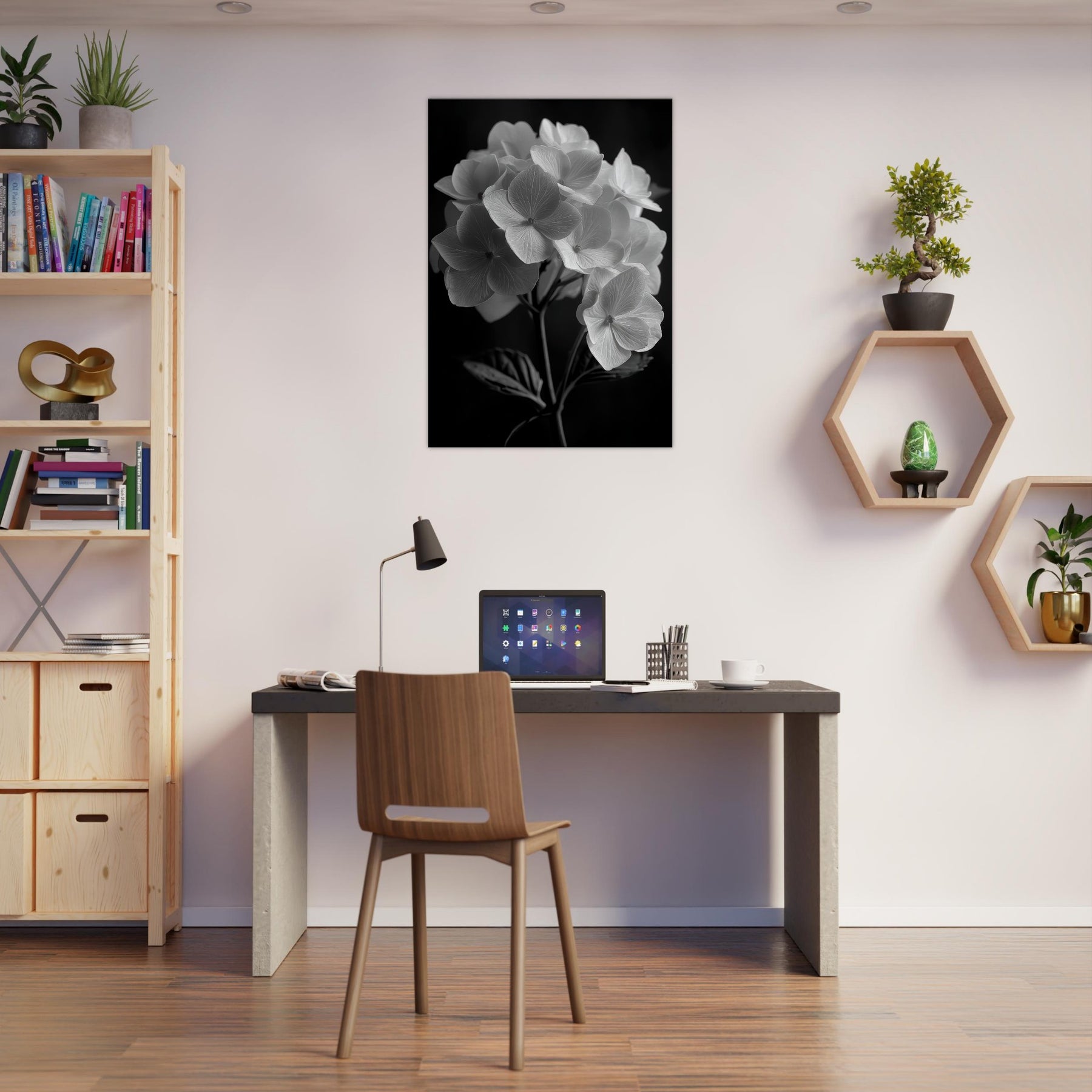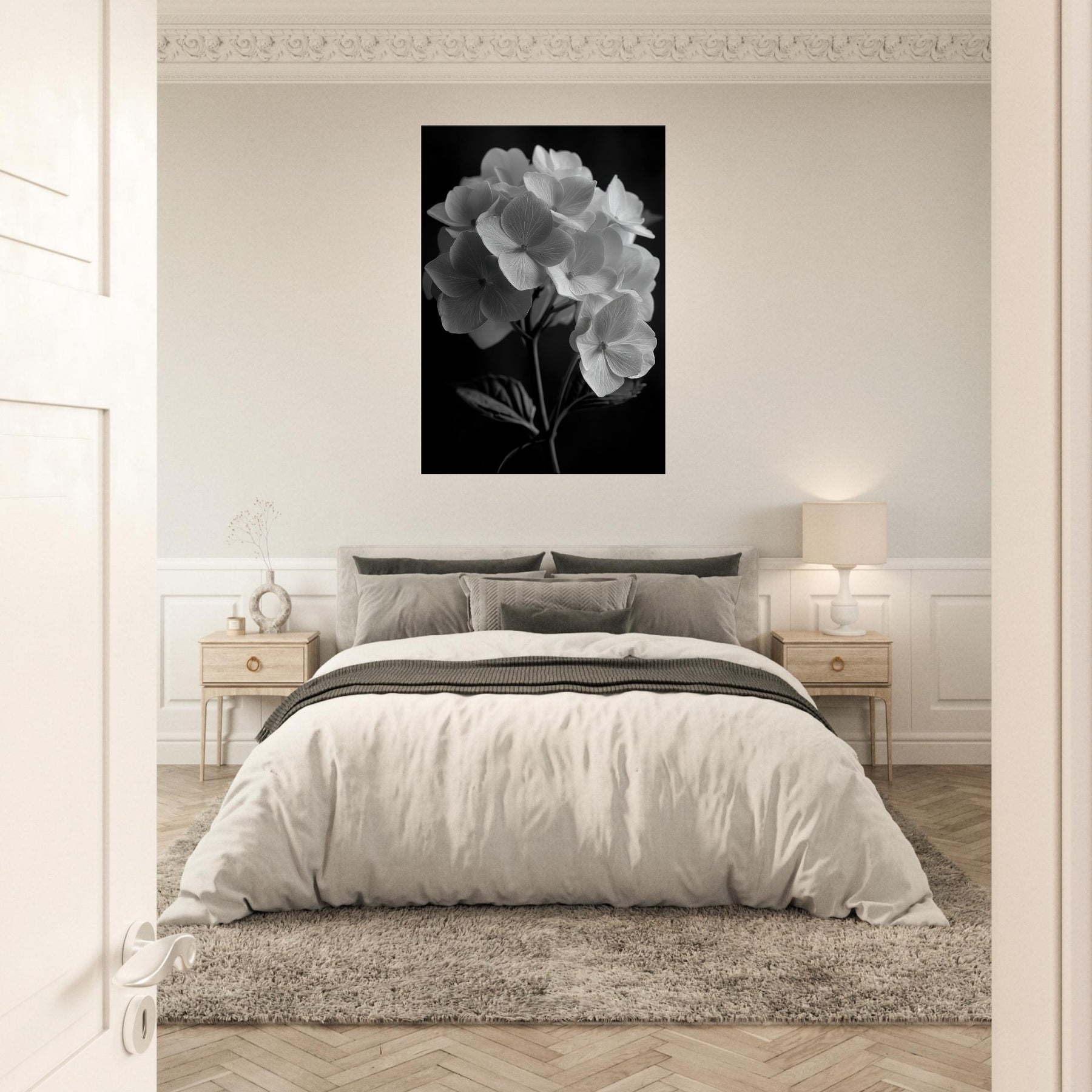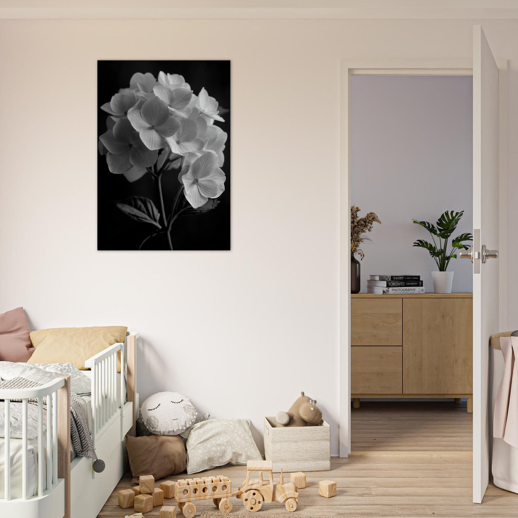Like a quiet conversation between light and shadow, this Hydrangea study renders every petal in lyrical grayscale. The primary subject blooms against a velvet backdrop, inviting a calm, almost meditative atmosphere into any living space. Its subtle contrast and delicate veining lend a sculptural quality that enhances a sofa corner or a dining wall with timeless grace. Natural yet refined, this piece pairs beautifully with minimalist palettes, soft textures, and quiet evenings, turning ordinary rooms into serene retreats.