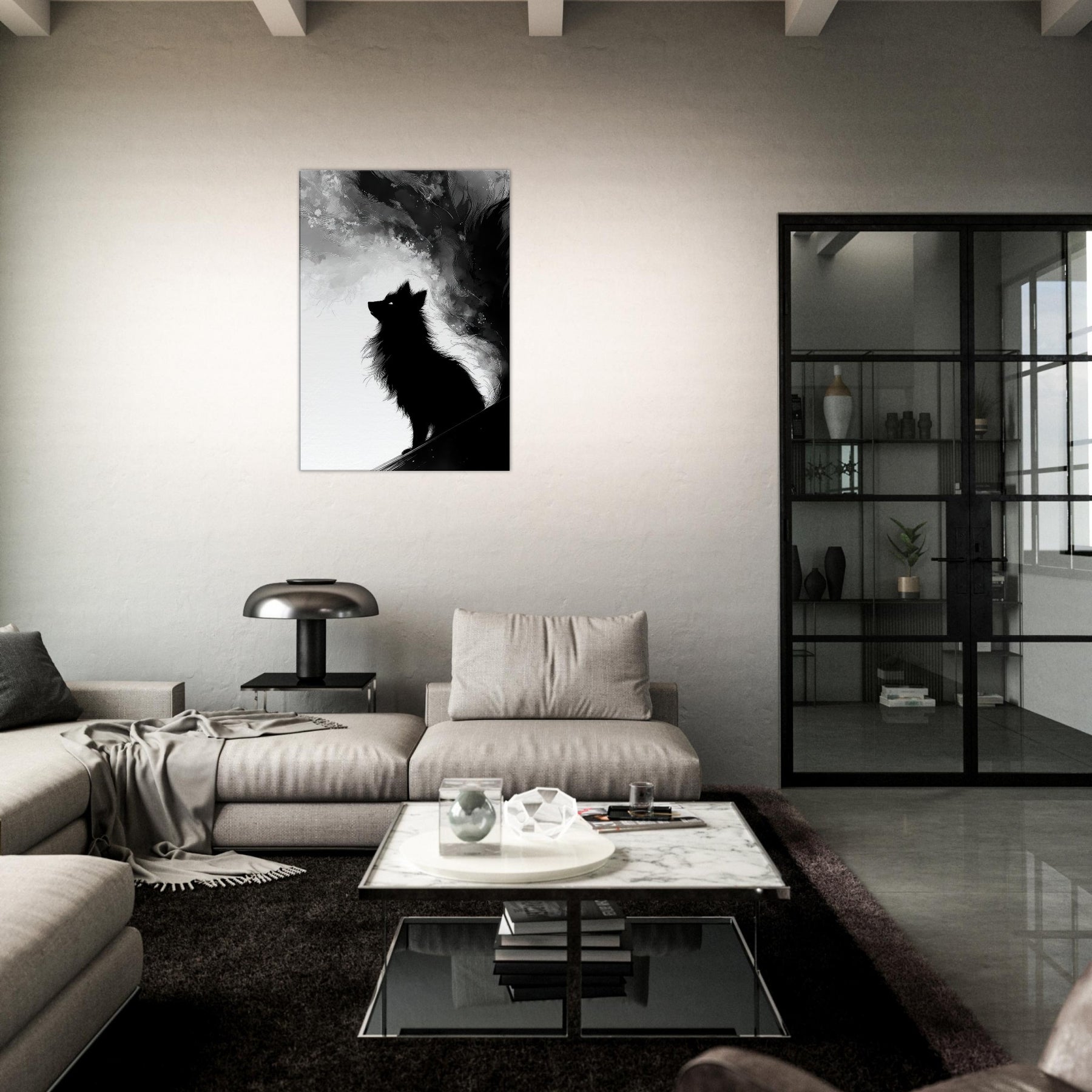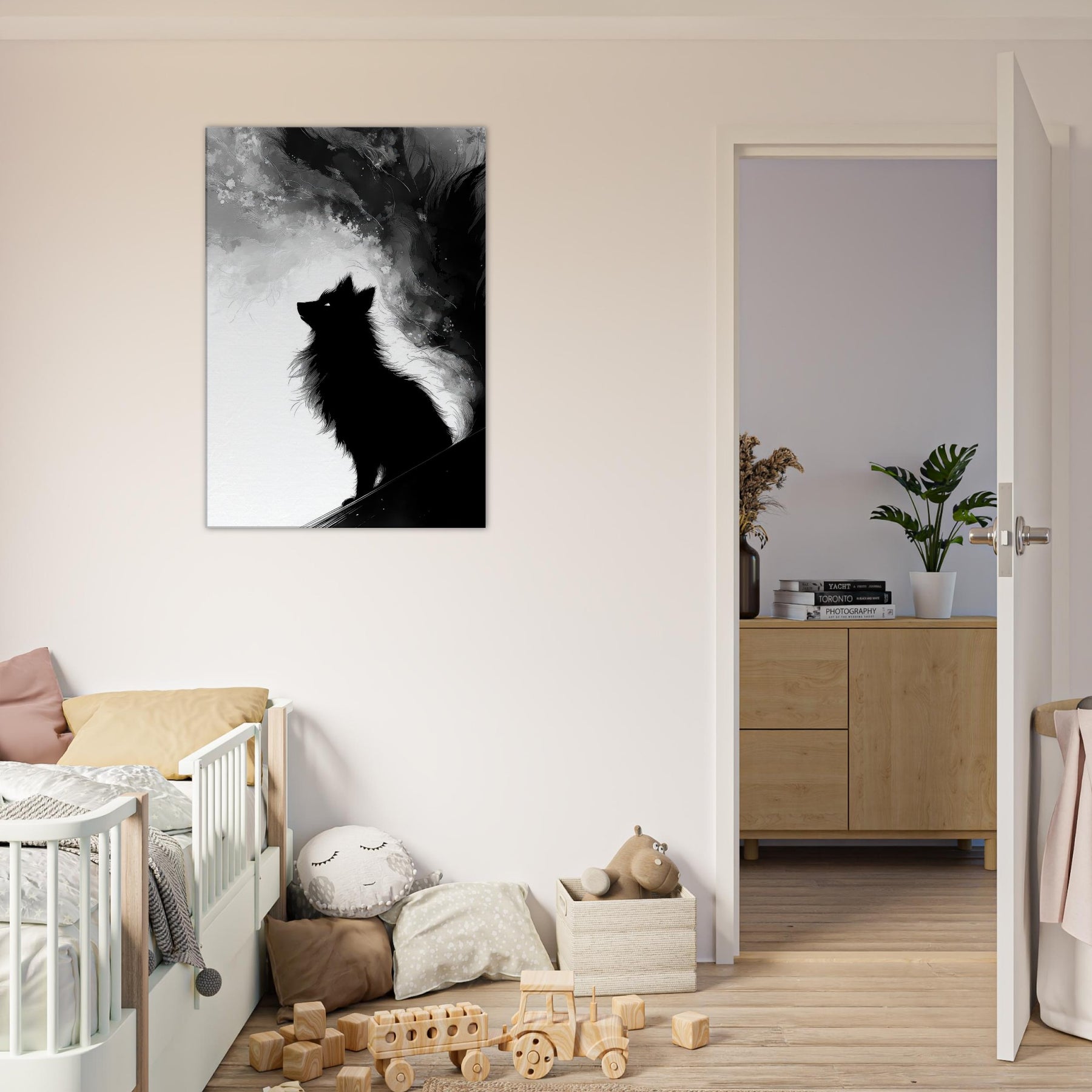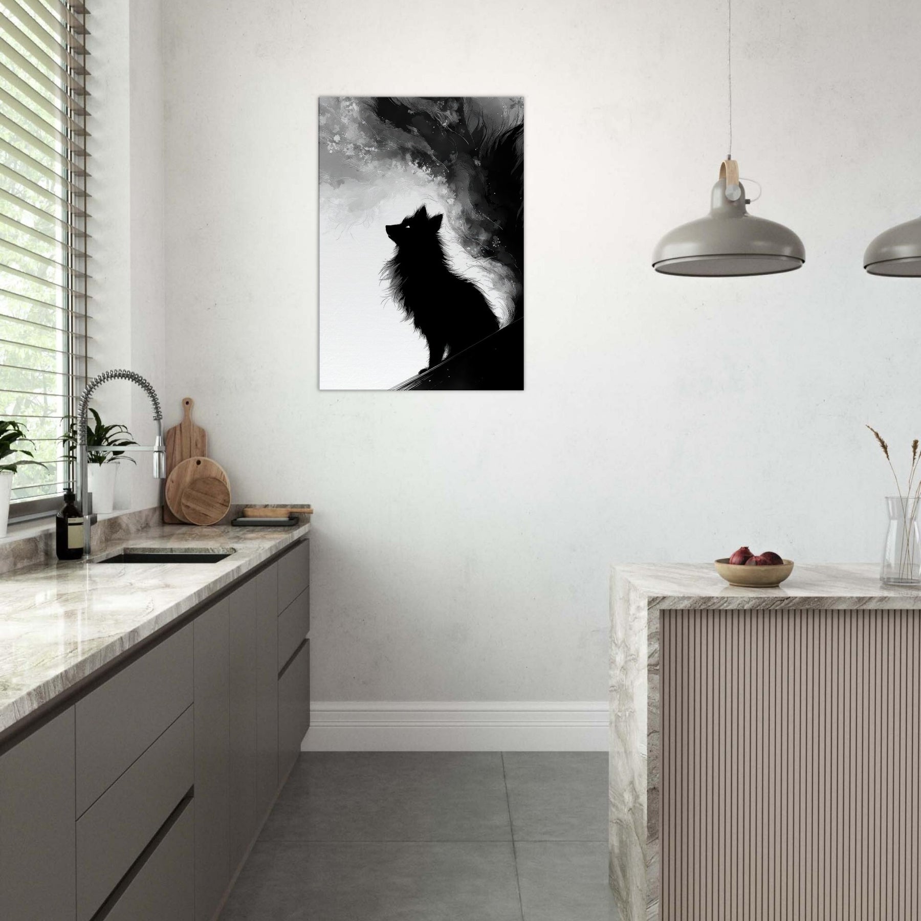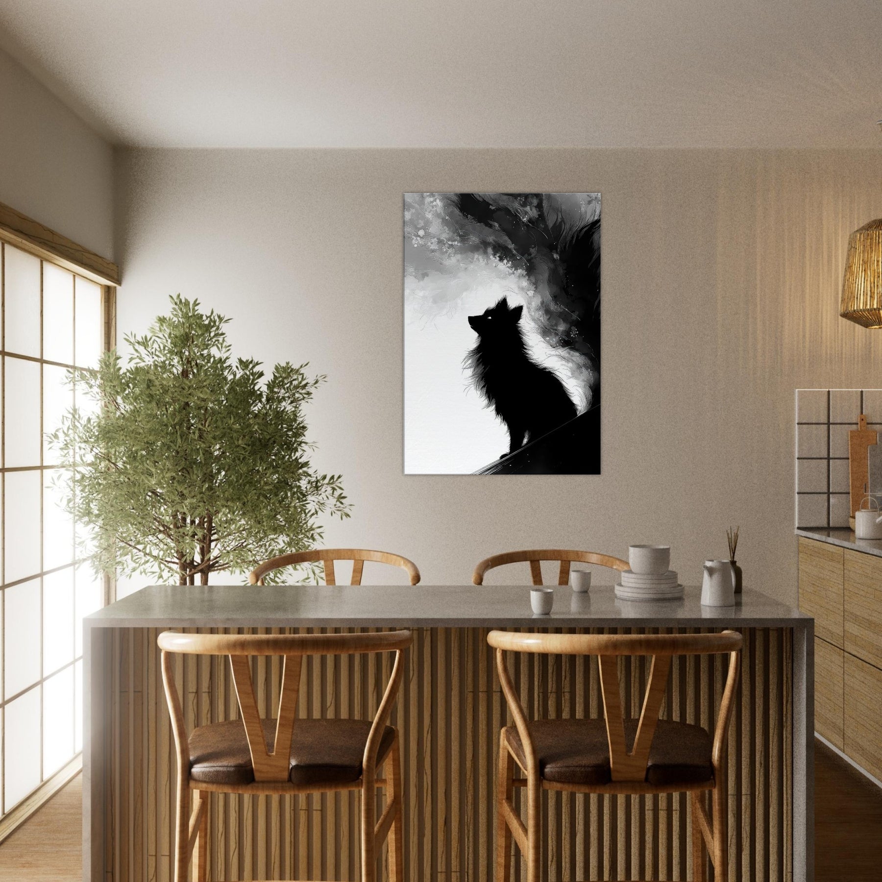 Let your walls reveal a whisper of myth with this black and white Kitsune silhouette, where fur and cloud like swirls blend into haunting negative space.