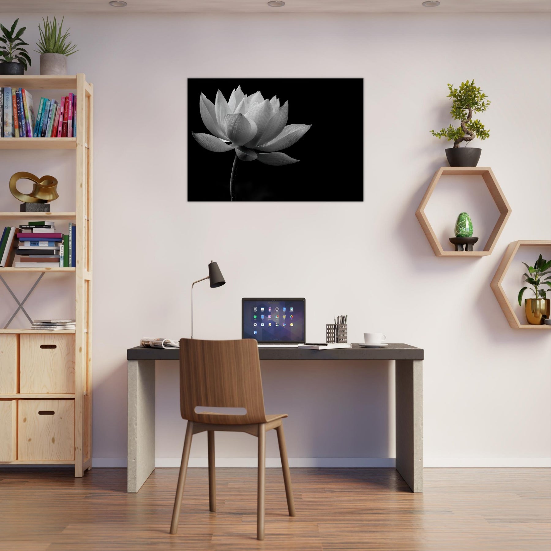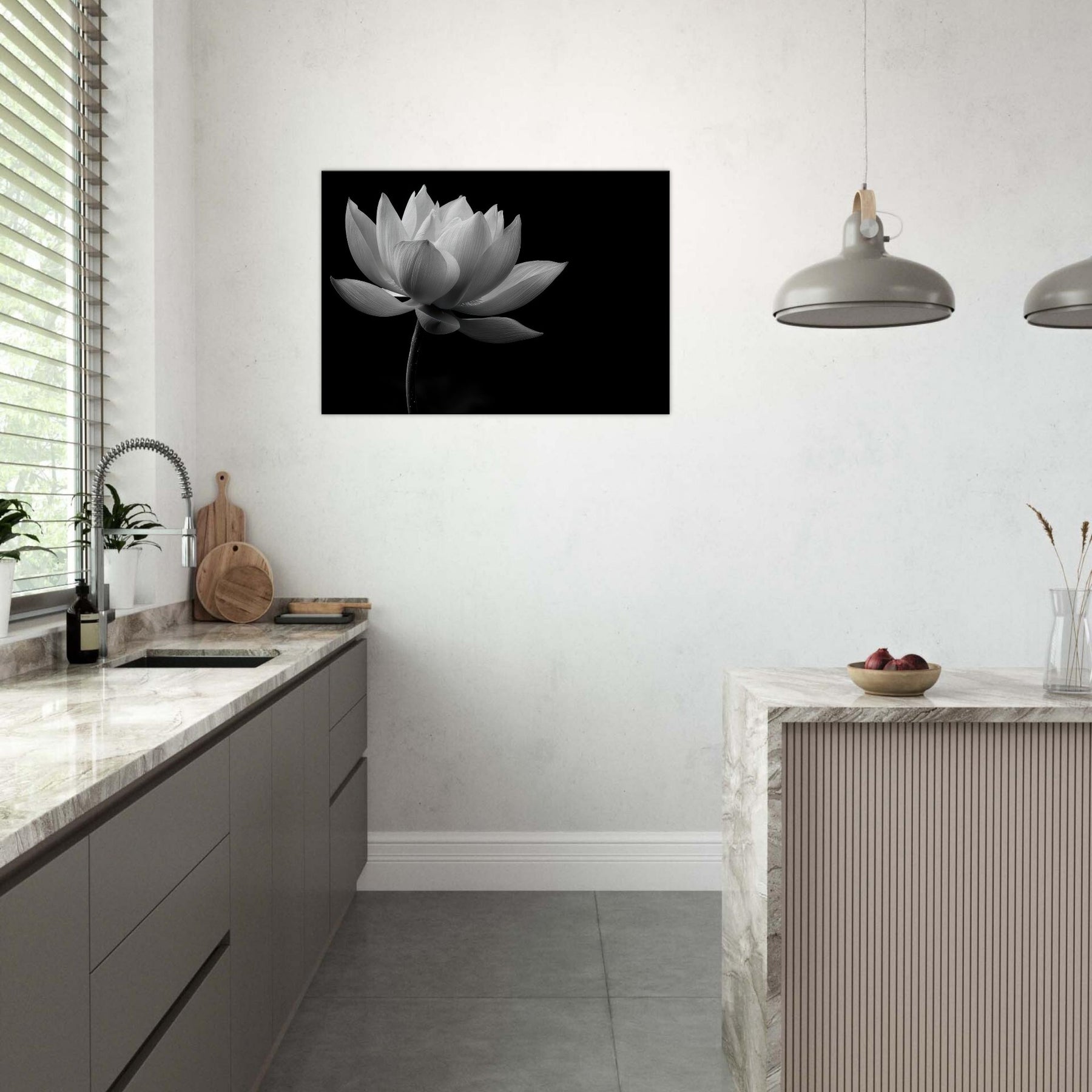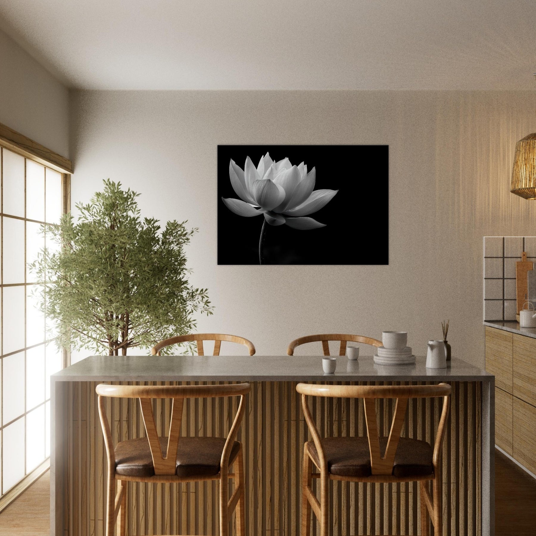 Hang it where morning sun or evening glow can kiss the monochrome contours, and let the space breathe with a serene, contemplative mood that elevates your everyday living area.