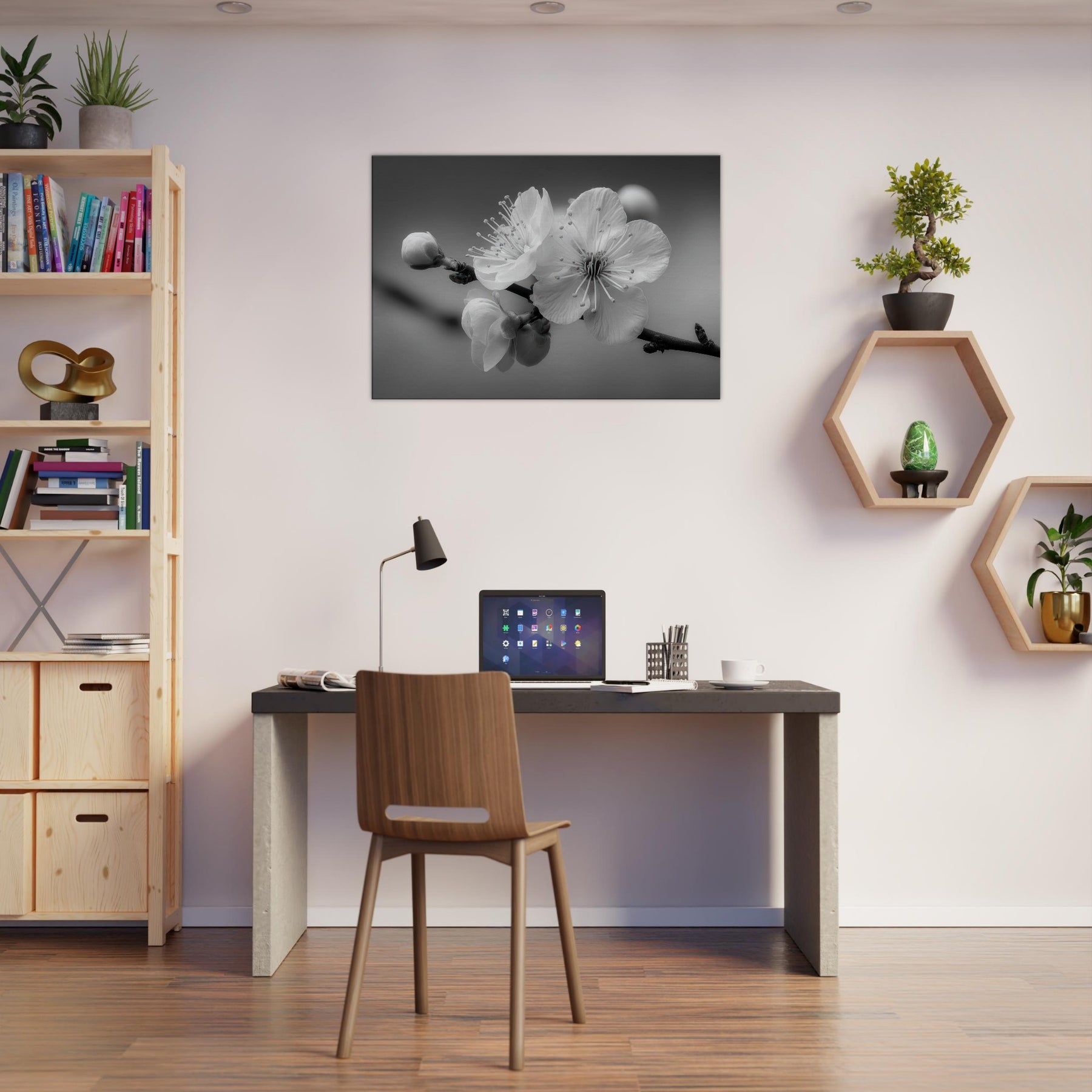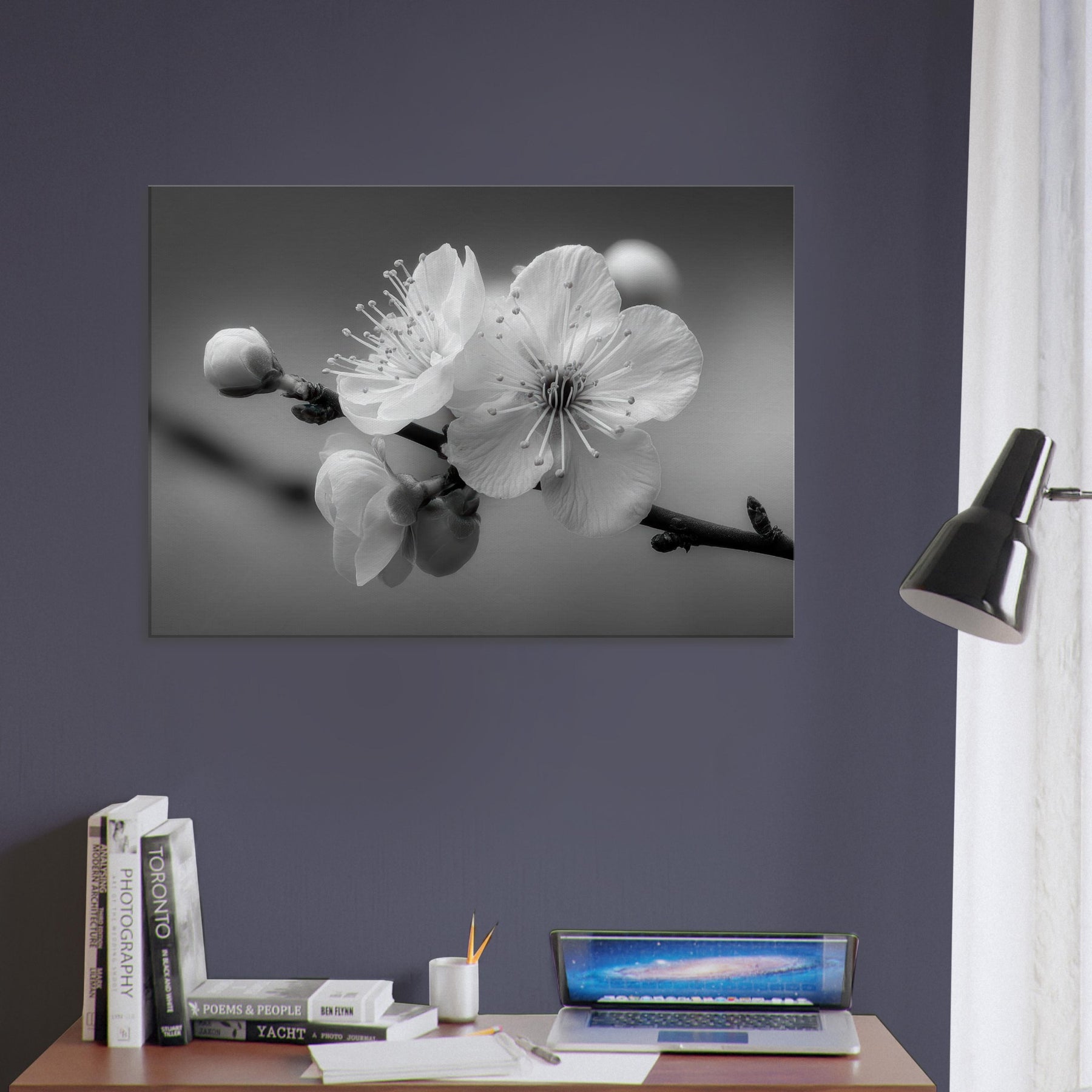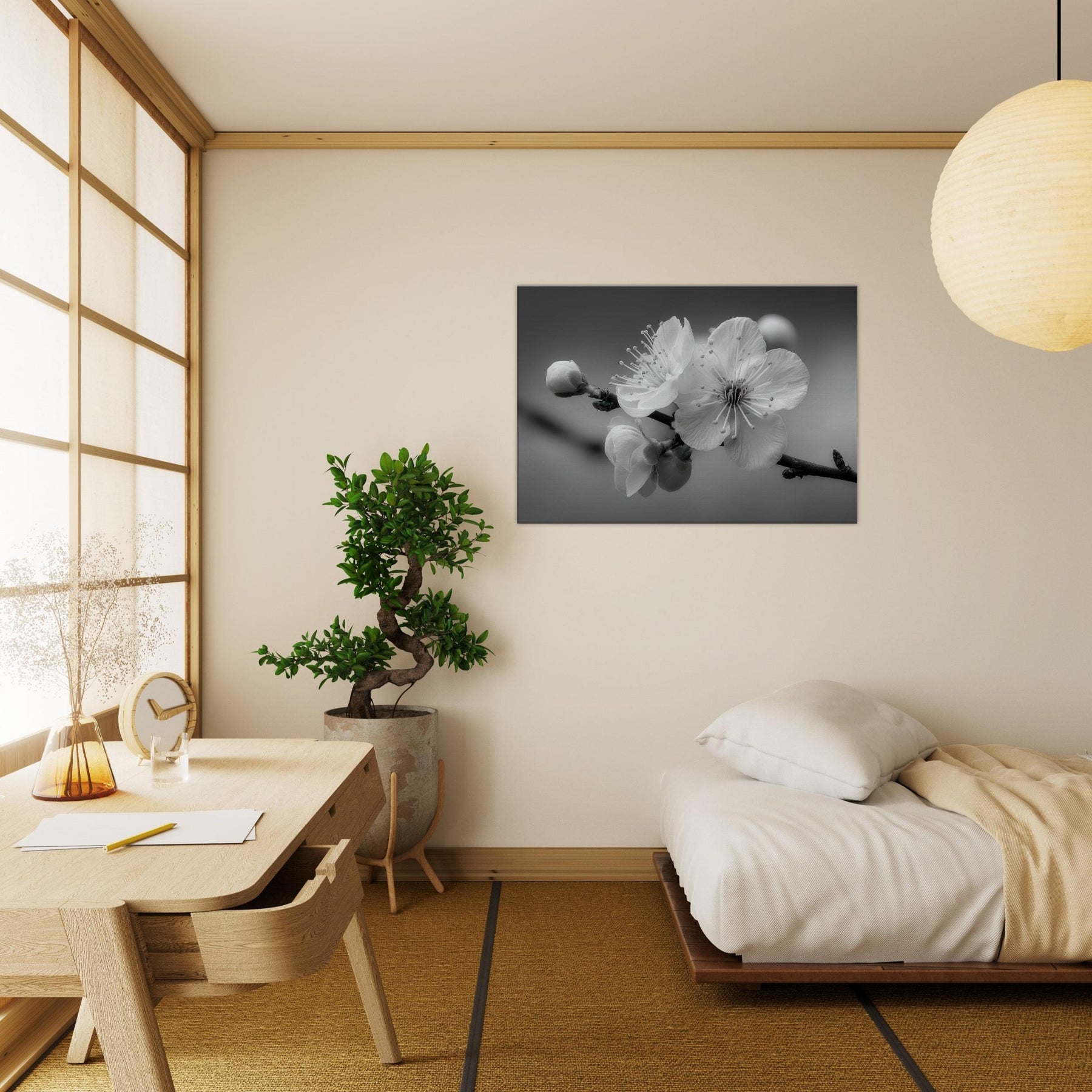 Hang it to invite a contemplative breath into the room; the scene casts a serene, timeless mood that pairs with neutral tones or bold furnishings, complementing a living space with subtle drama. This piece captures nature's grace in a single, intimate frame the moment where blossom and branch meet in quiet resilience.