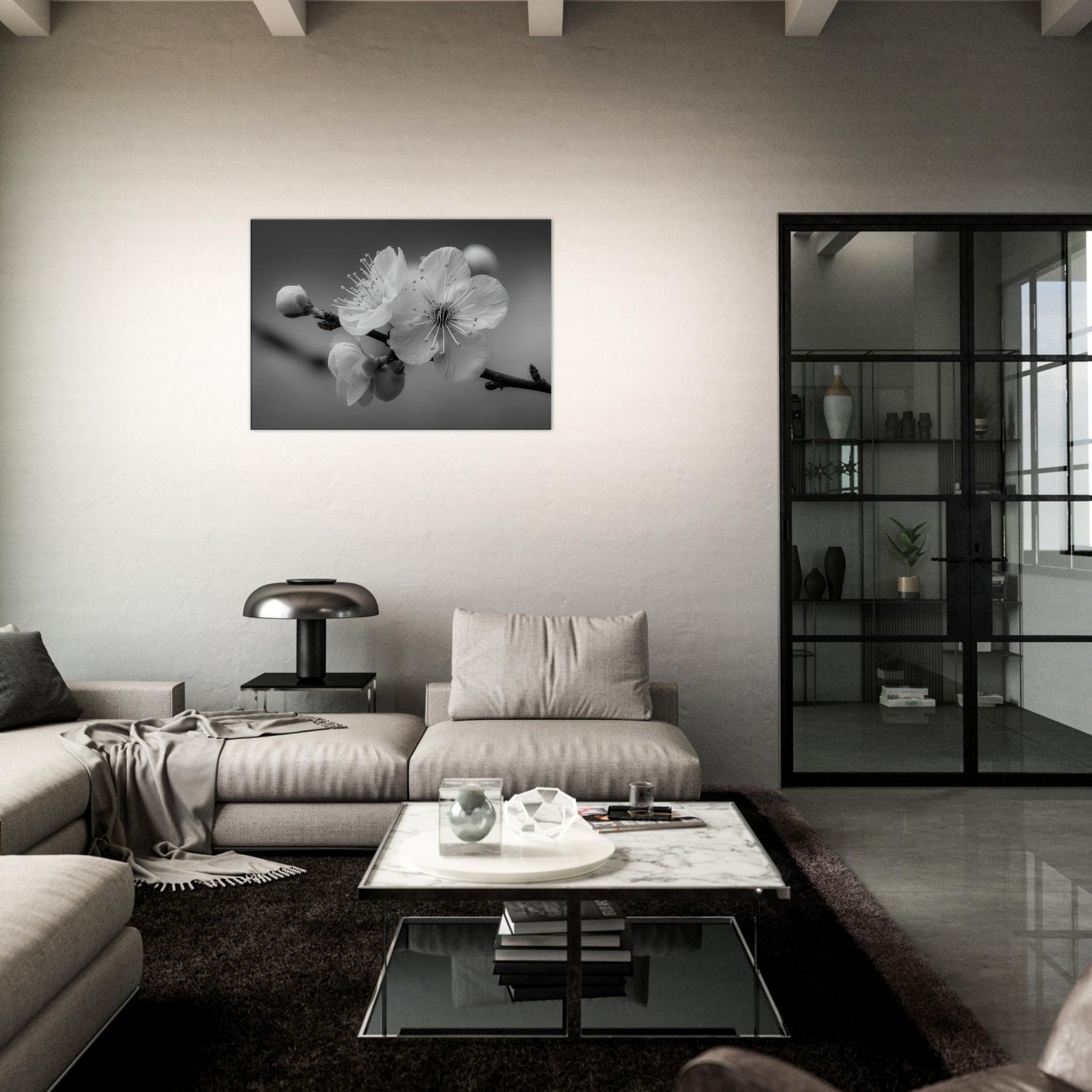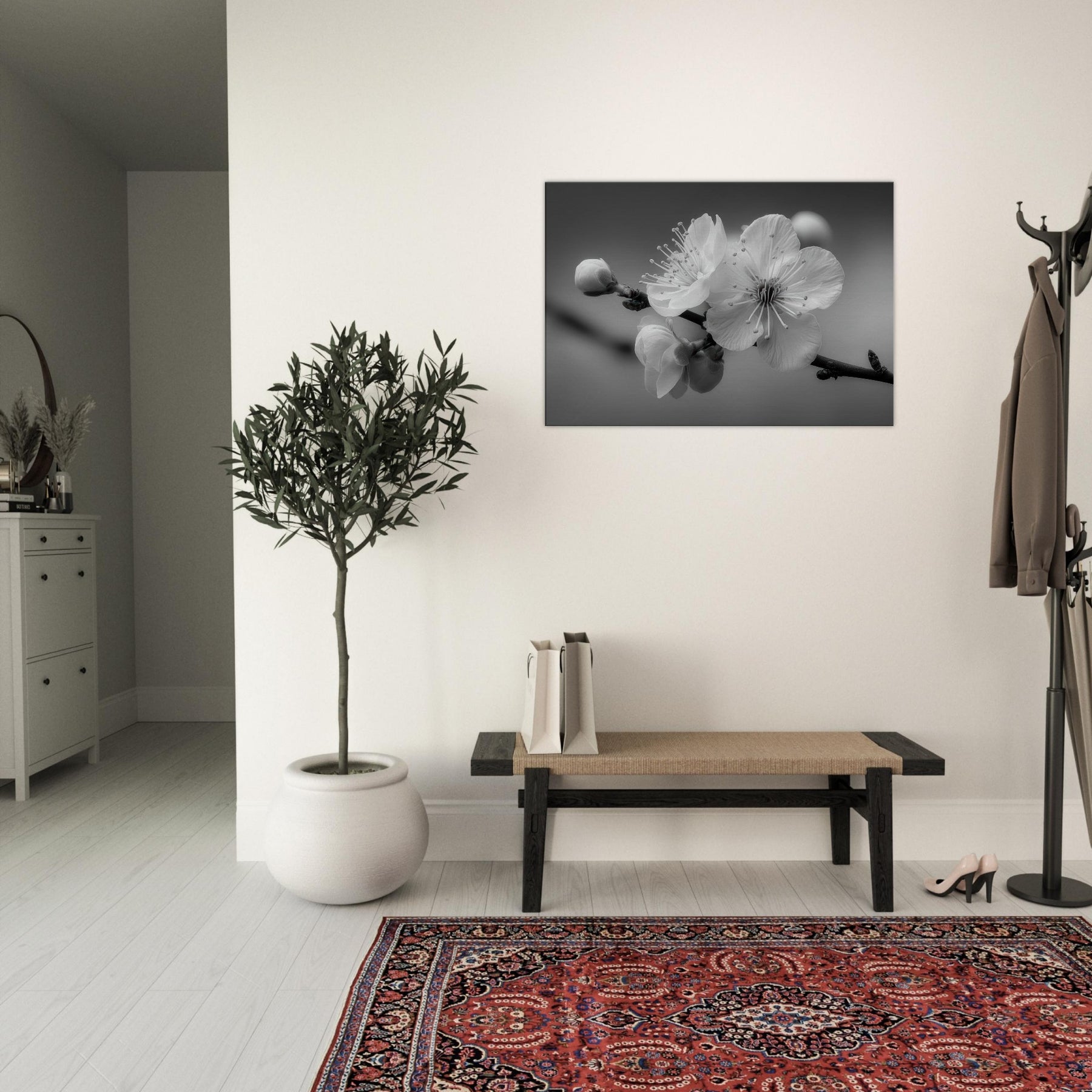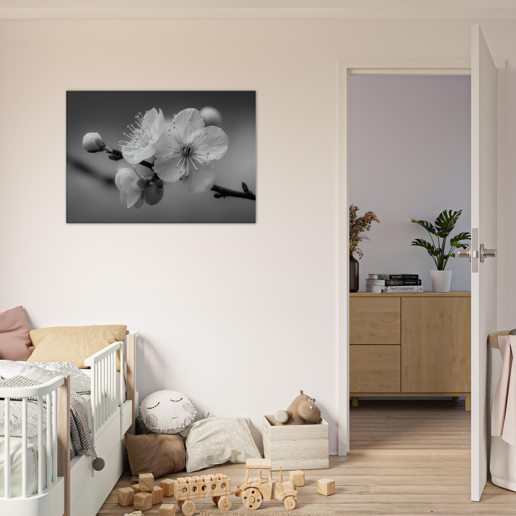 Hang it to invite a contemplative breath into the room; the scene casts a serene, timeless mood that pairs with neutral tones or bold furnishings, complementing a living space with subtle drama. This piece captures nature's grace in a single, intimate frame the moment where blossom and branch meet in quiet resilience.