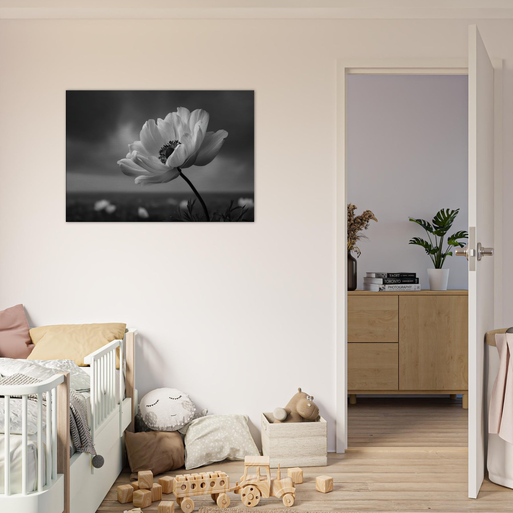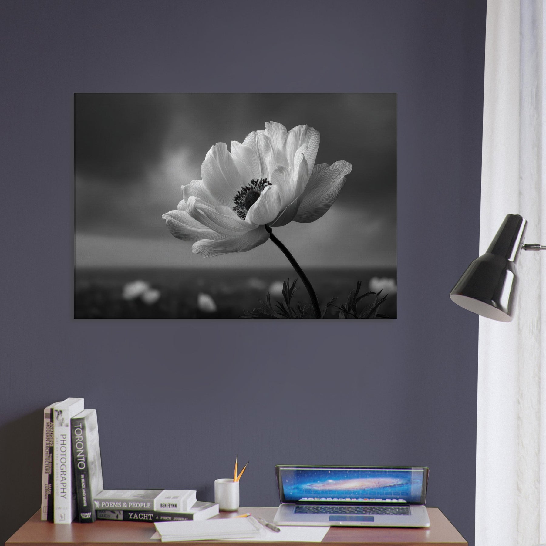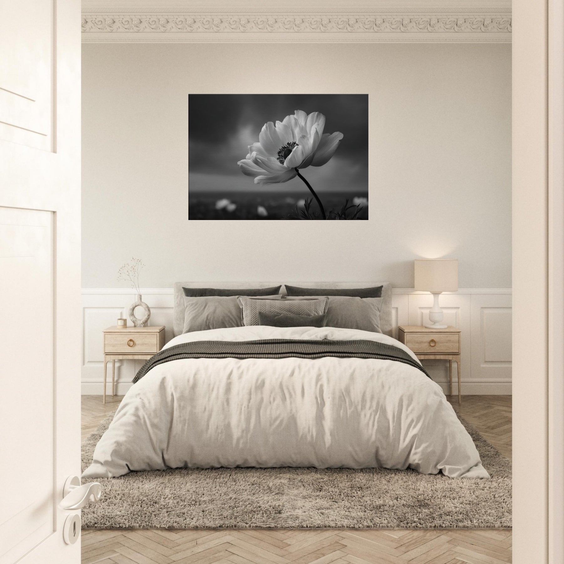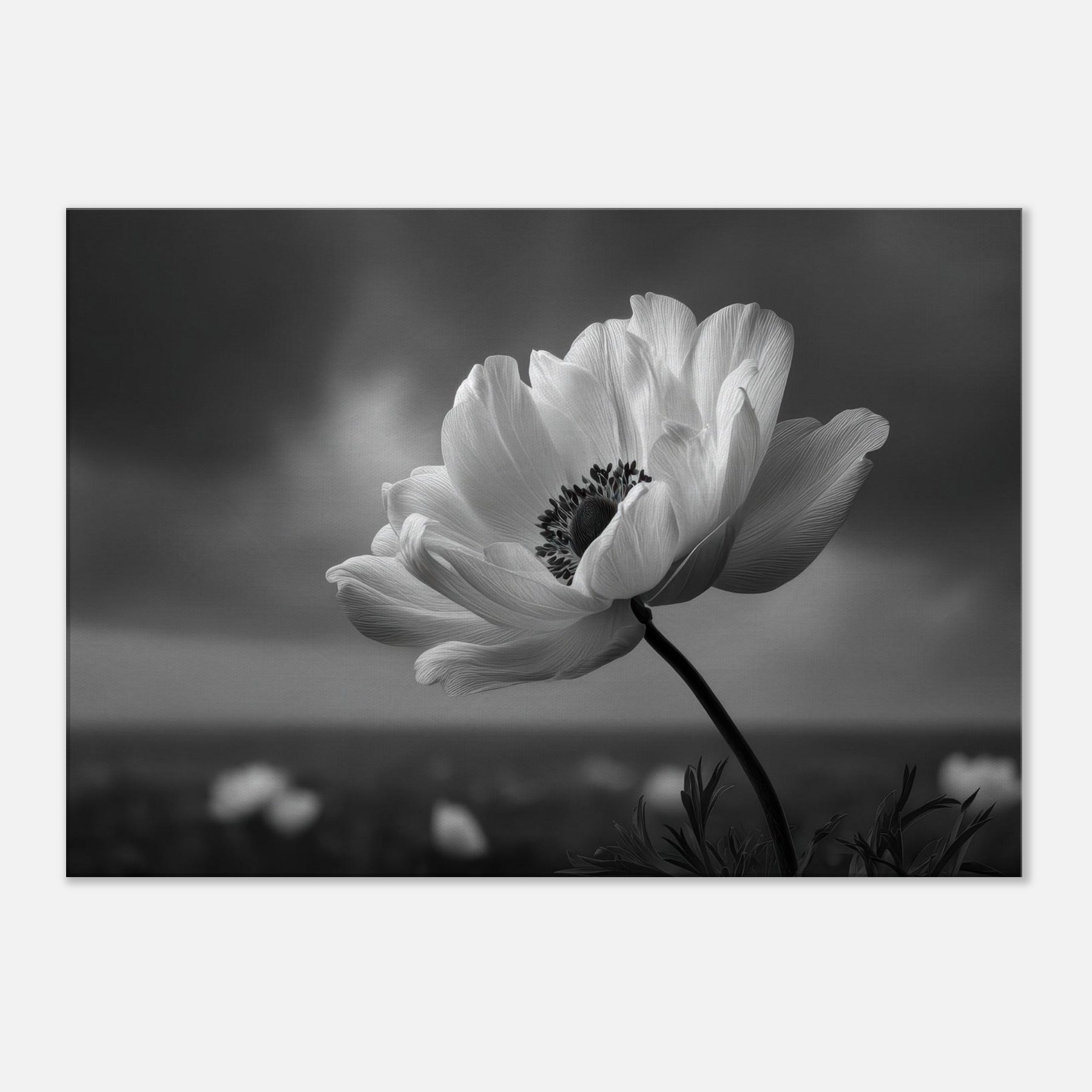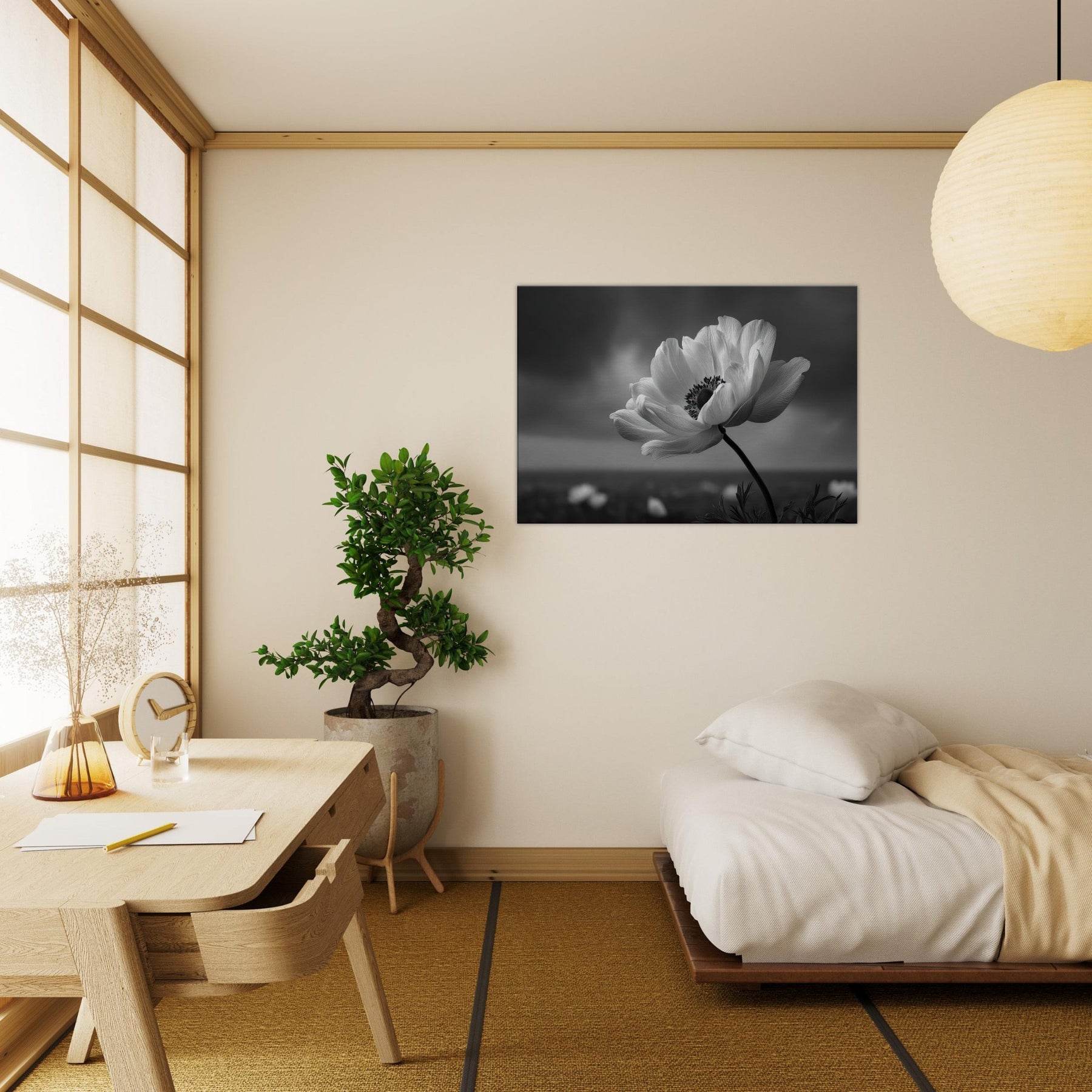 Let the Anemone unfold before you in quiet, sculptural grace. This black and white study captures the flower's delicate radiance, its petals curling like soft sails against a velvety sky. The contrast between light and shadow invites a contemplative mood, turning any room into a sanctuary of breath and stillness. Framed in its simplicity, the artwork echoes nature's quiet drama, perfect for a living room, hallway, or bedroom where texture, tone, and a hint of mystery are prized. A timeless accent that nourishes calm daily rituals.