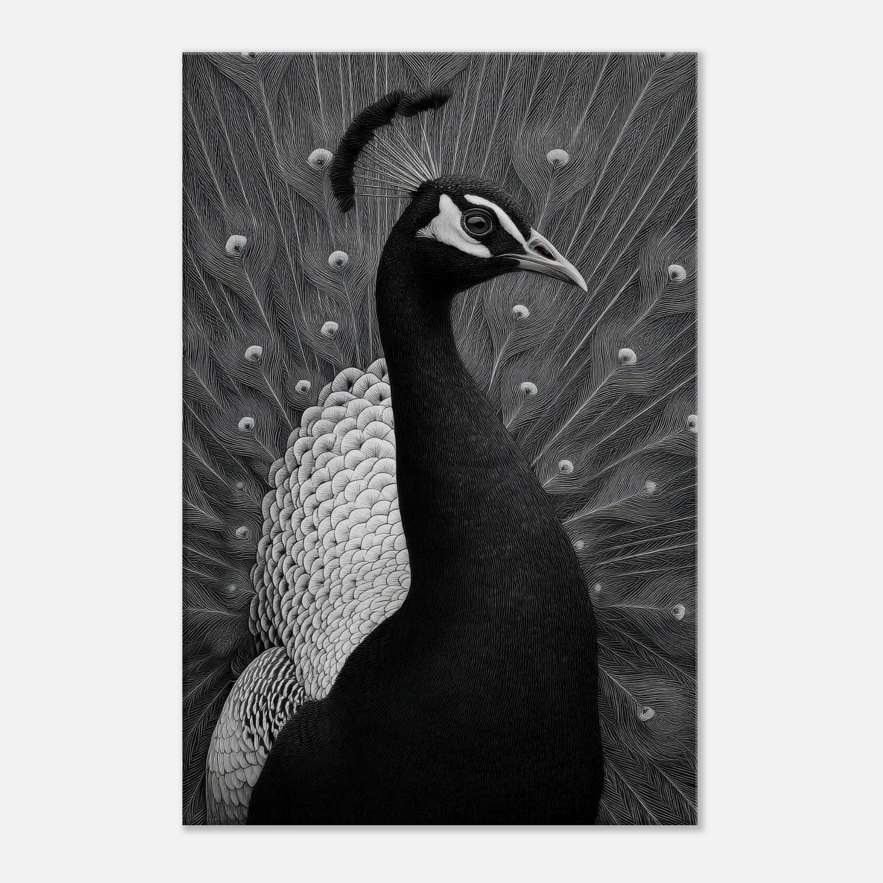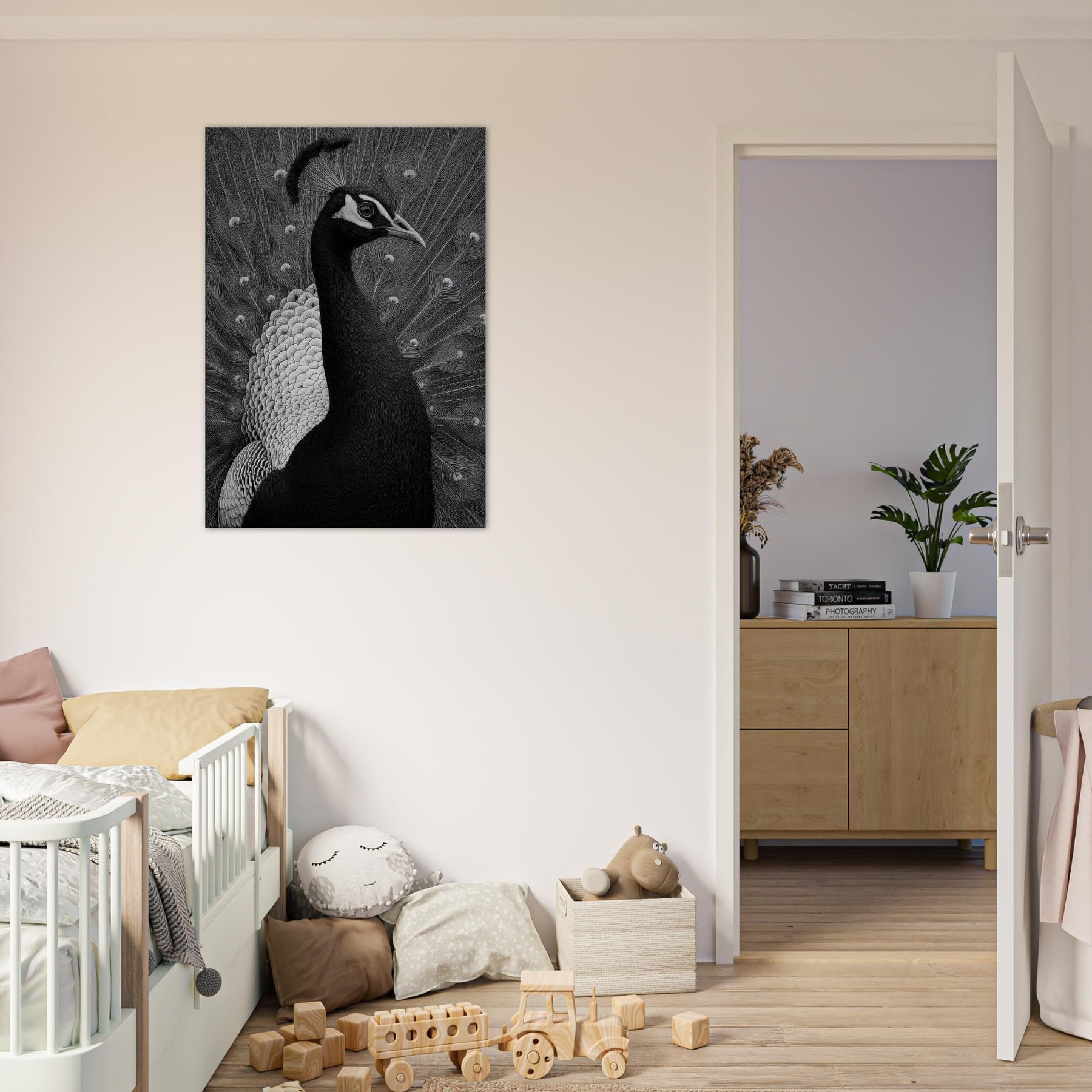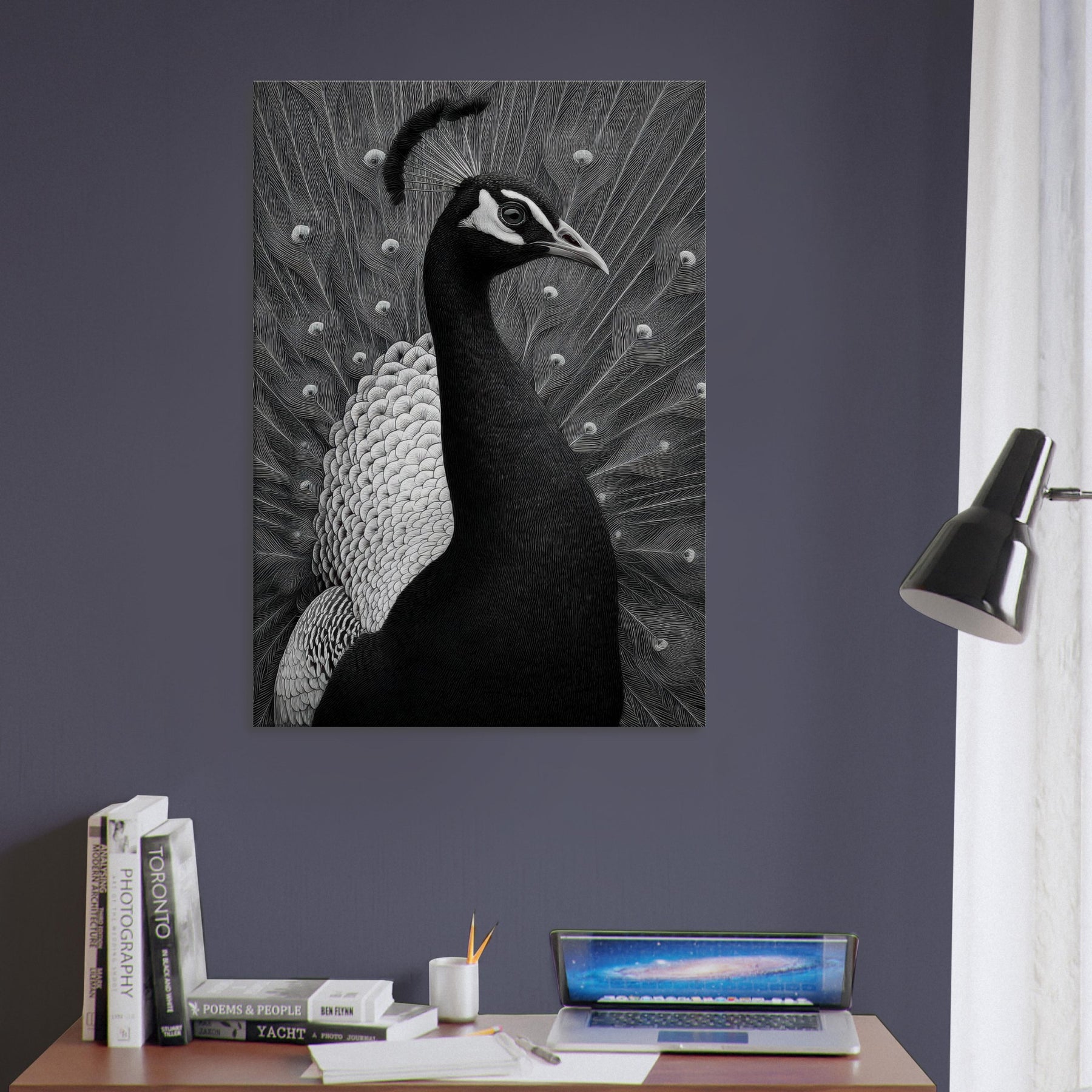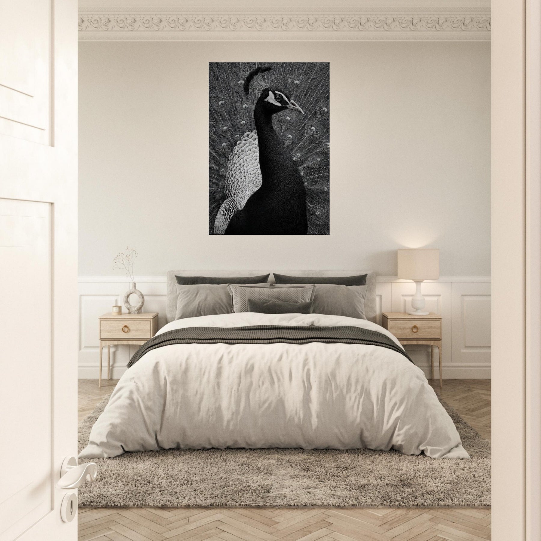 Immerse your space in the quiet drama of this Peacock in monochrome. The sculpted black neck curves into a fan of silver gray plumage, each feather rendered as a delicate line that catches the light with a soft, tactile whisper. This wall art invites stillness and reflection, turning a living room or study into a gallery of restraint and grace. The Peacock becomes a timeless symbol of beauty and balance, without color, but with luminous presence.