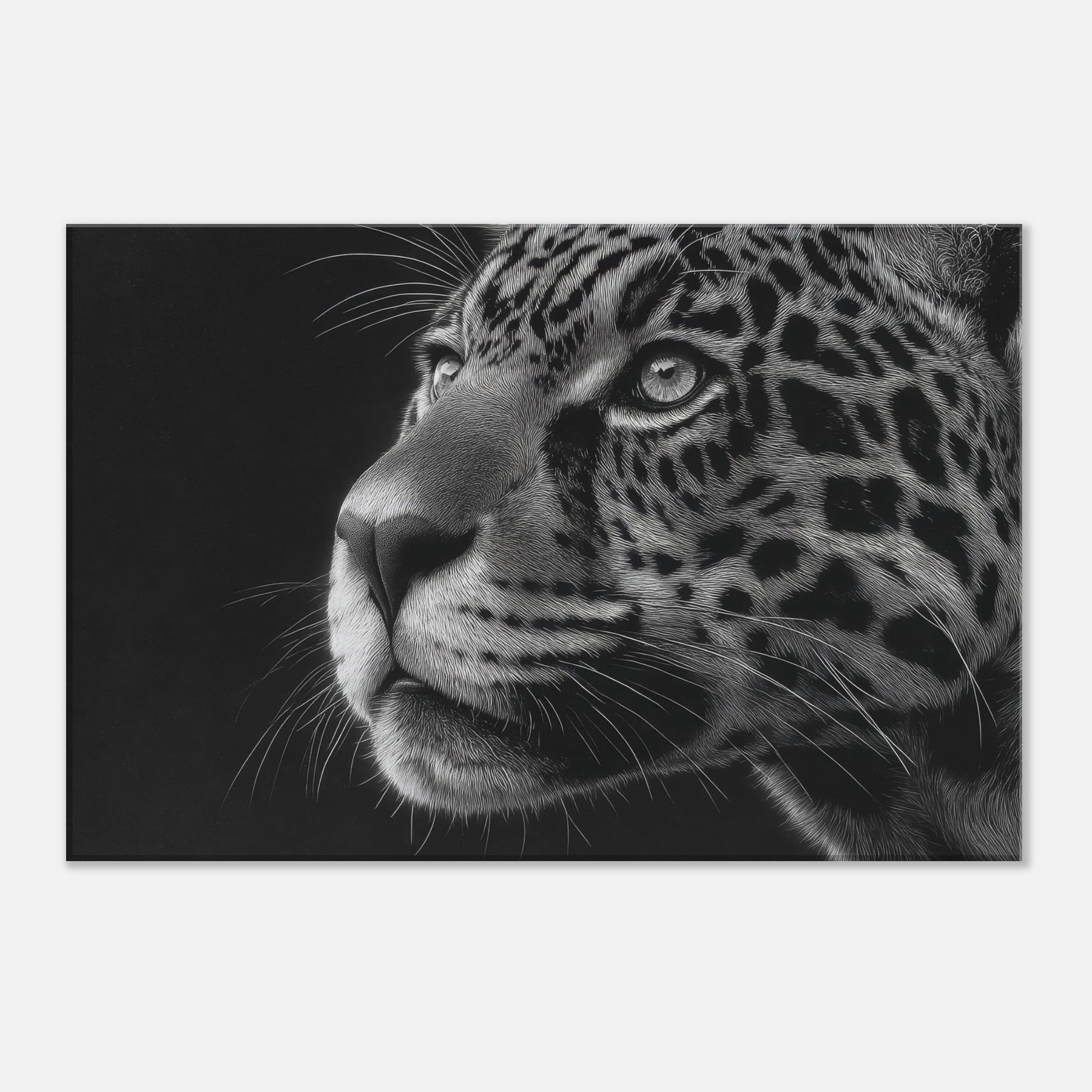 This artwork invites calm presence, a focal point that deepens conversation in a living room or study. The Jaguar's poised strength evokes timeless wilderness, while the monochrome palette lends modern elegance, enriching walls with a sensory hush and luminous contrast.