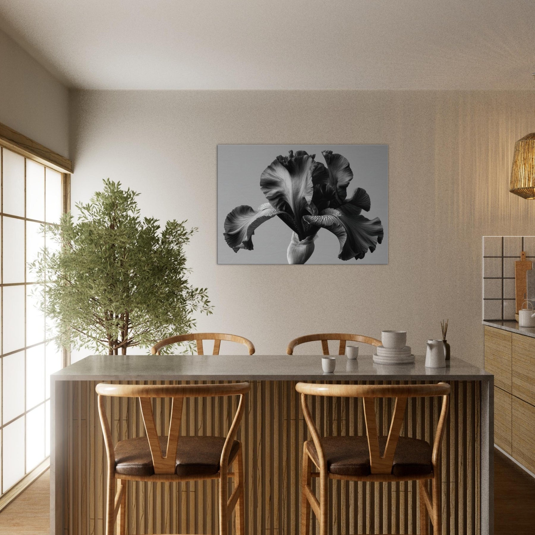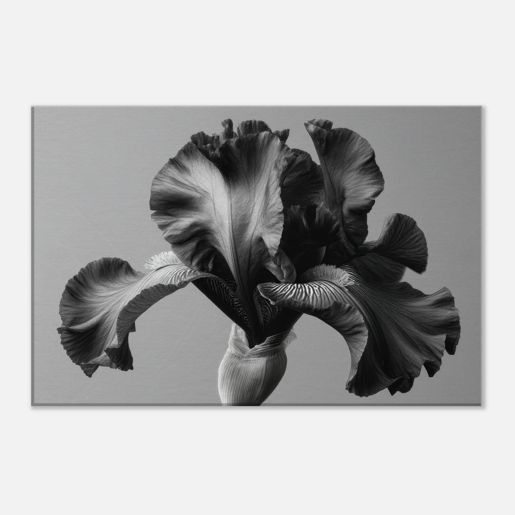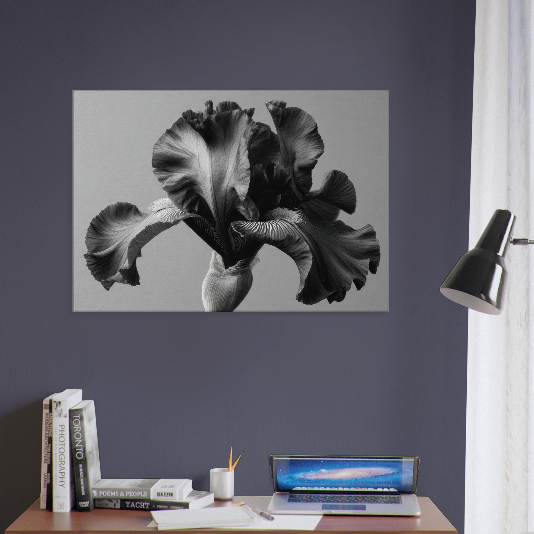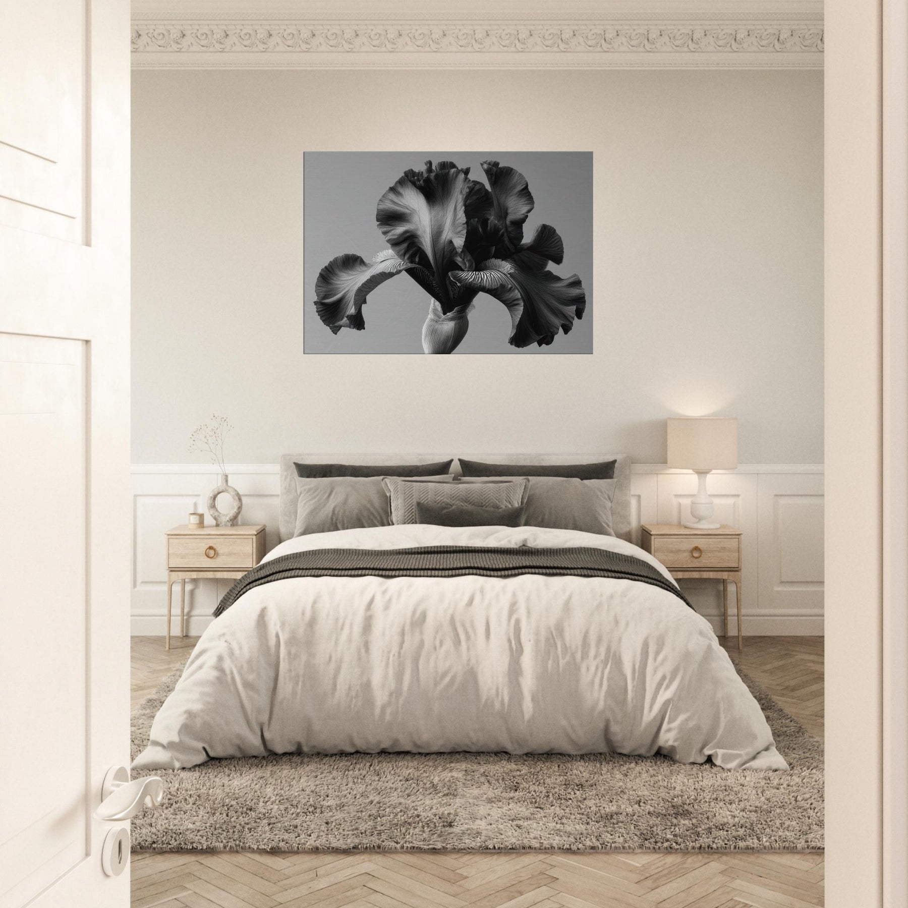 An arresting study in grayscale, this Iris captures nature’s quiet drama in satin soft shadow and luminous line. The black and white bloom unfolds with delicate texture, inviting calm and focus to a living room or bedroom.