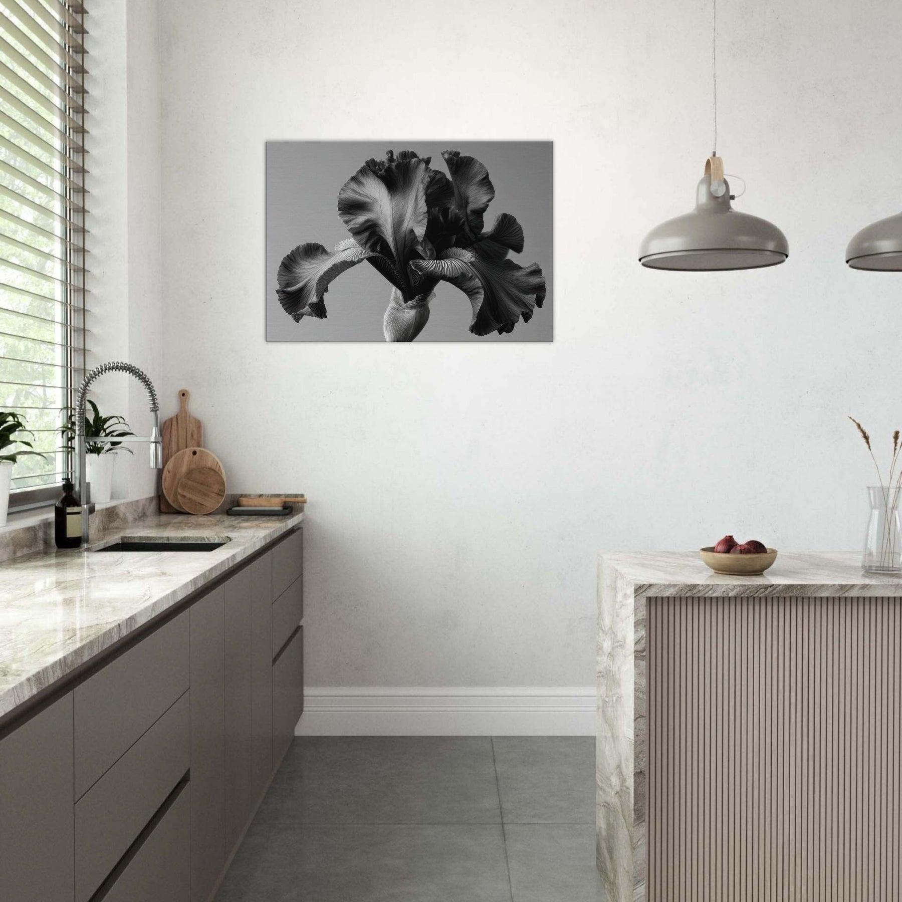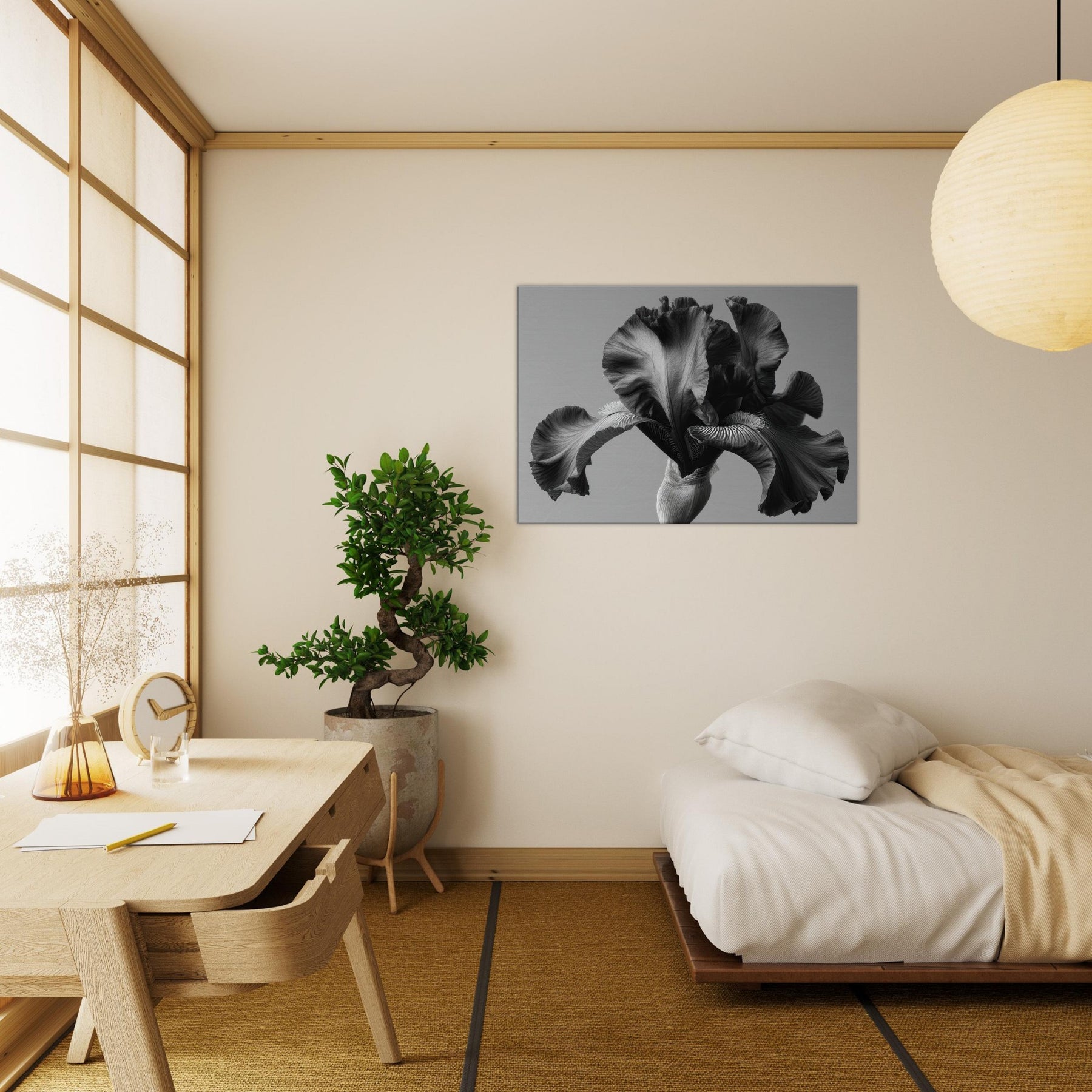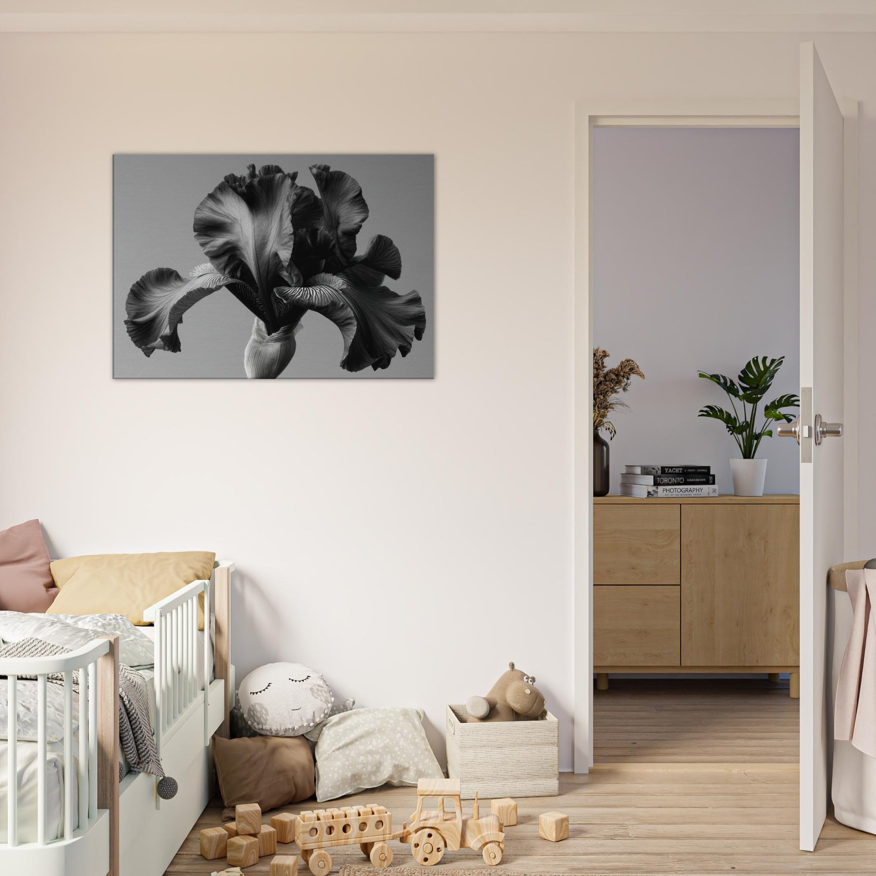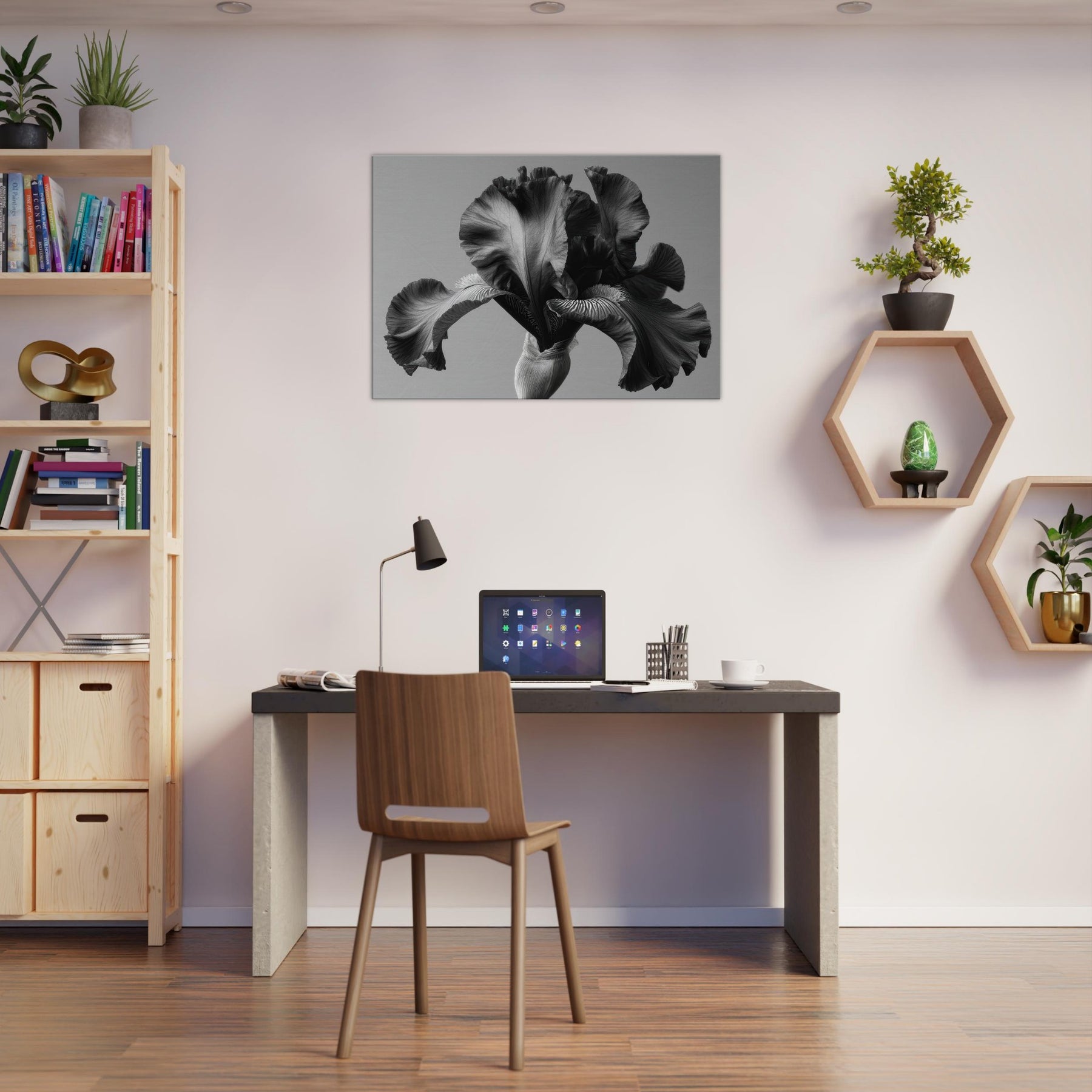 An arresting study in grayscale, this Iris captures nature’s quiet drama in satin soft shadow and luminous line. The black and white bloom unfolds with delicate texture, inviting calm and focus to a living room or bedroom.