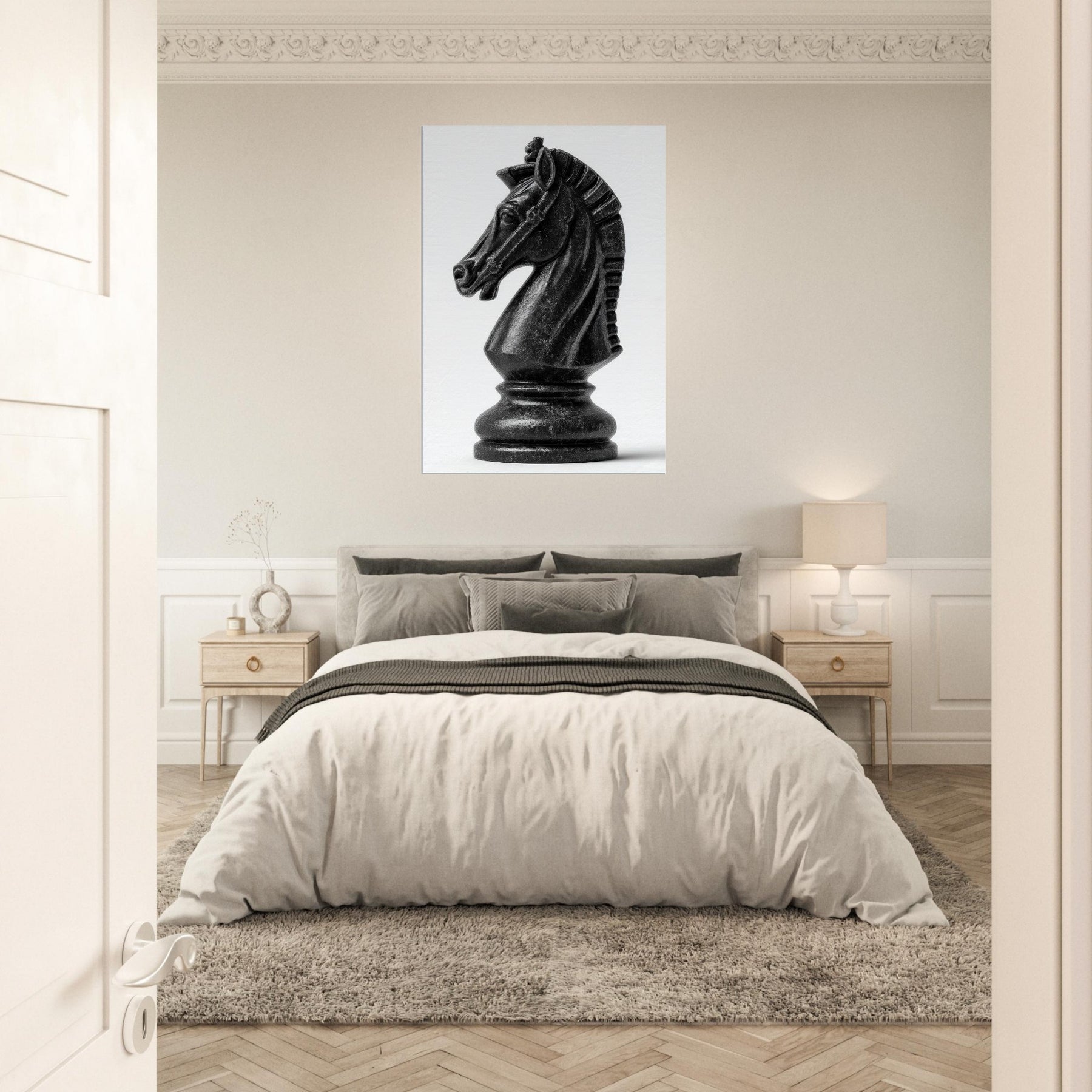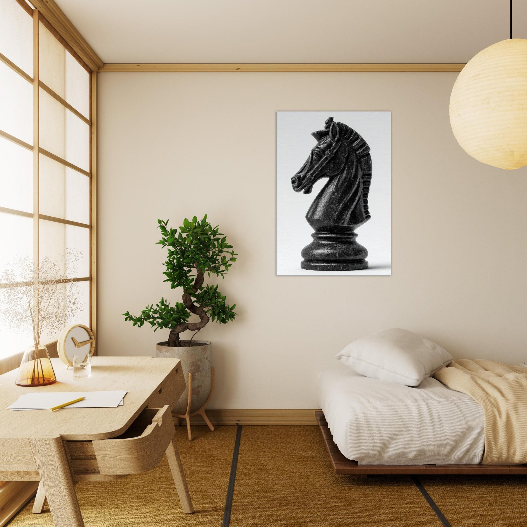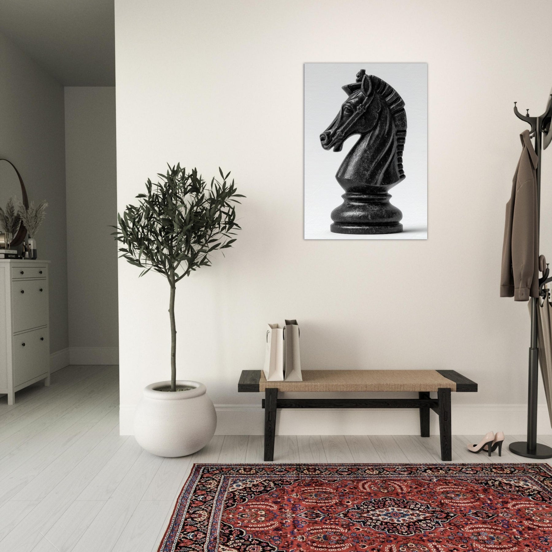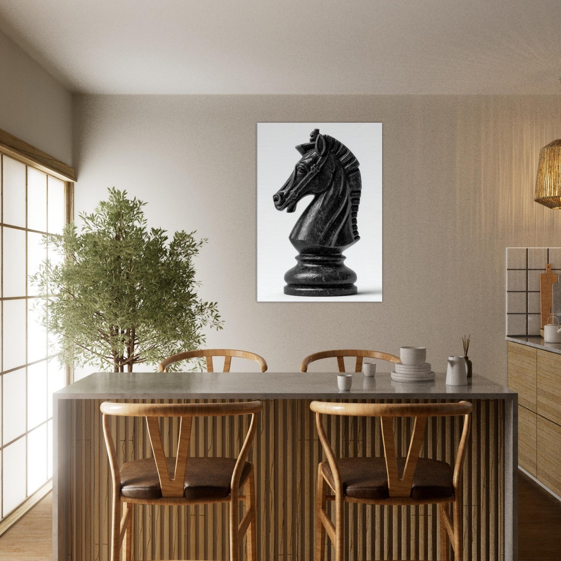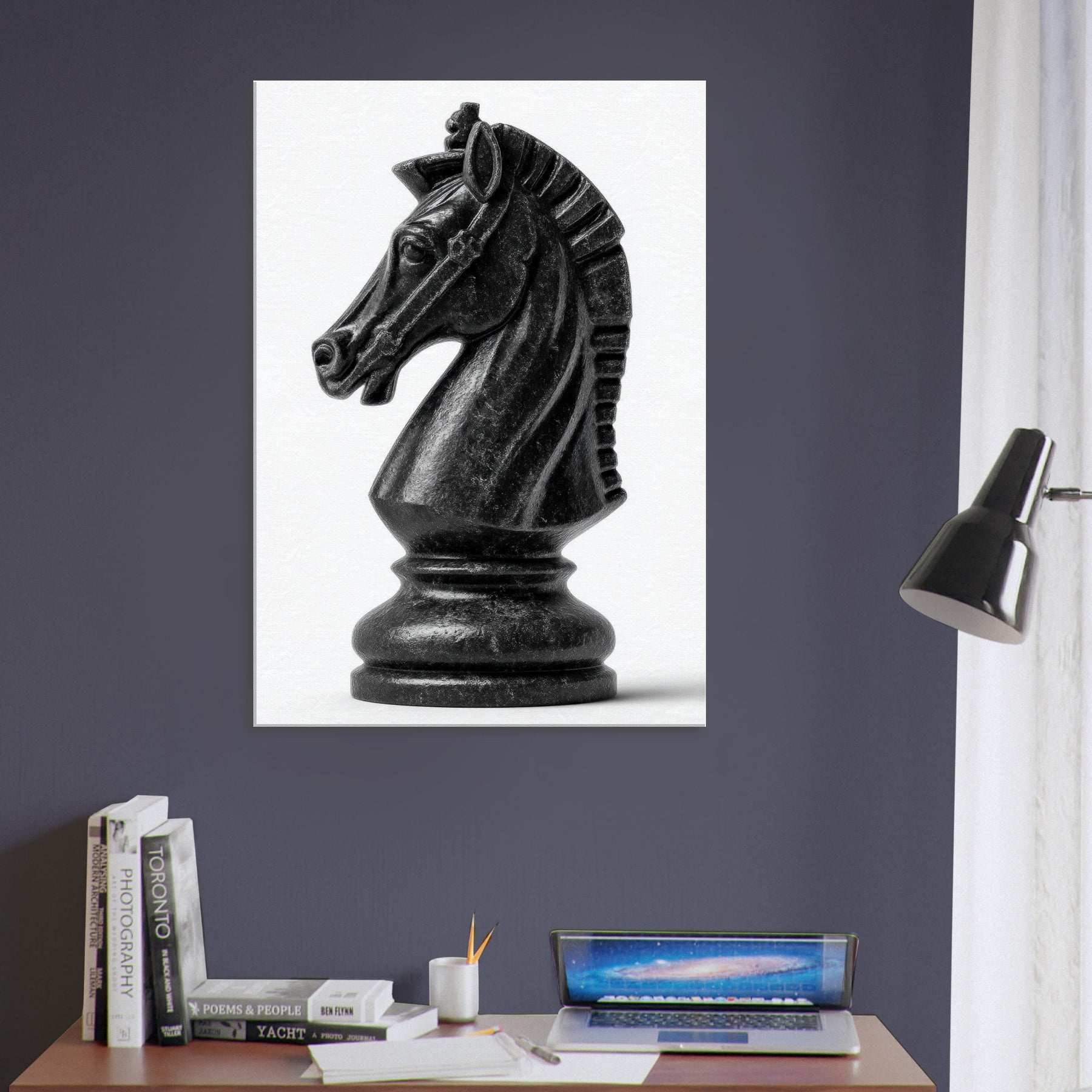 Embrace the commanding presence of the Chess Knight in stark black and white. This print feels carved from a timeless sculpture sharp edges, velvety shadows, and a poised silhouette that commands attention.