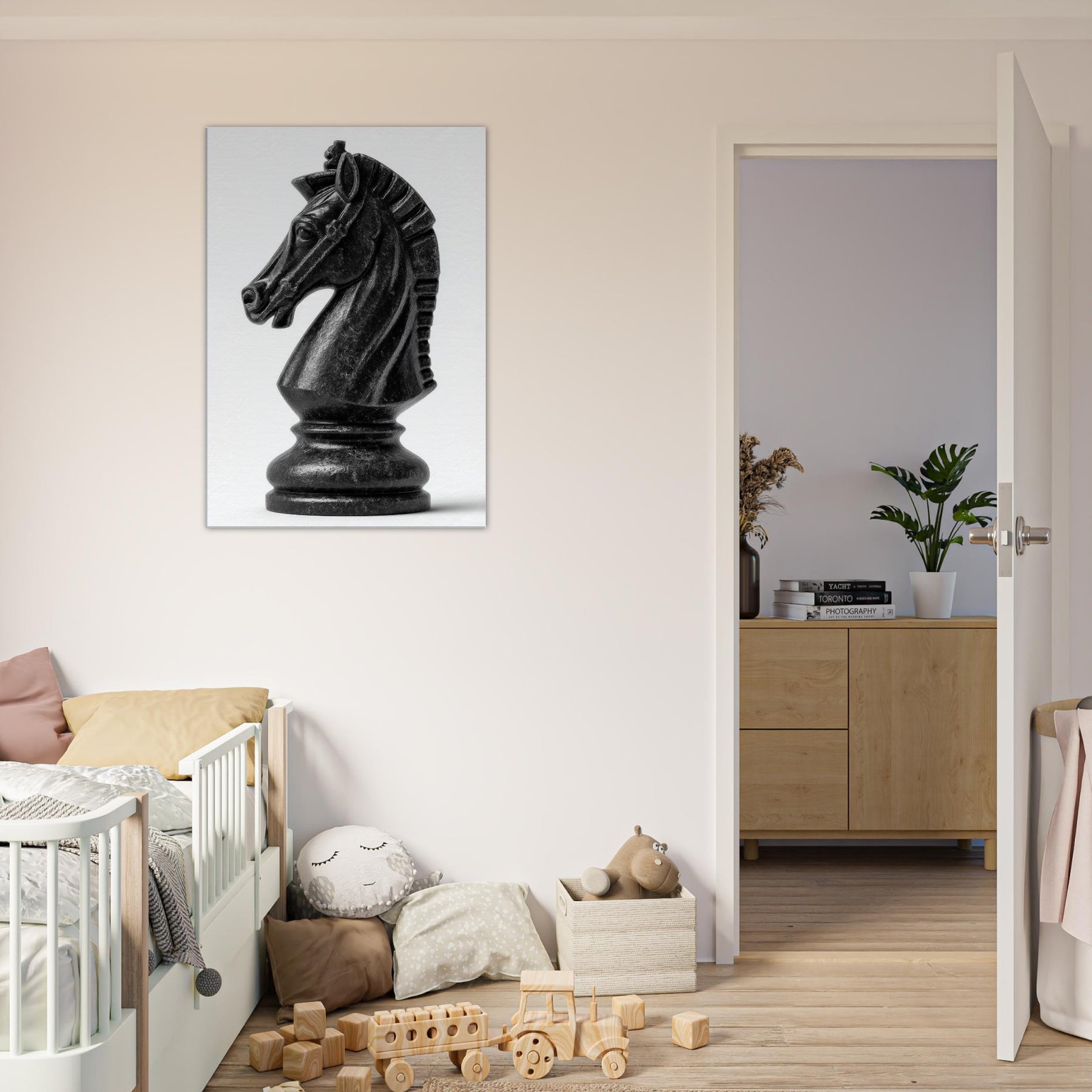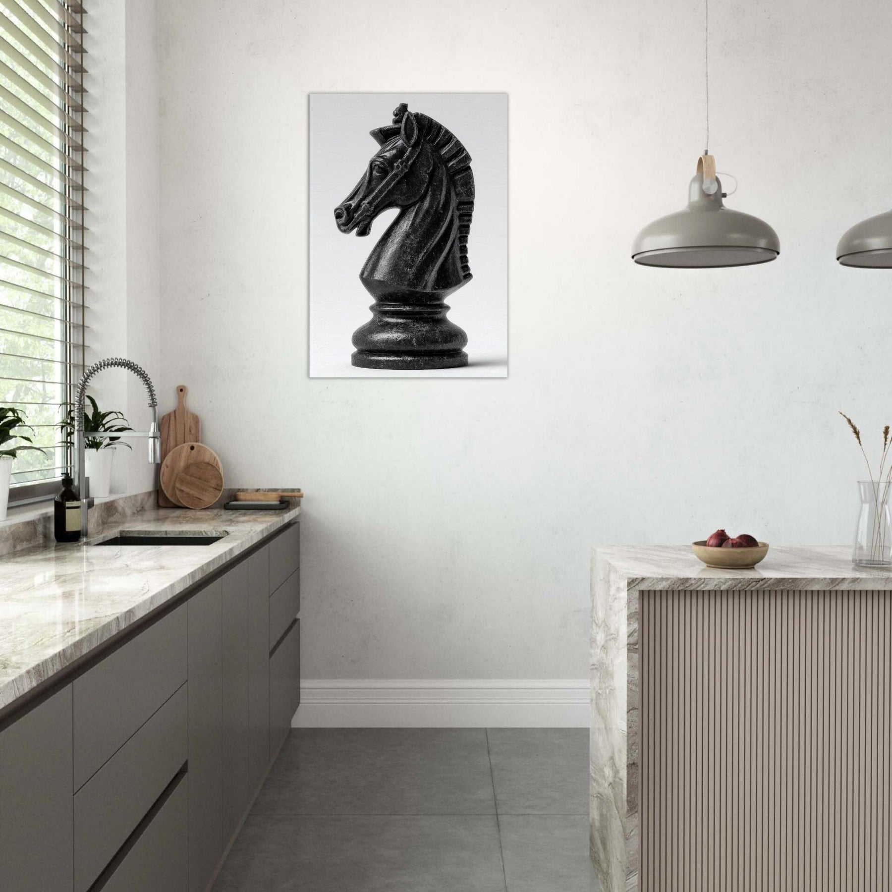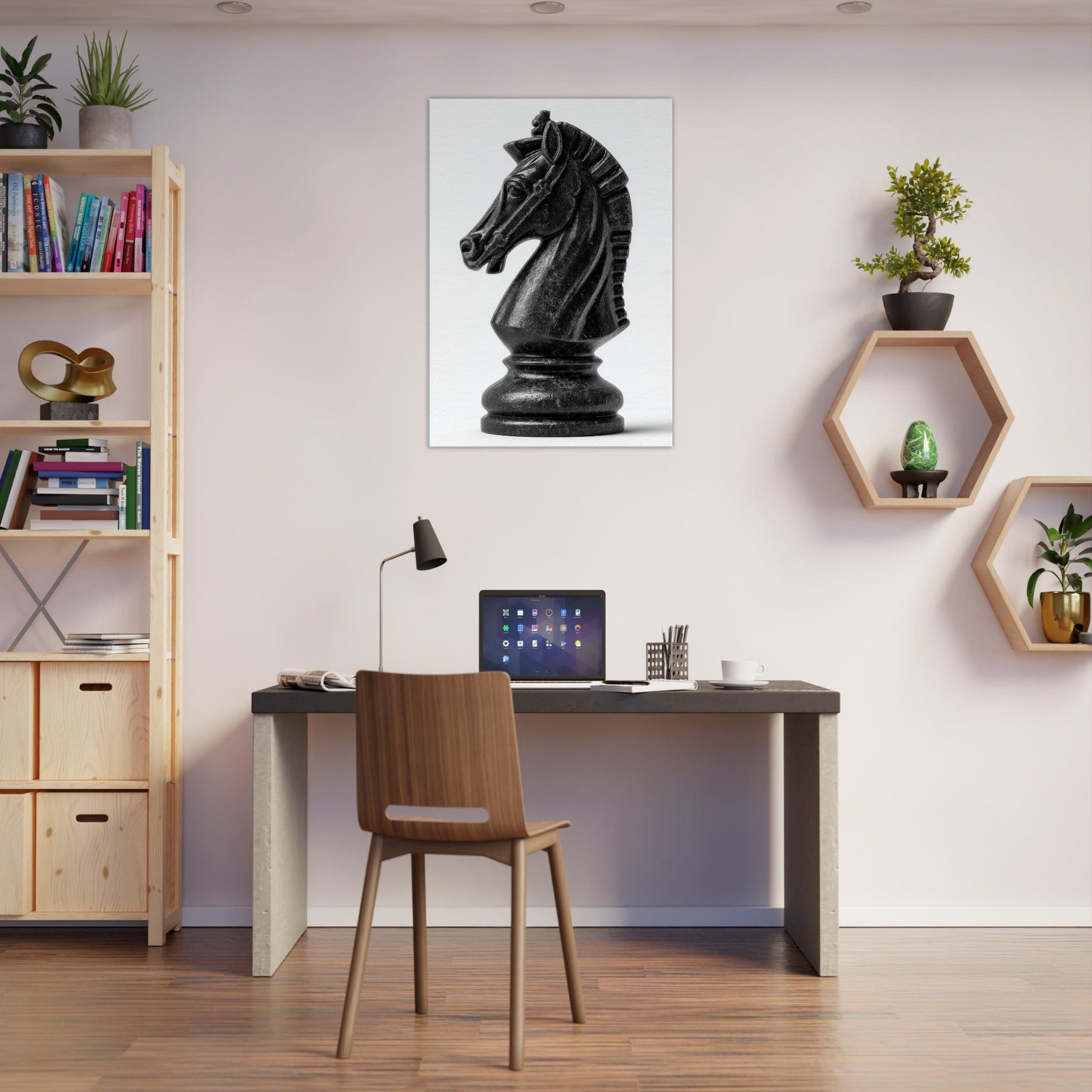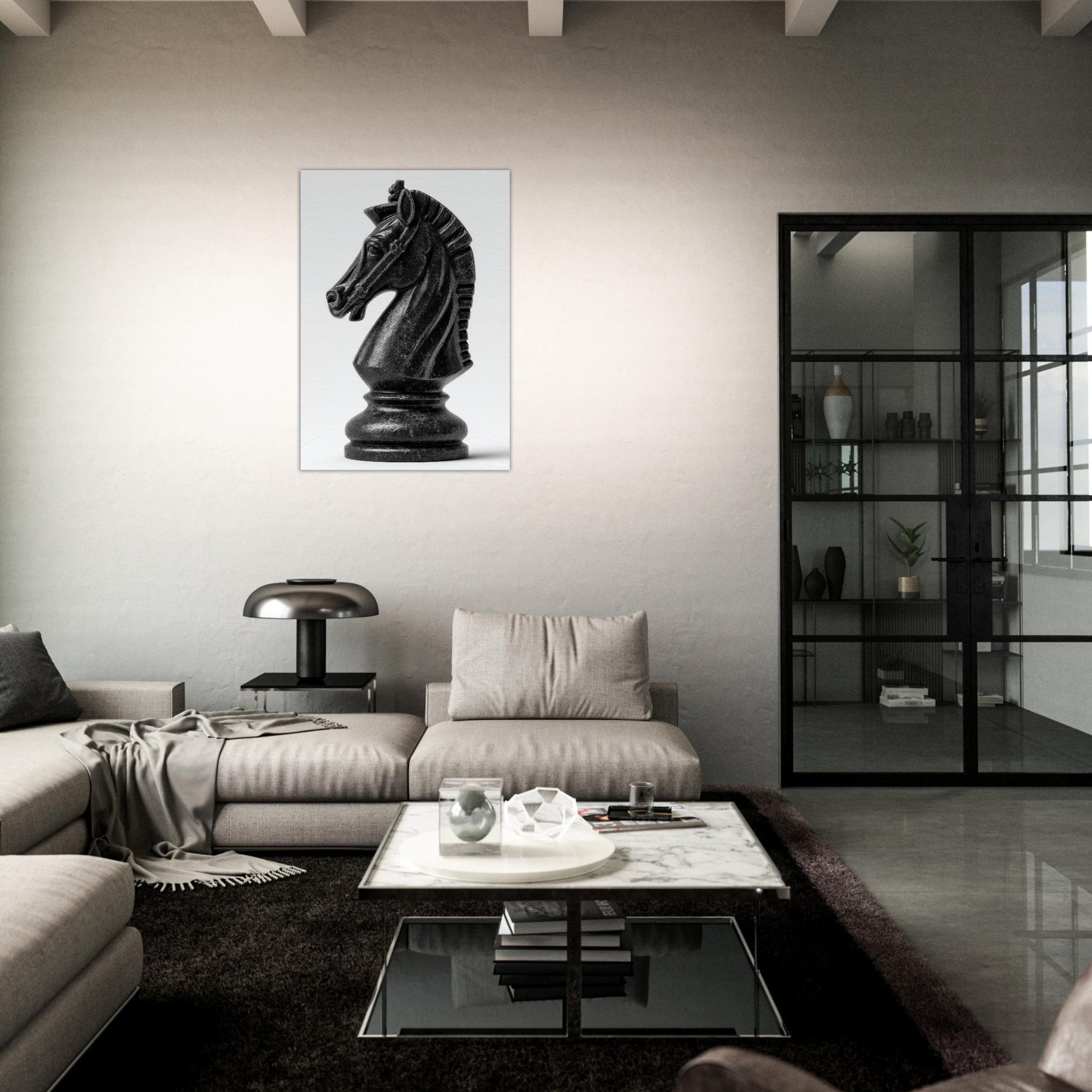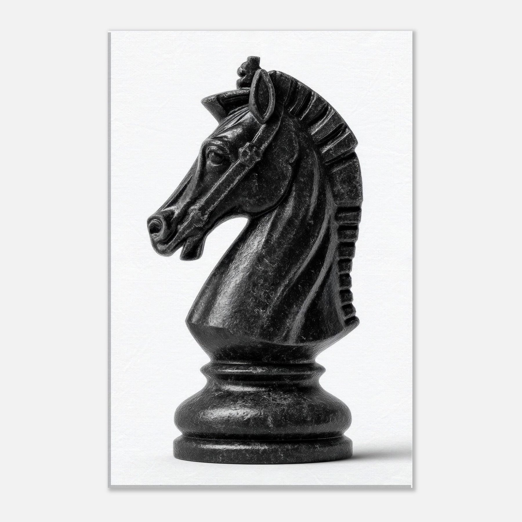 Embrace the commanding presence of the Chess Knight in stark black and white. This print feels carved from a timeless sculpture sharp edges, velvety shadows, and a poised silhouette that commands attention.