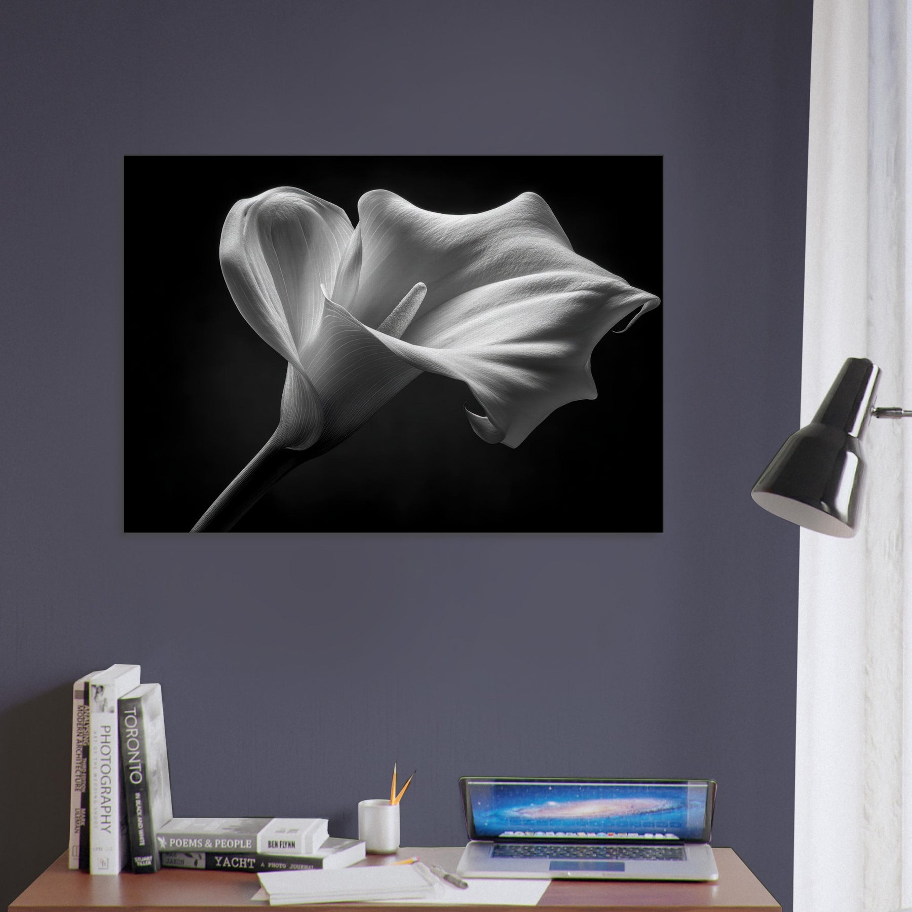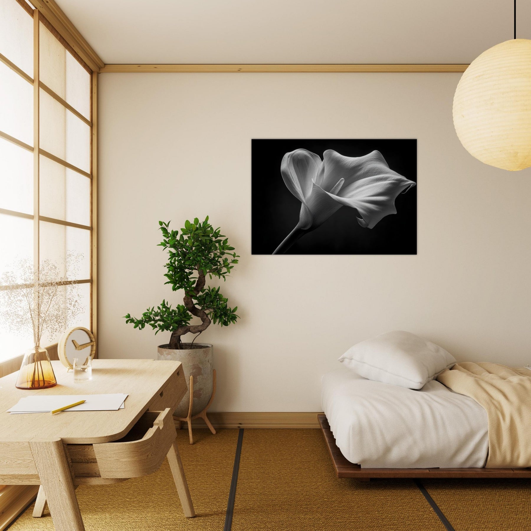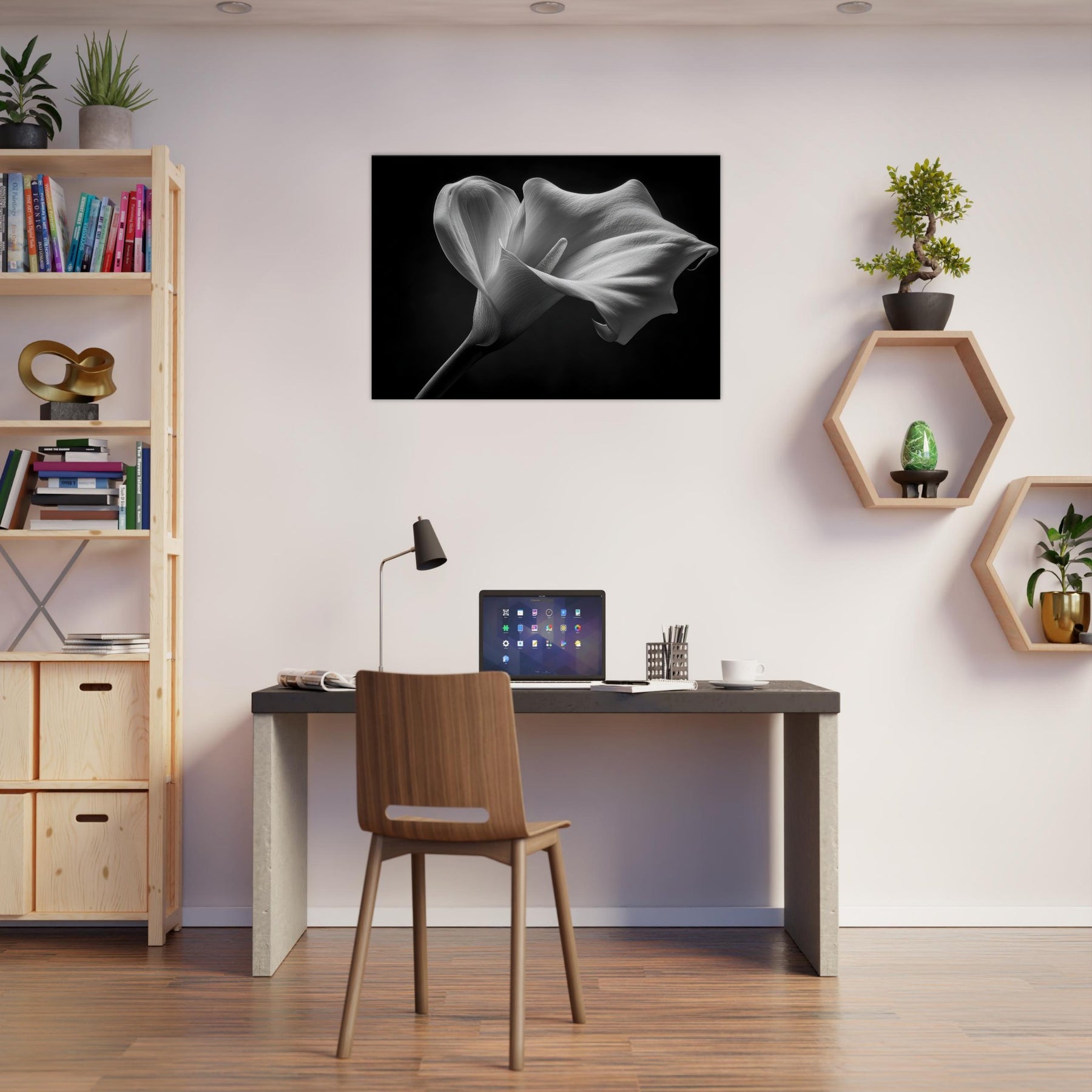 It invites calm focus to a living room or study, turning walls into a gallery of quiet sophistication. The piece pairs beautifully with minimalist textures, leather, or wood, adding depth and atmosphere without overpowering the space, and inviting reflection whenever you pause to breathe and listen.