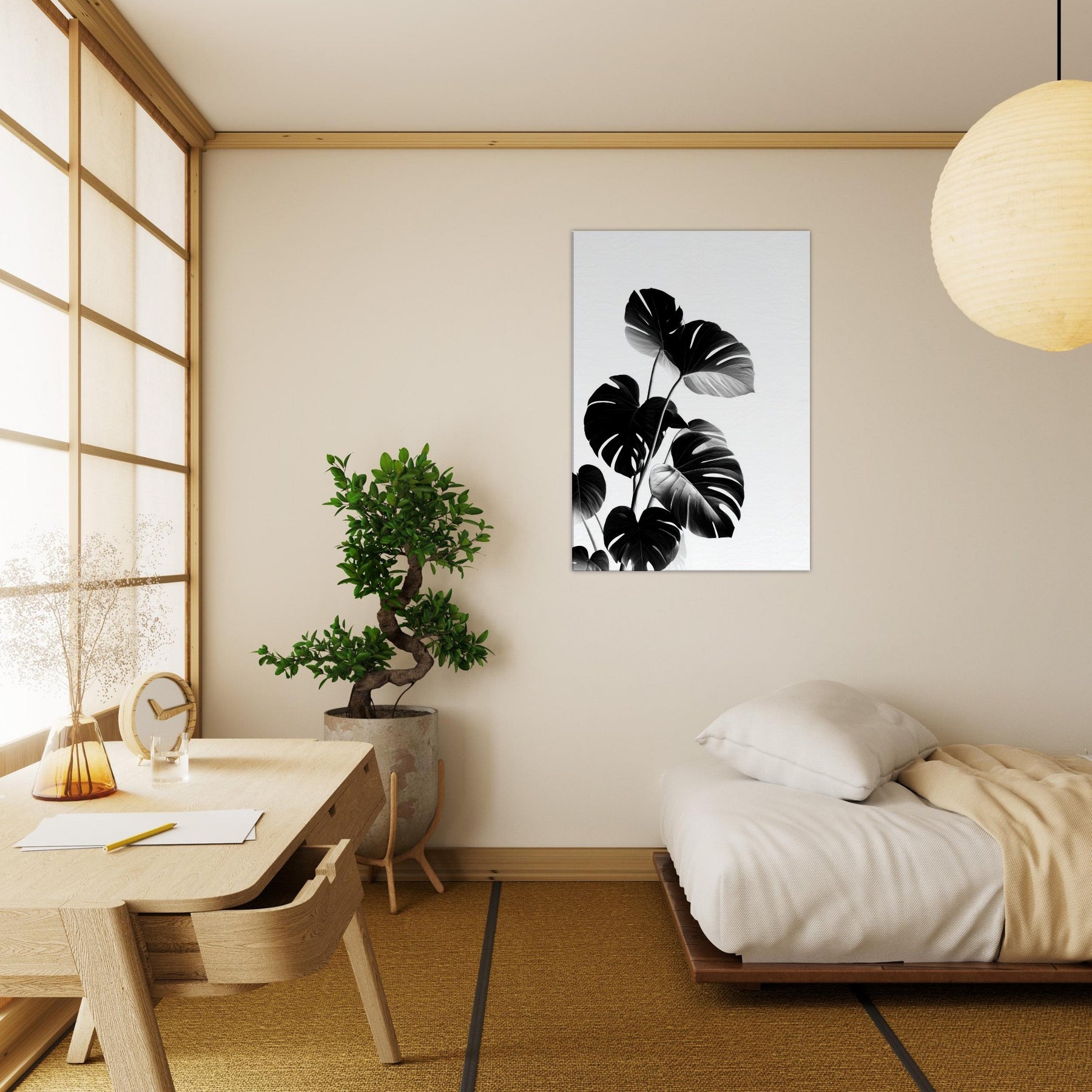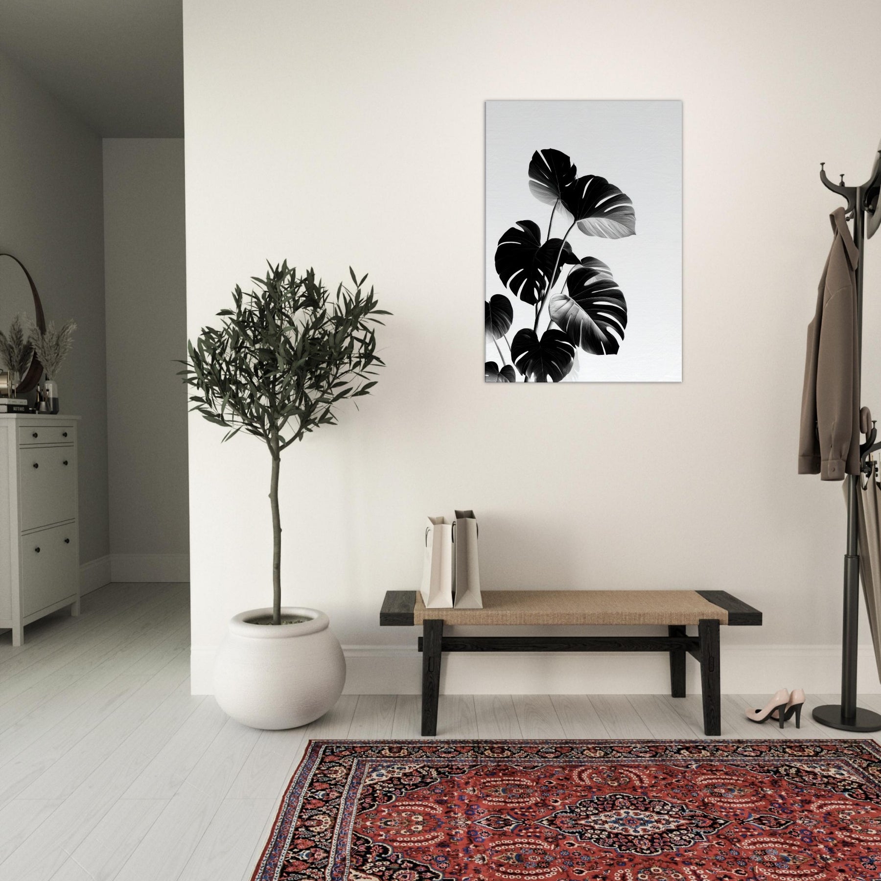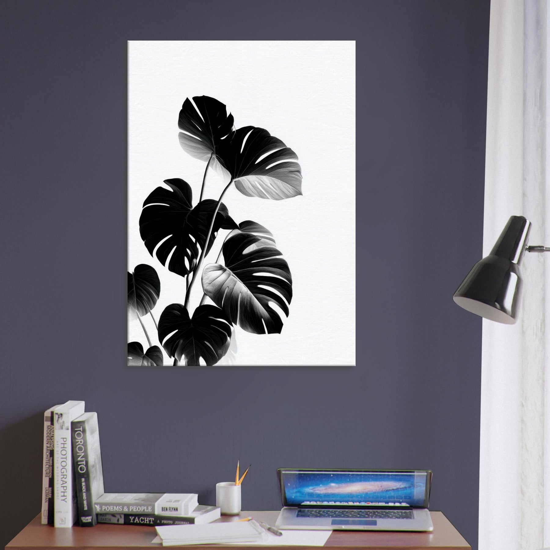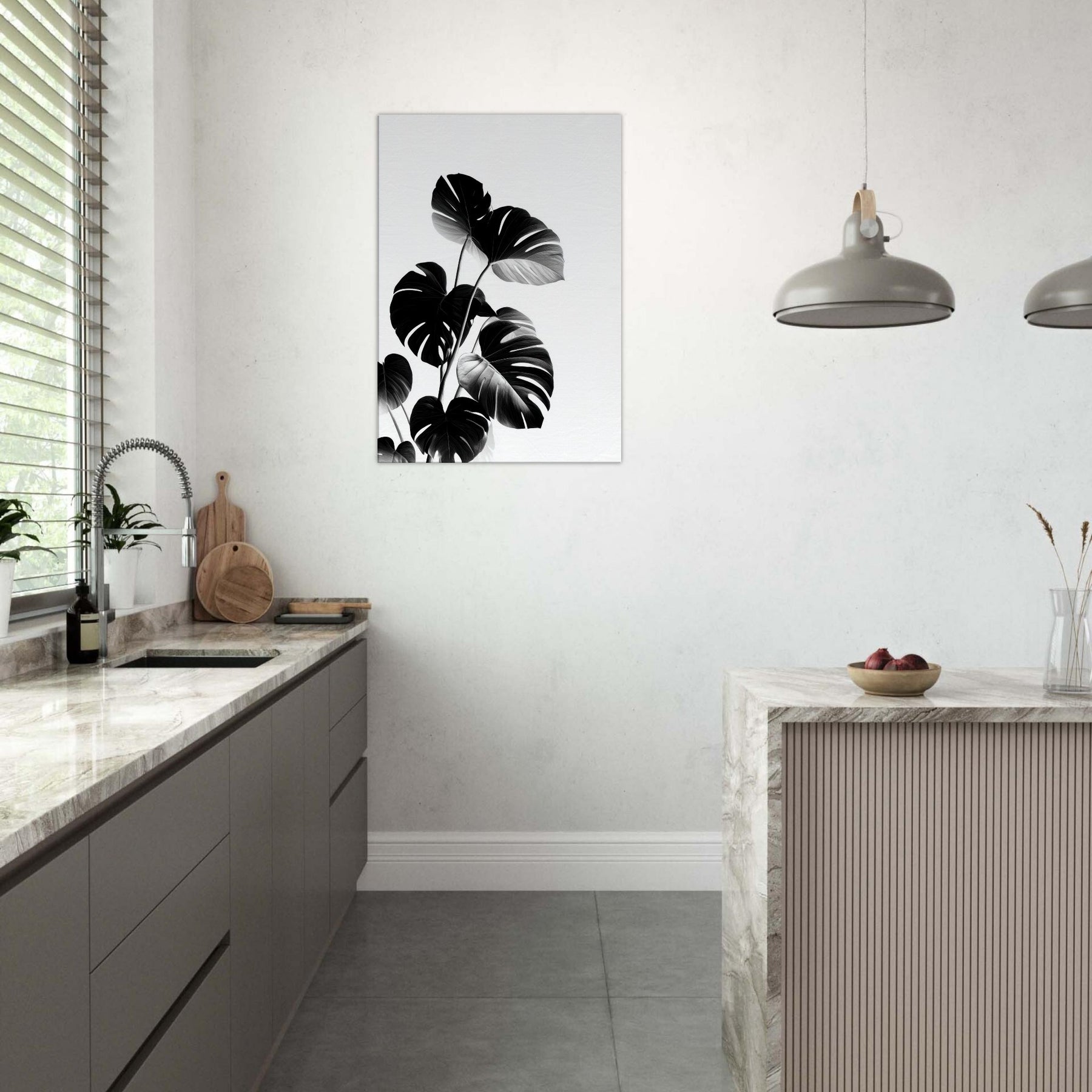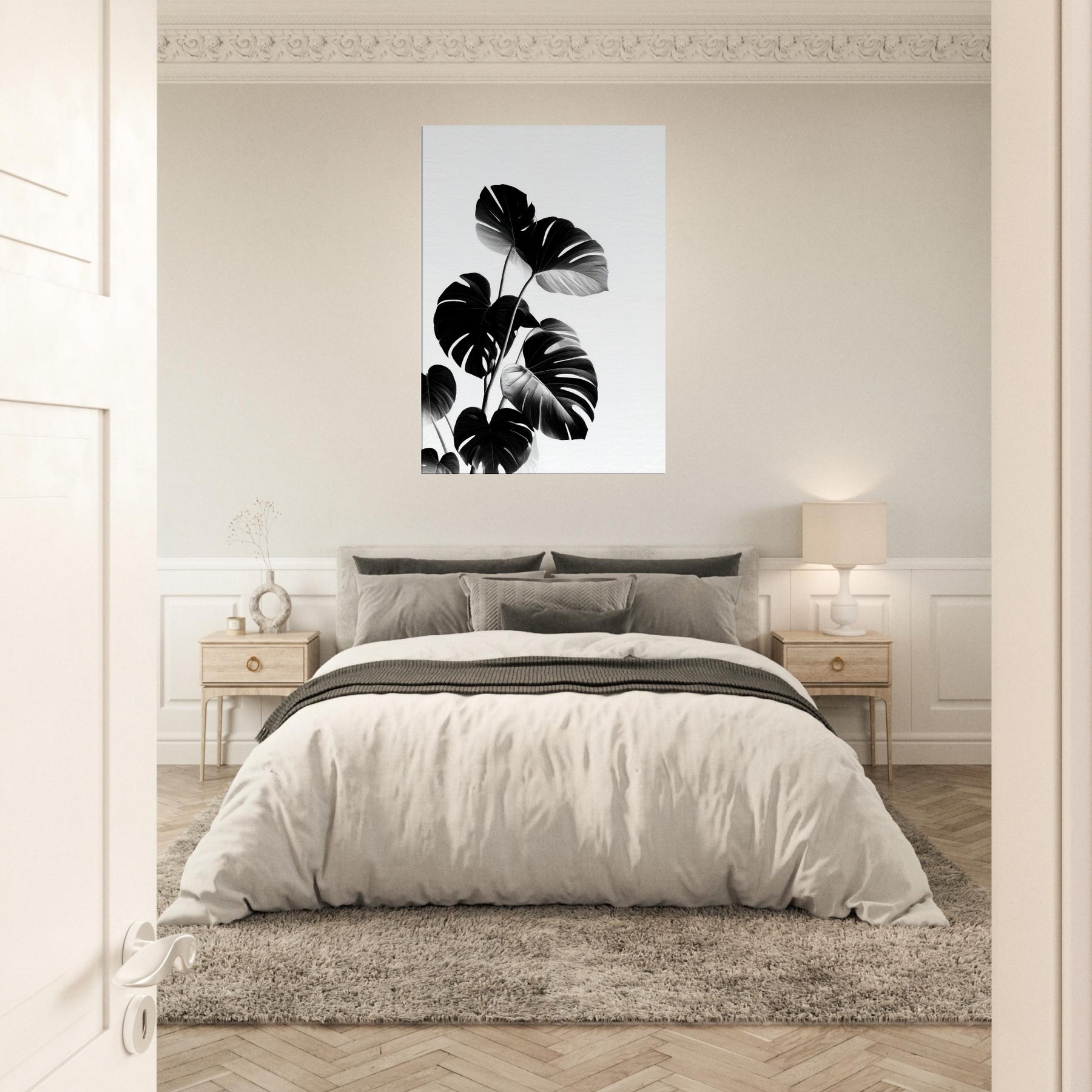 Monstera takes center stage in this poetic black and white study, turning nature into architectural motion. The bold leaves rise in graceful arcs, their sculptural veins catching light and shadow with a quiet drama.