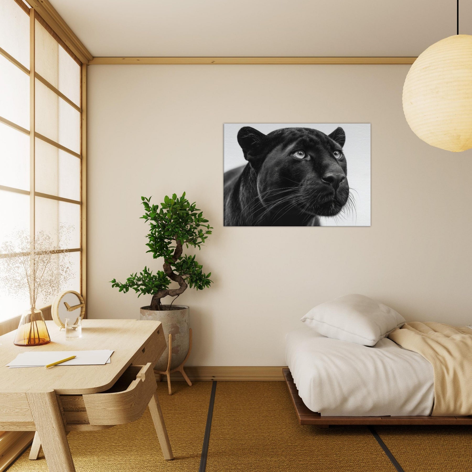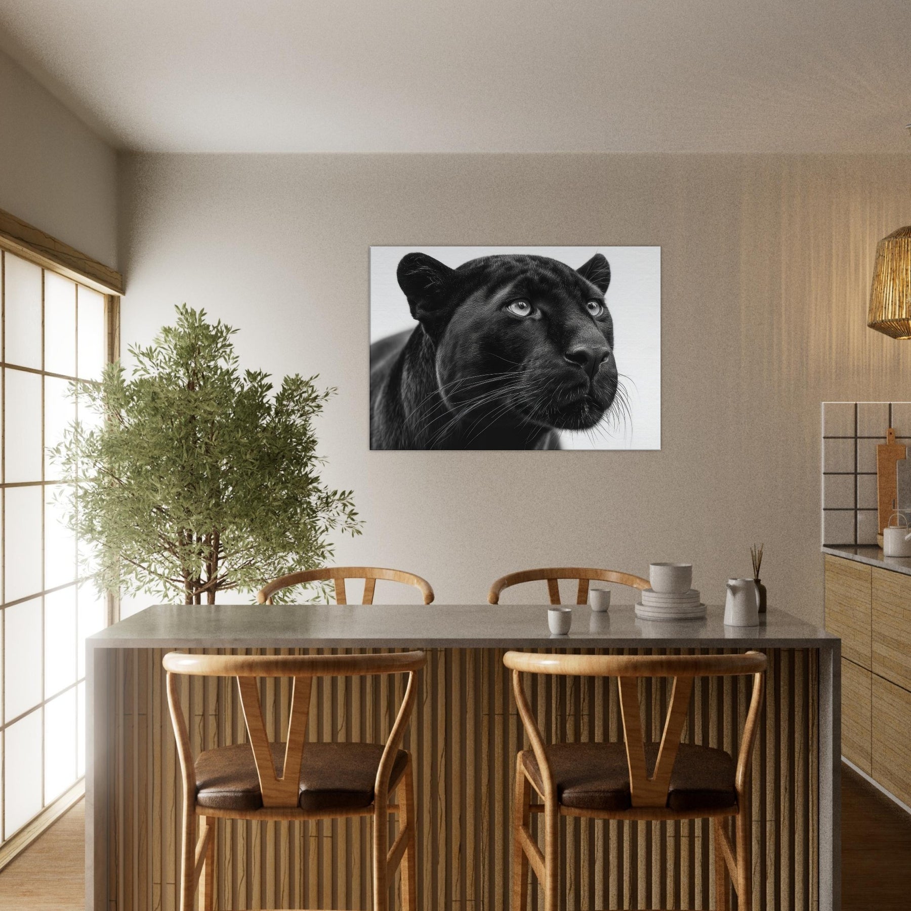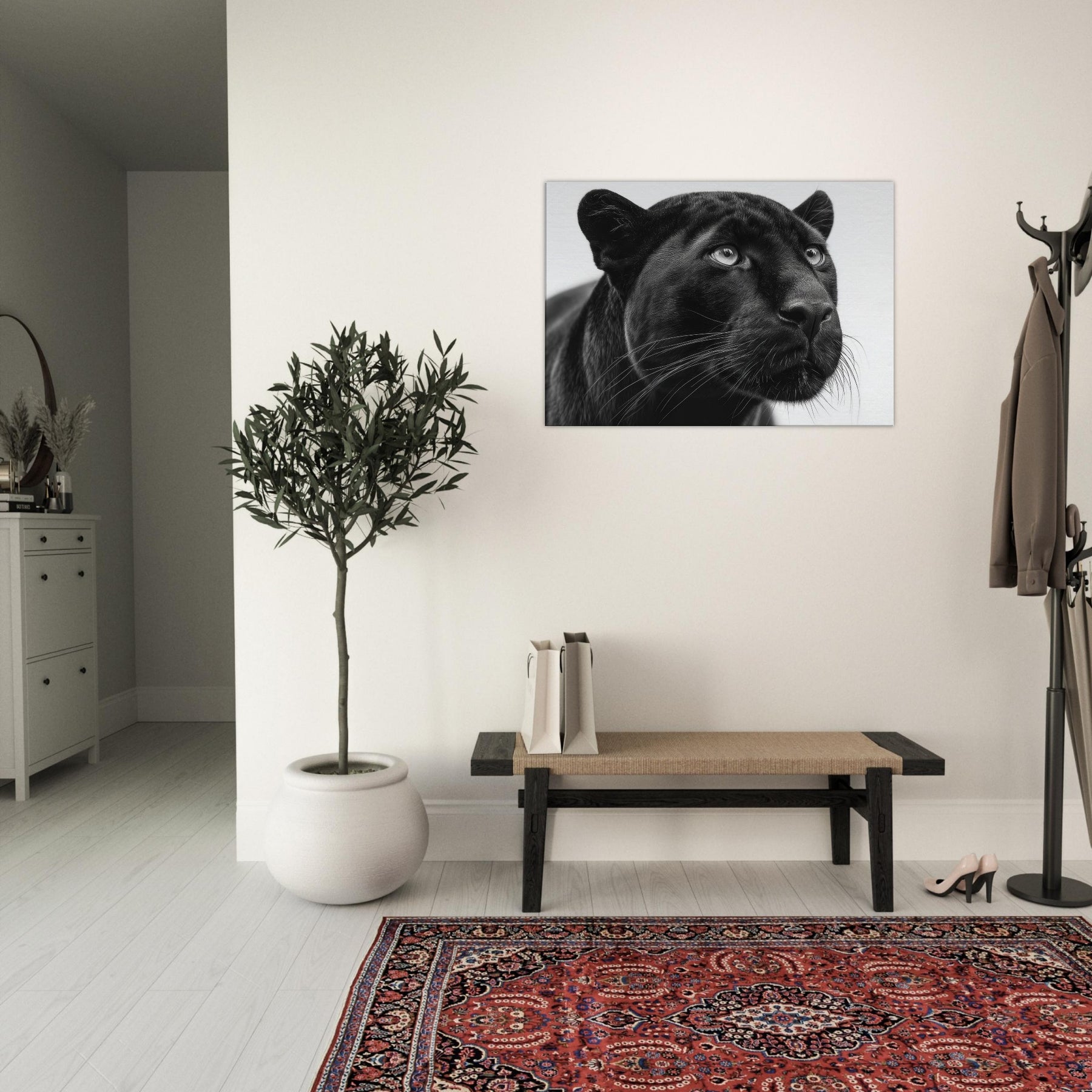 Immerse your space in the poised stillness of a Panther rendered in pure black and white. The image captures a sleek, velvet lit presence, every whisker and contour etched with quiet intention. That high contrast gaze becomes a focal point, inviting calm and contemplation, whether hung above a sofa or near a study nook. The piece adds depth and drama without shouting, echoing moonlit nights and urban minimalism. It elevates a living room with a refined, timeless atmosphere.
