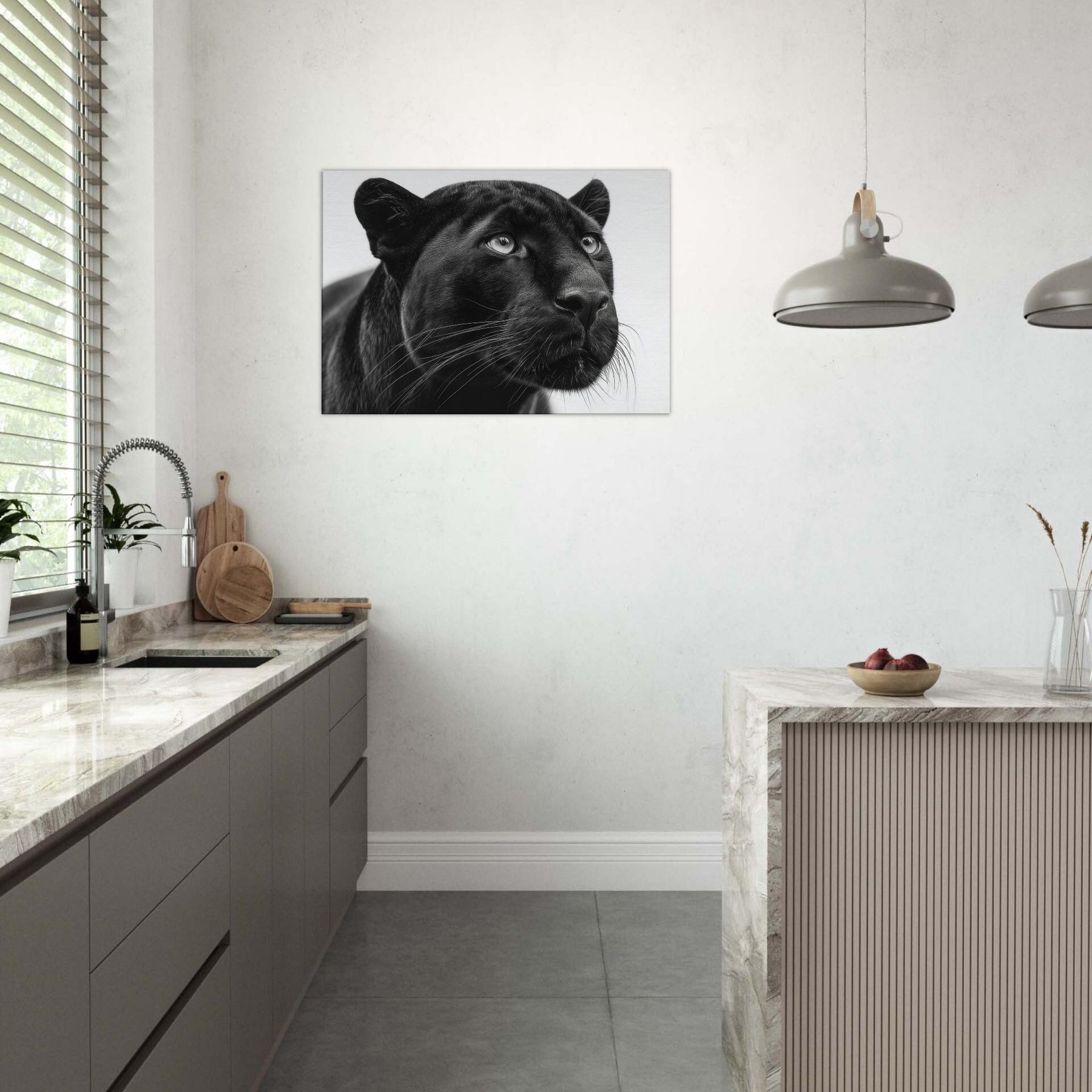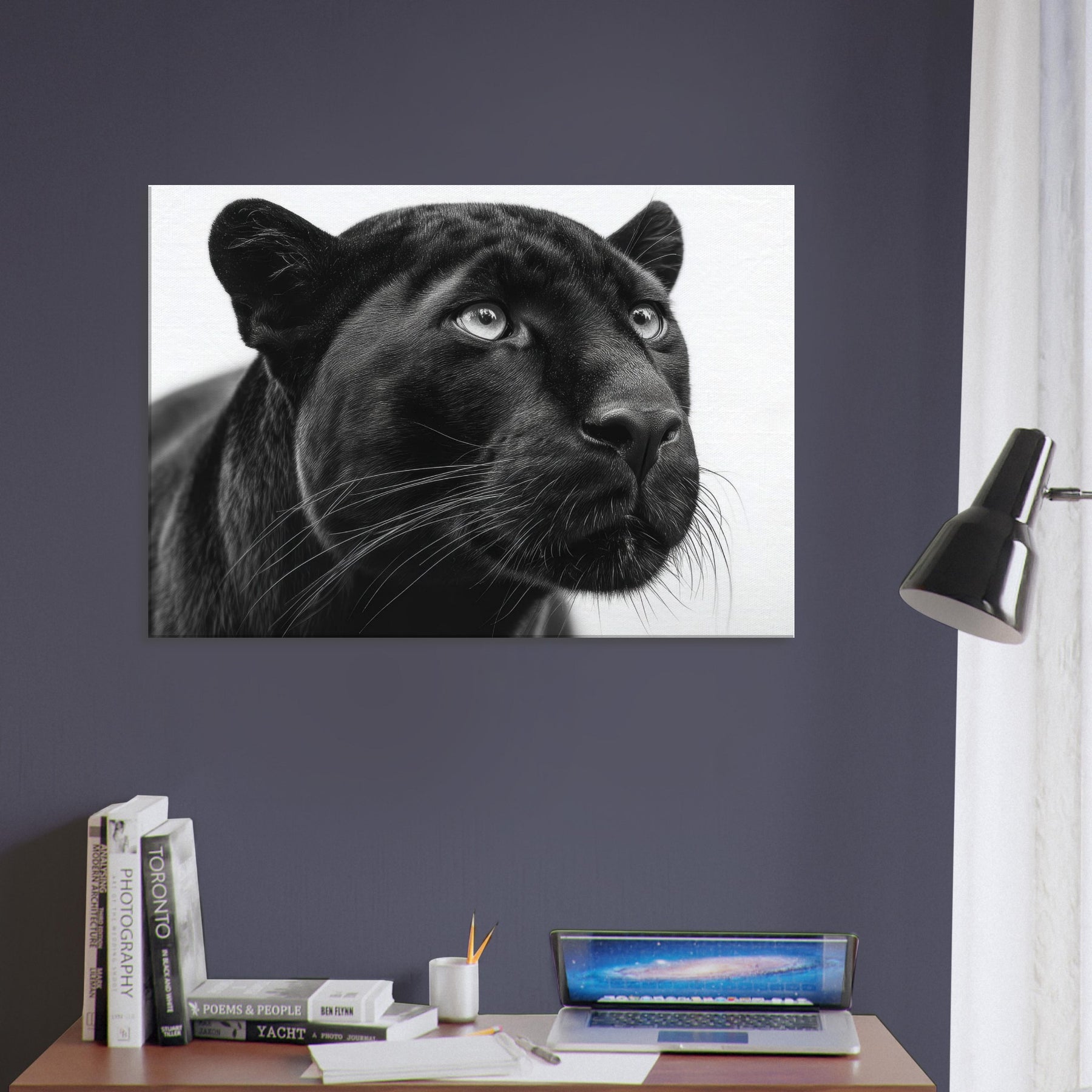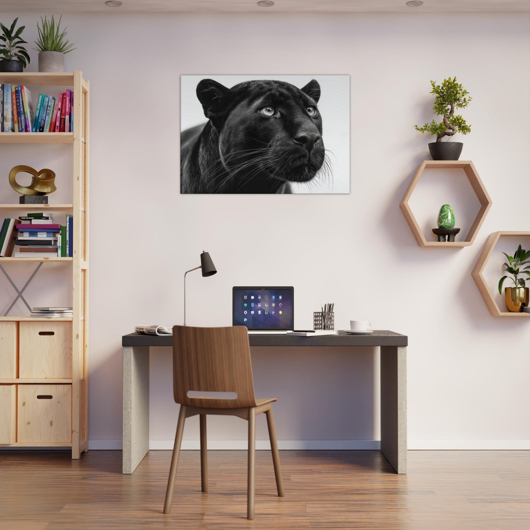 Immerse your space in the poised stillness of a Panther rendered in pure black and white. The image captures a sleek, velvet lit presence, every whisker and contour etched with quiet intention. That high contrast gaze becomes a focal point, inviting calm and contemplation, whether hung above a sofa or near a study nook. The piece adds depth and drama without shouting, echoing moonlit nights and urban minimalism. It elevates a living room with a refined, timeless atmosphere.