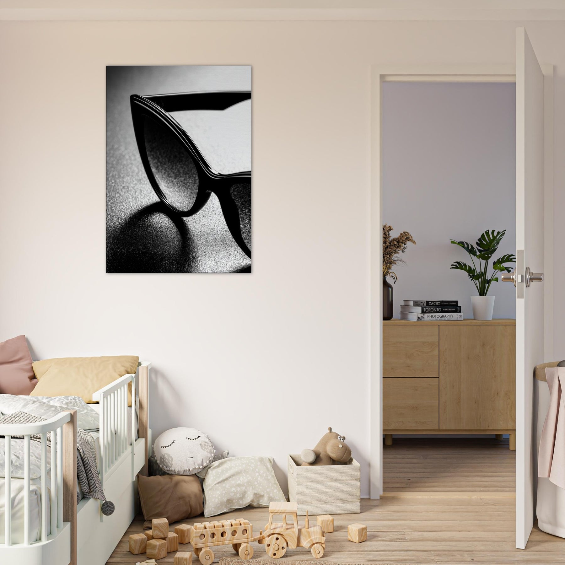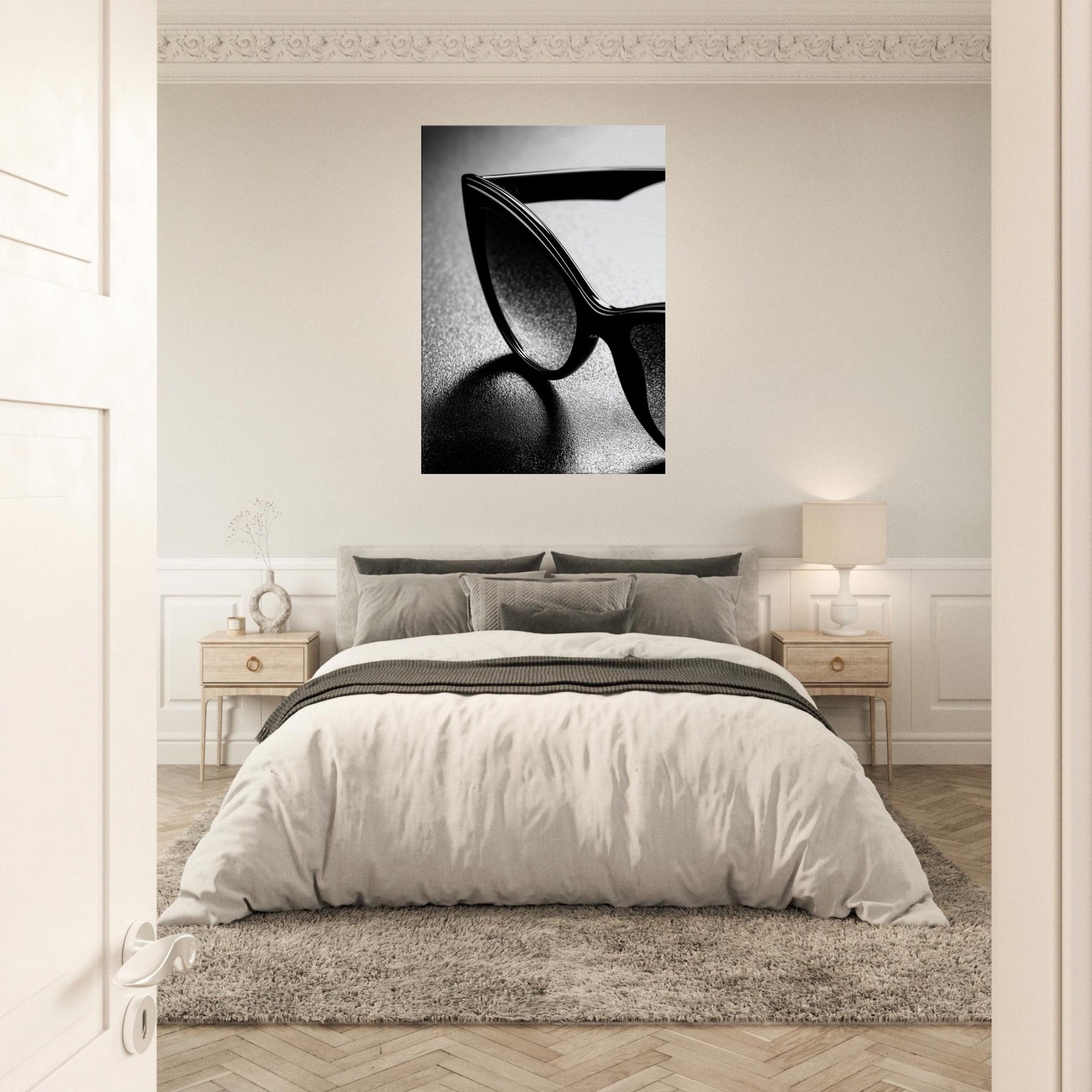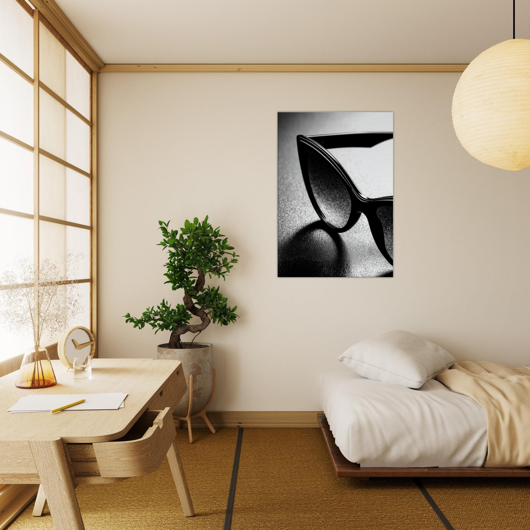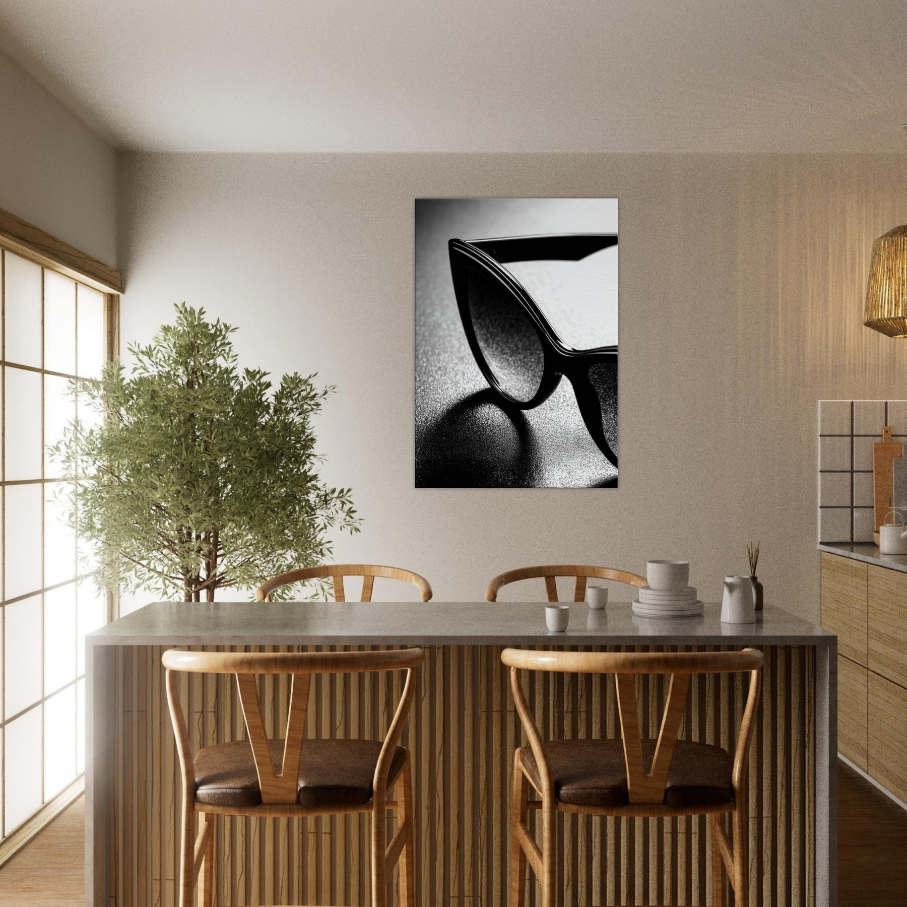An icon in monochrome, Sunglasses become a whisper of attitude and breath in a quiet room. This black and white study captures a moment when style shifts from detail to silhouette, casting a cool, cinematic mood across walls and fabric alike. The glossy frame and soft shadows invite lingering glances, making the space feel intimate and observant. Perfect for a living room or gallery nook, it pairs with modern furniture to create a refined, timeless atmosphere.