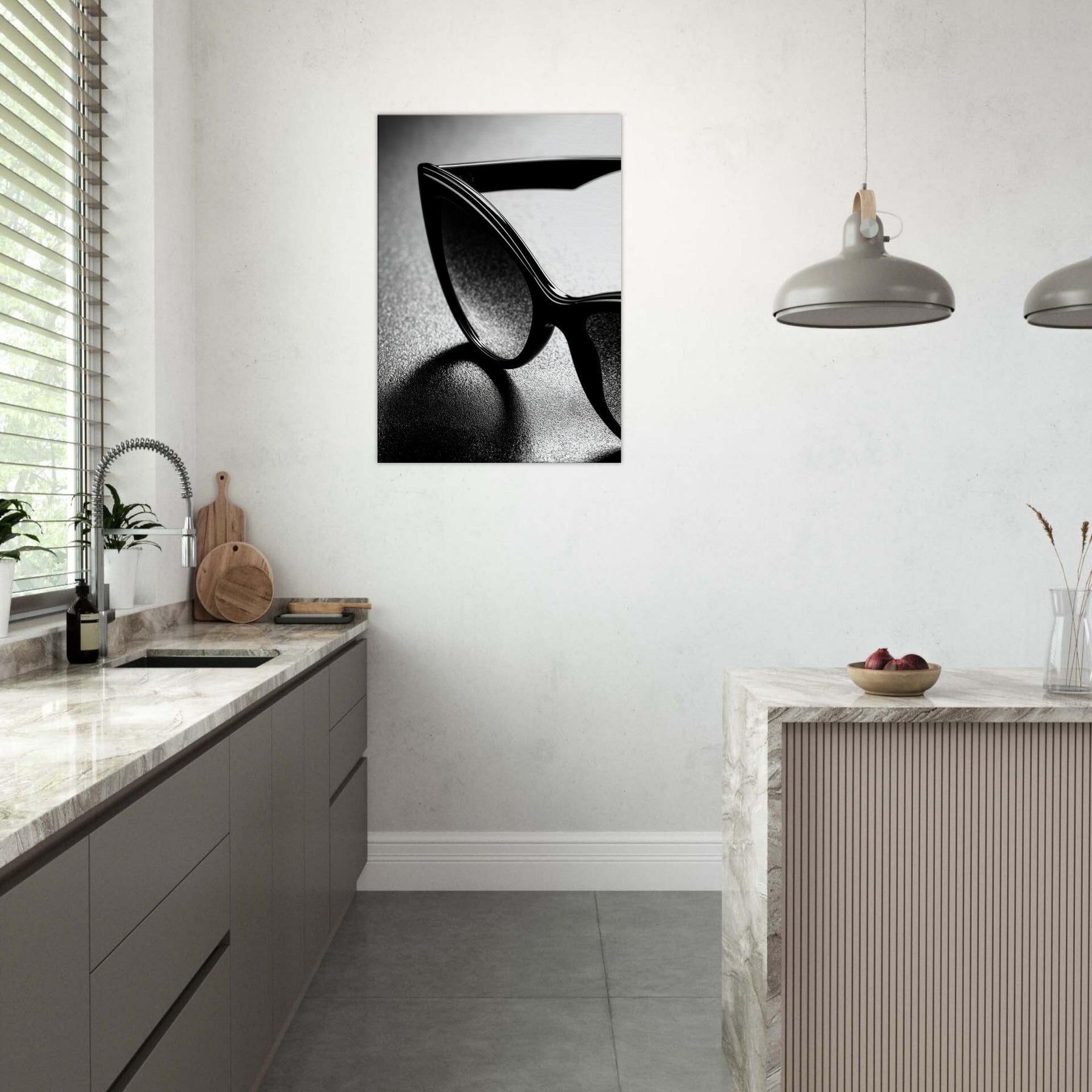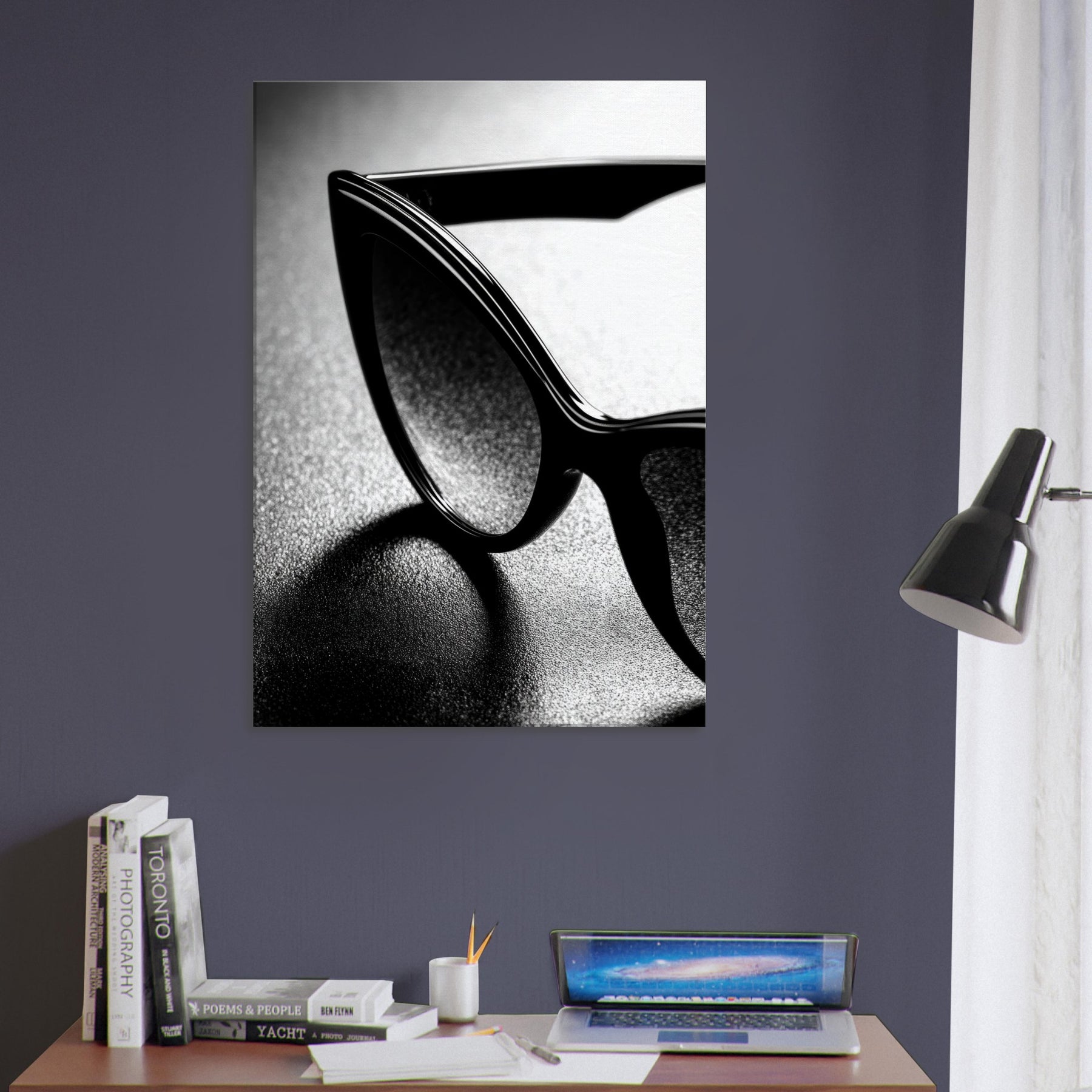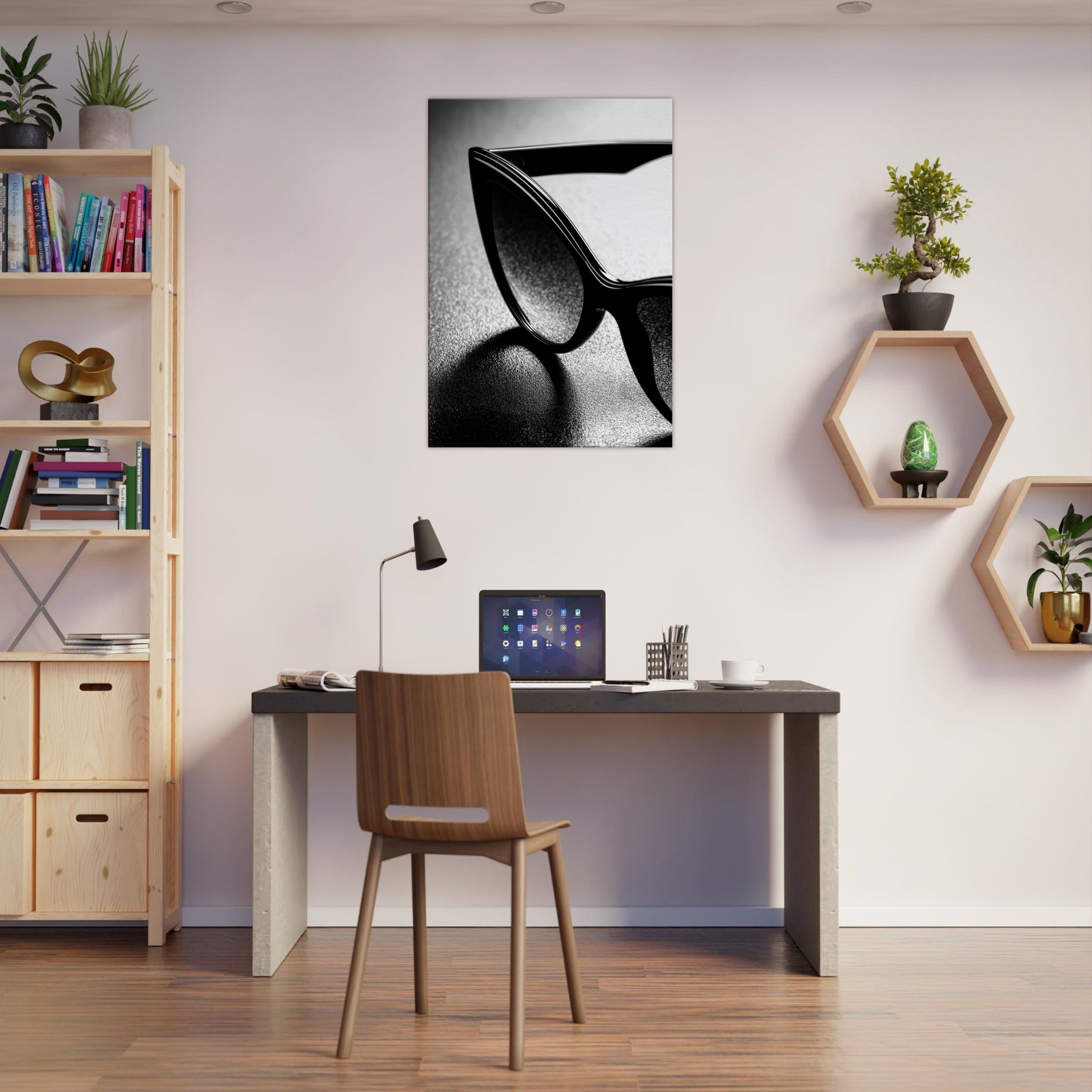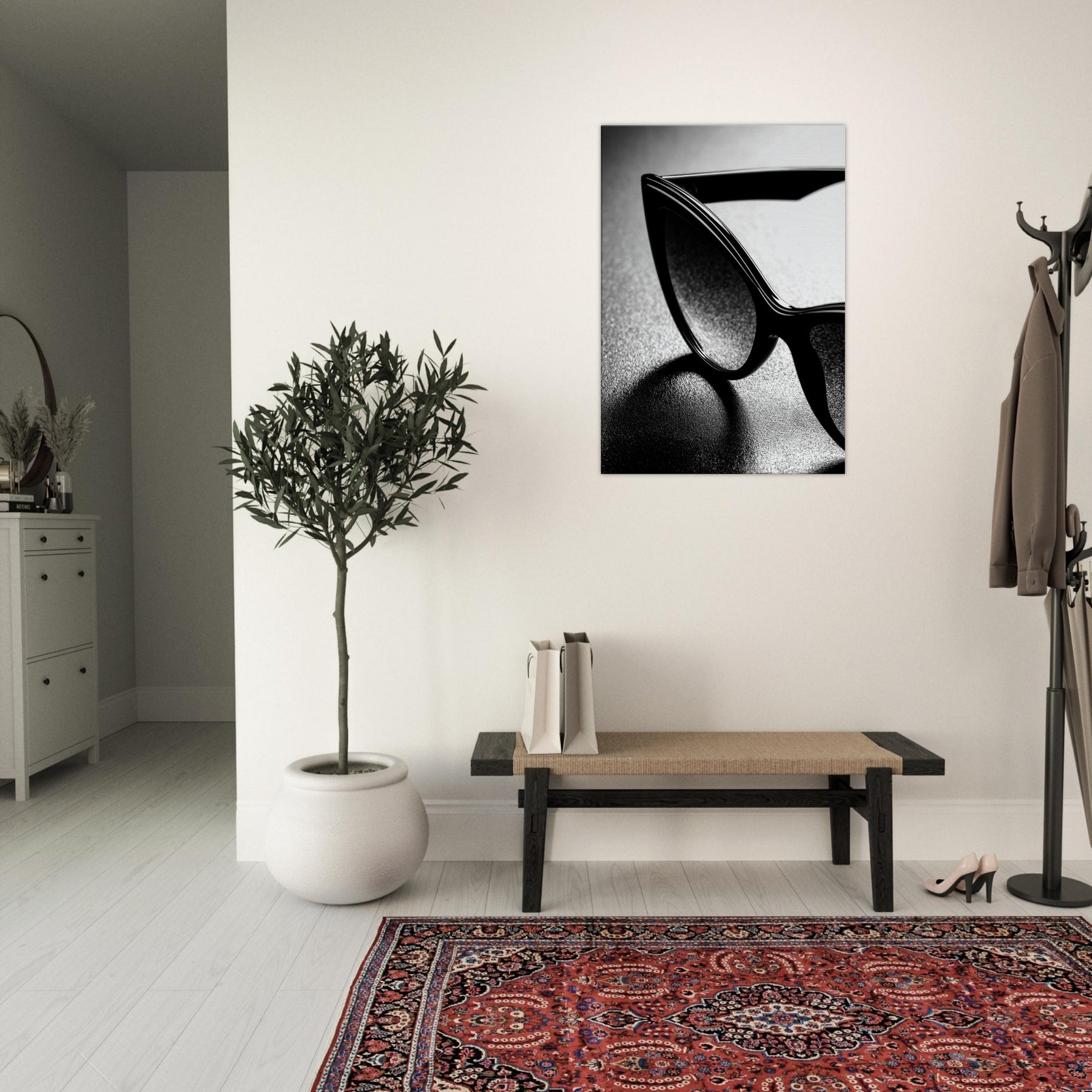 An icon in monochrome, Sunglasses become a whisper of attitude and breath in a quiet room. This black and white study captures a moment when style shifts from detail to silhouette, casting a cool, cinematic mood across walls and fabric alike. The glossy frame and soft shadows invite lingering glances, making the space feel intimate and observant. Perfect for a living room or gallery nook, it pairs with modern furniture to create a refined, timeless atmosphere.
