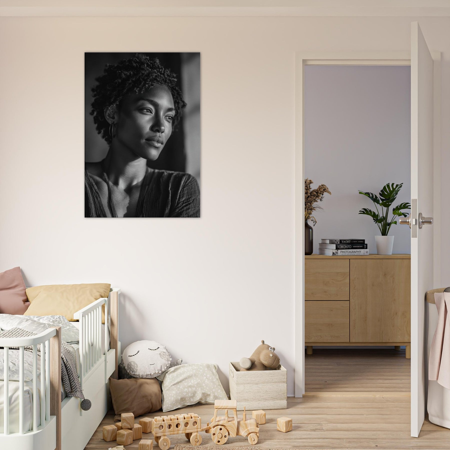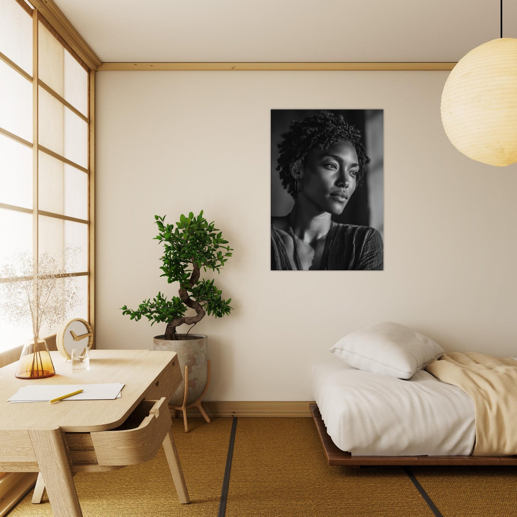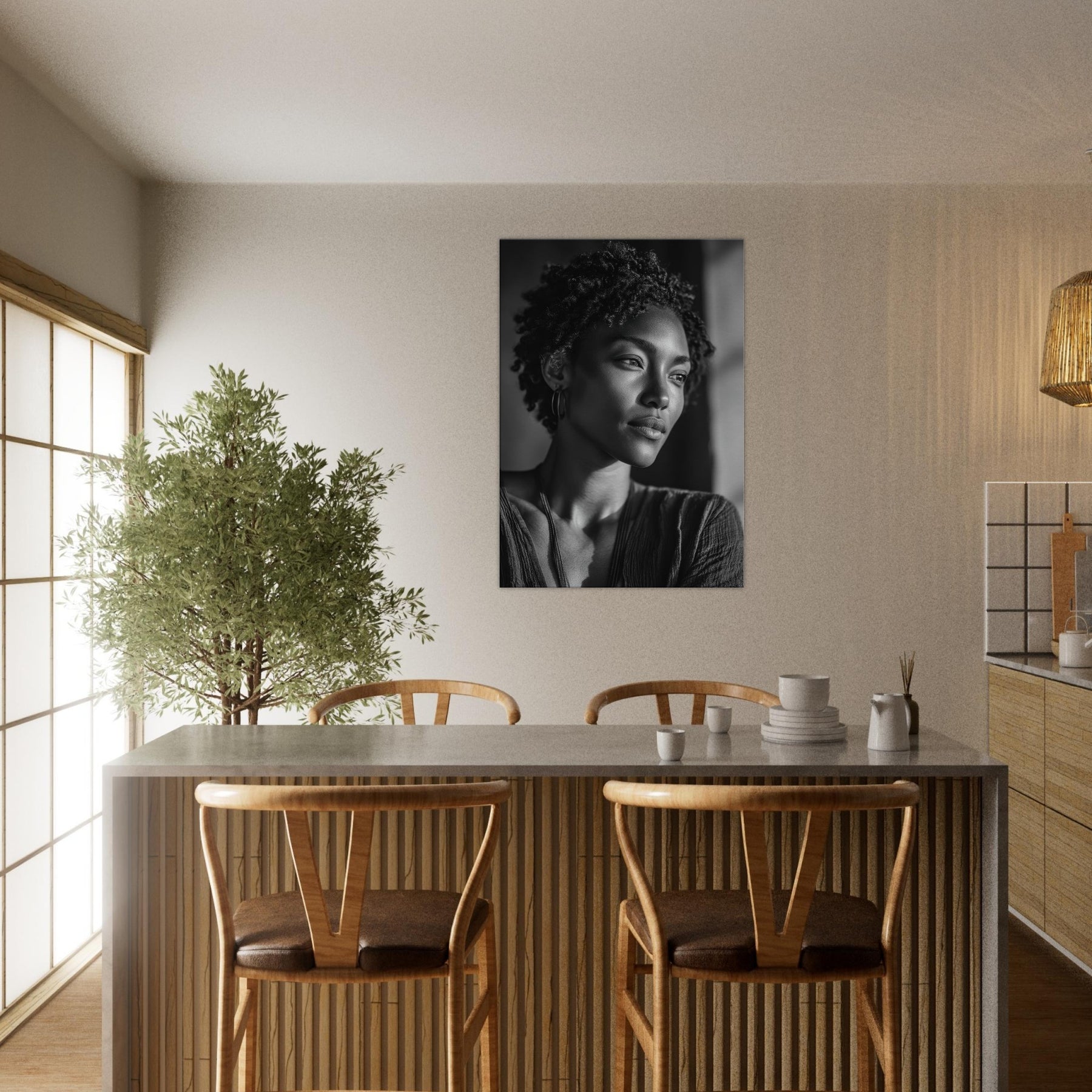 Hang it above a sofa or console to anchor conversation, inviting reflection and a calm, cinematic mood. It evokes quiet mornings and late evenings, turning walls into a canvas of memory and meaning.