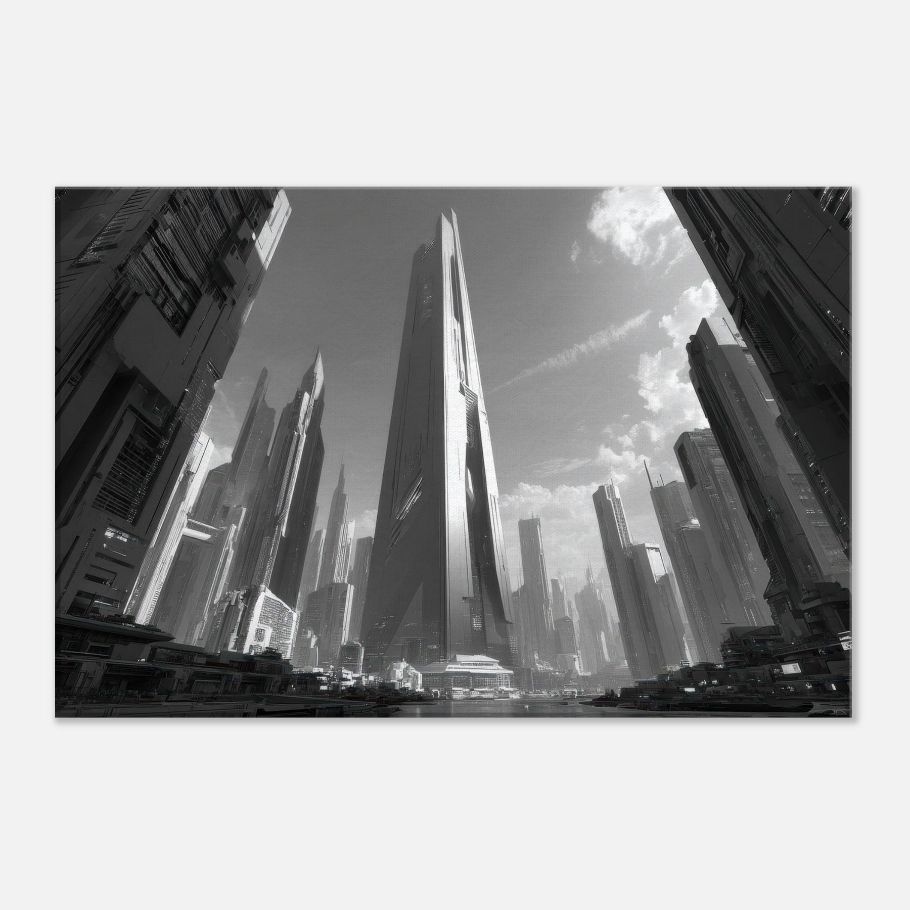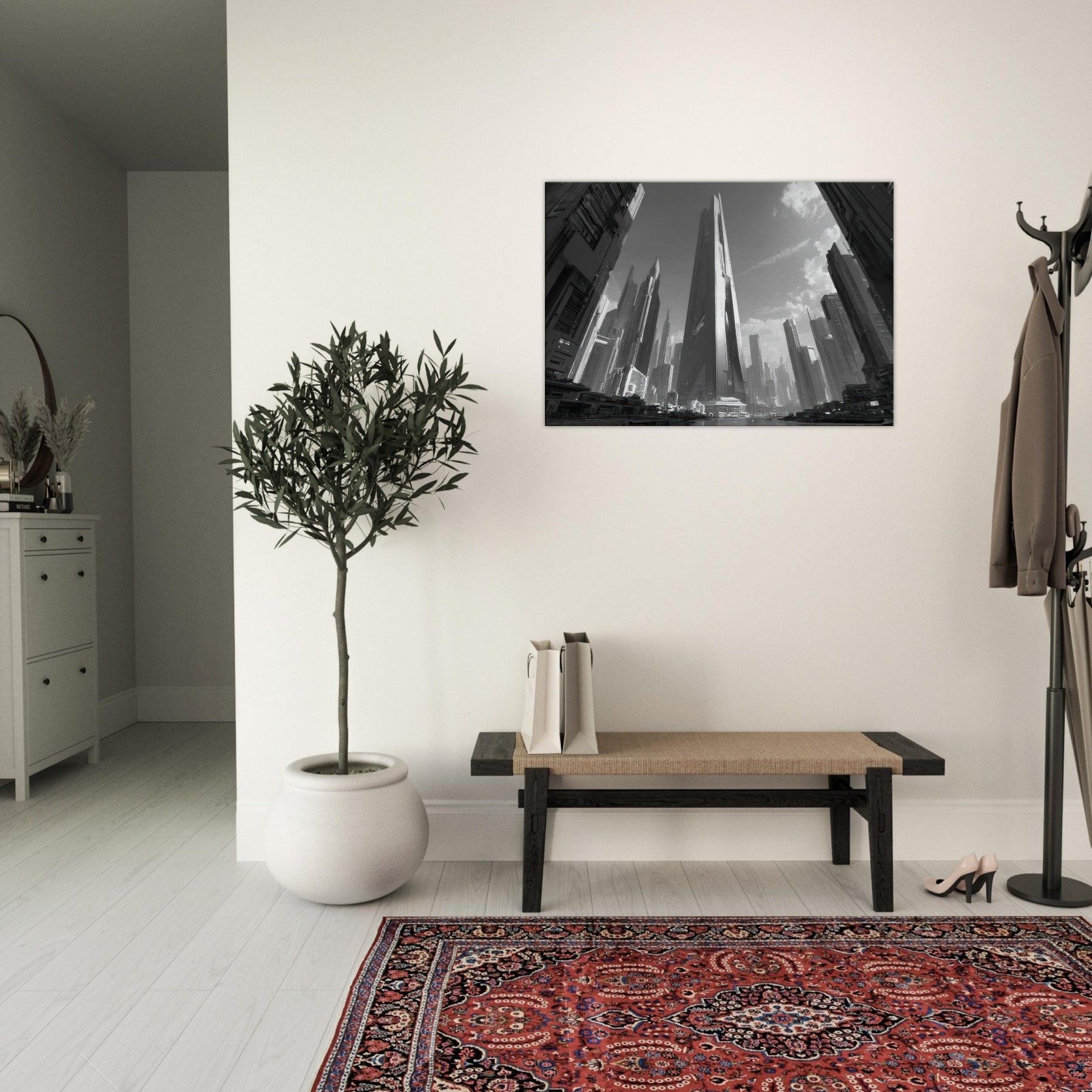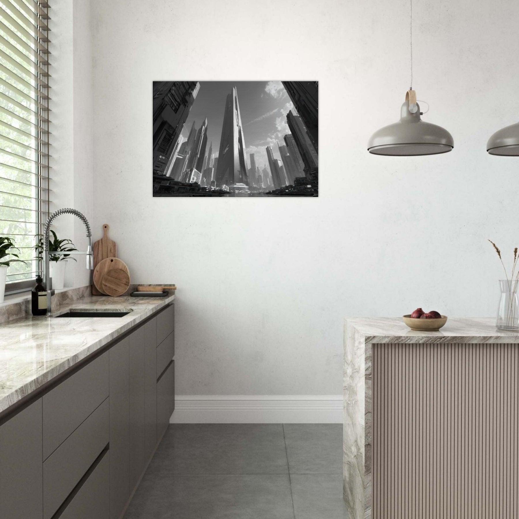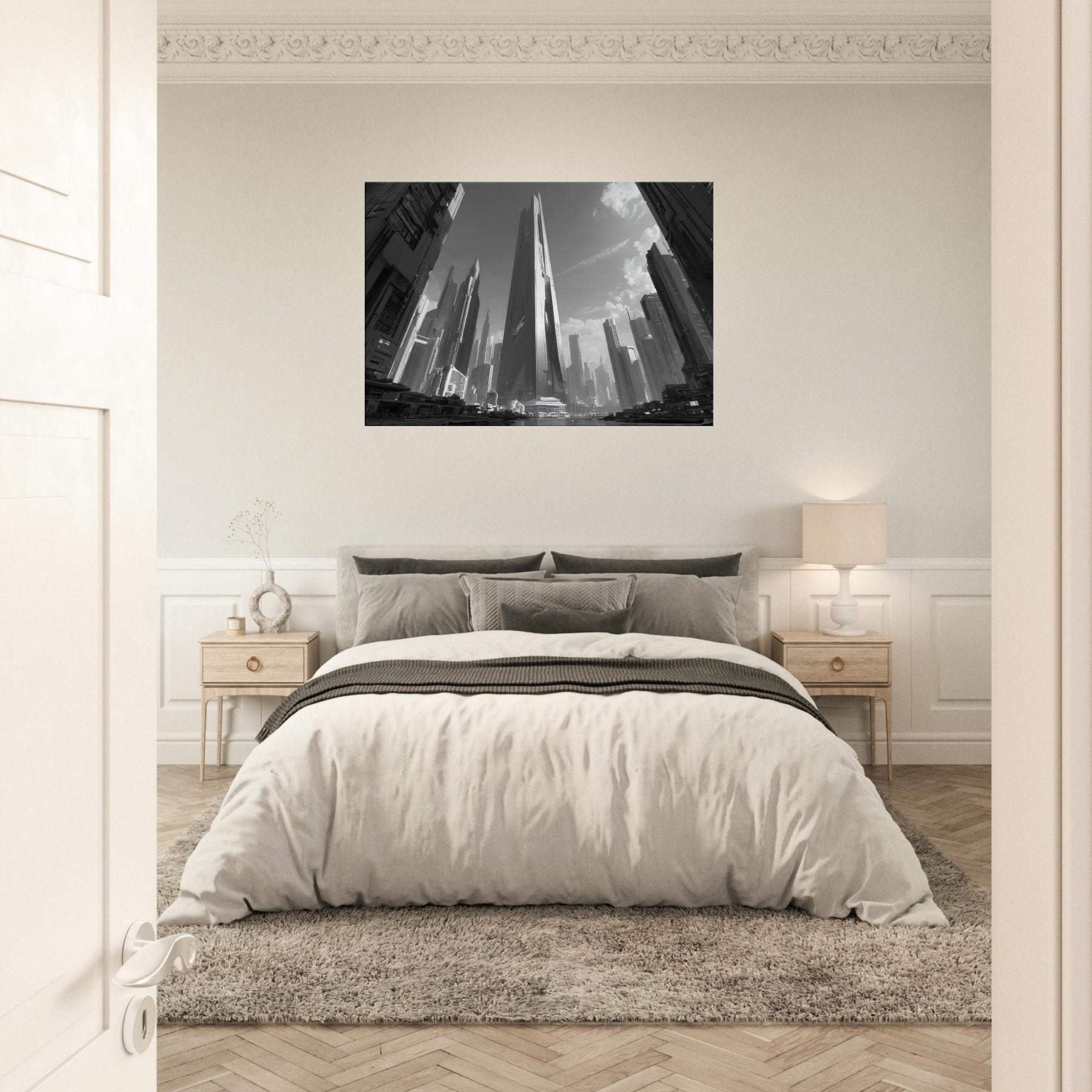 Immerse your space in a monochrome metropolis where the Cyberpunk City looms as a sculptural silhouette. Tall, razor edged towers bite into the sky, their surfaces catching glints of light and shadow in a whisper of rain.