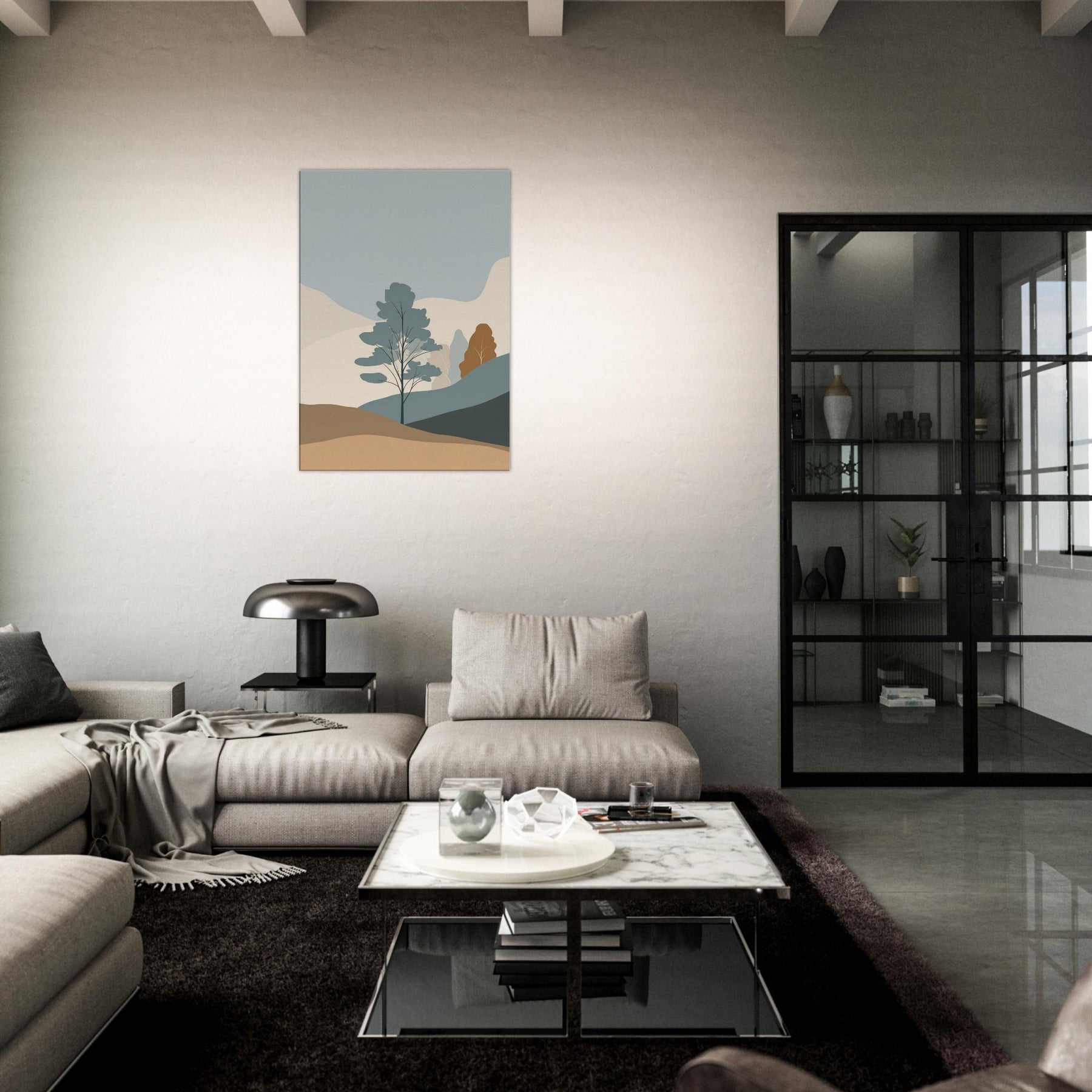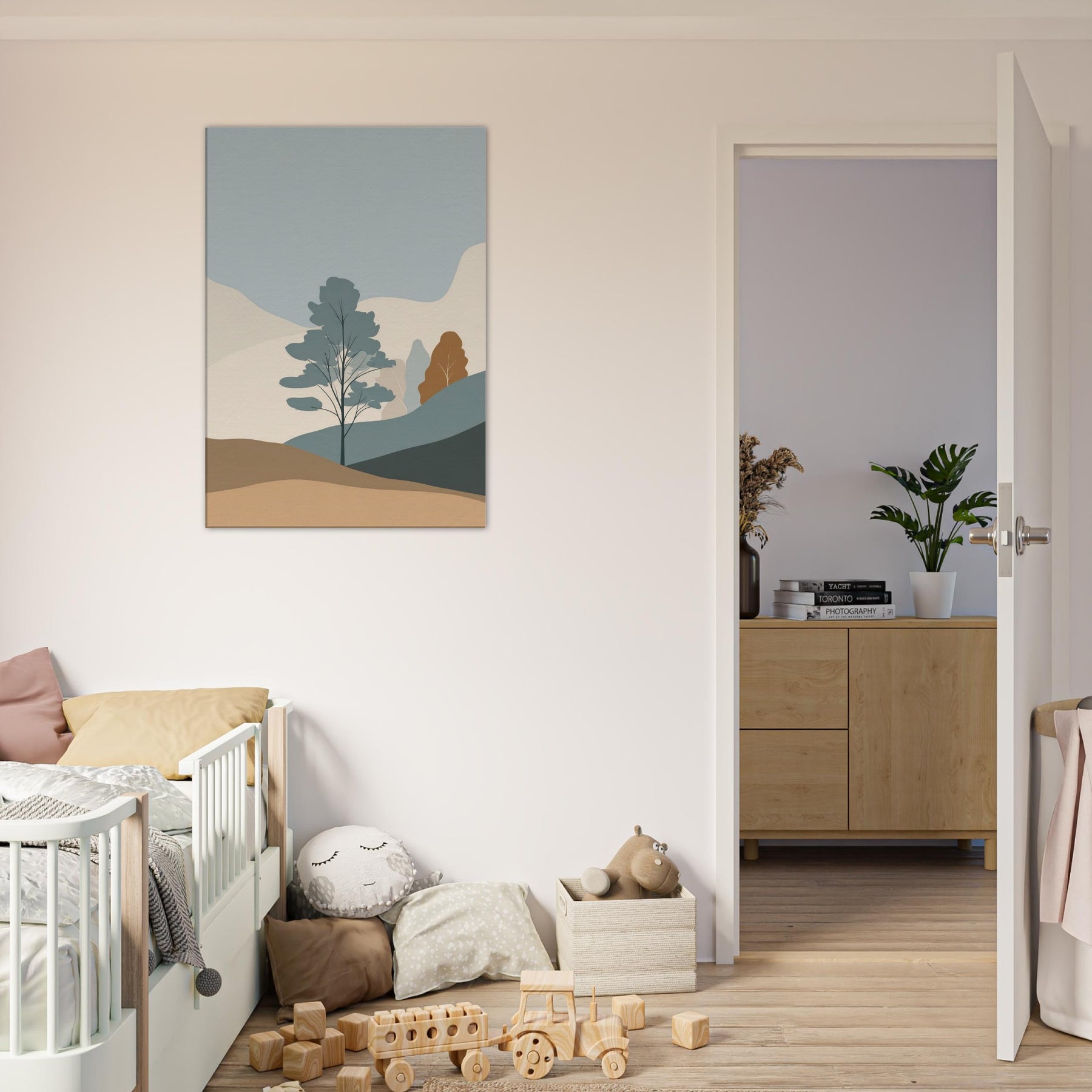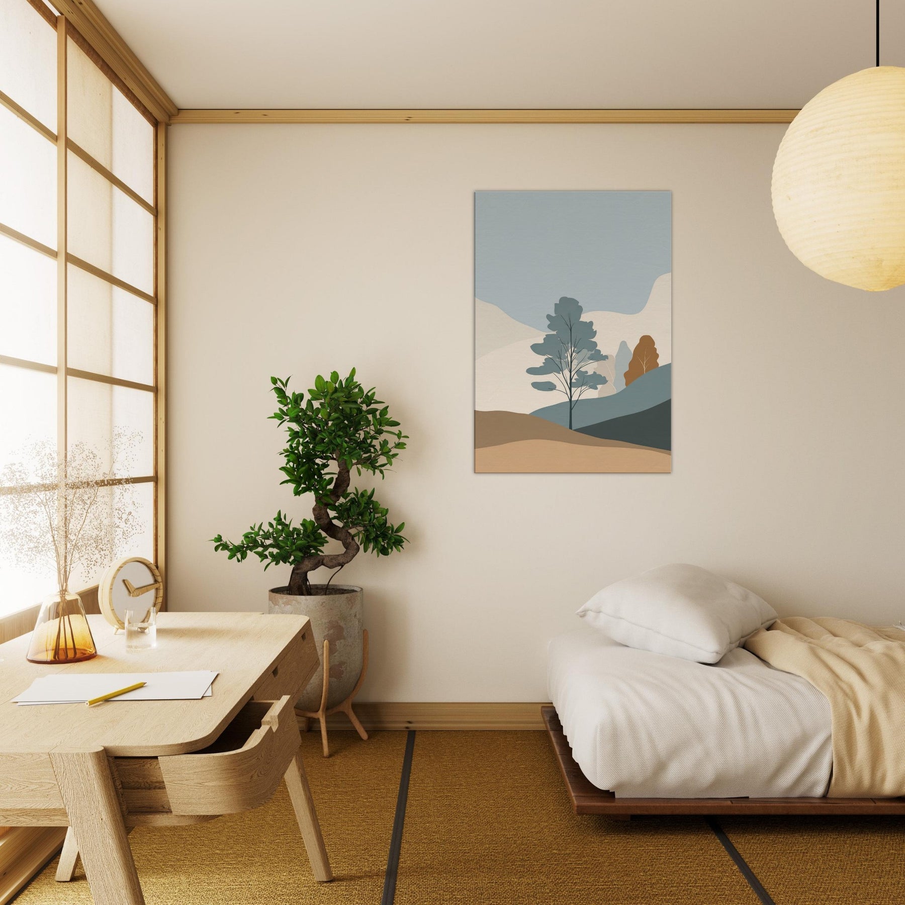 Boreal Forest invites calm into any room with its pared back and whispering tones. In this minimalist composition, the lone tree stands against rolling hills and soft skies, capturing a hush of northern light and the quiet breath of winter. The restrained palette sand, slate, and gentle blues evokes an expansive sky and a forest's steadfast presence, making the space feel larger, more contemplative. Hang it where you want a moment of pause: a sanctuary for conversation, focus, and everyday wonder.