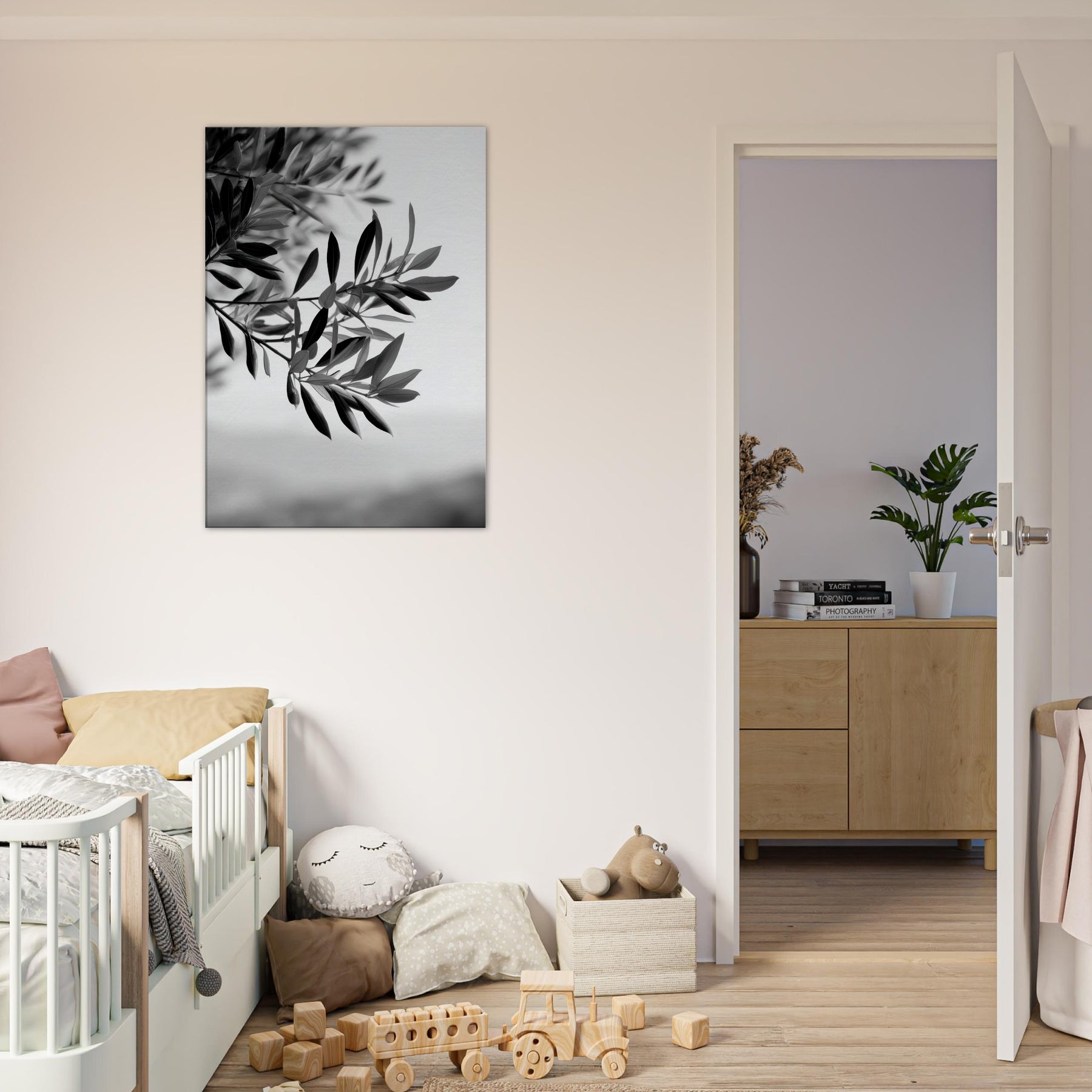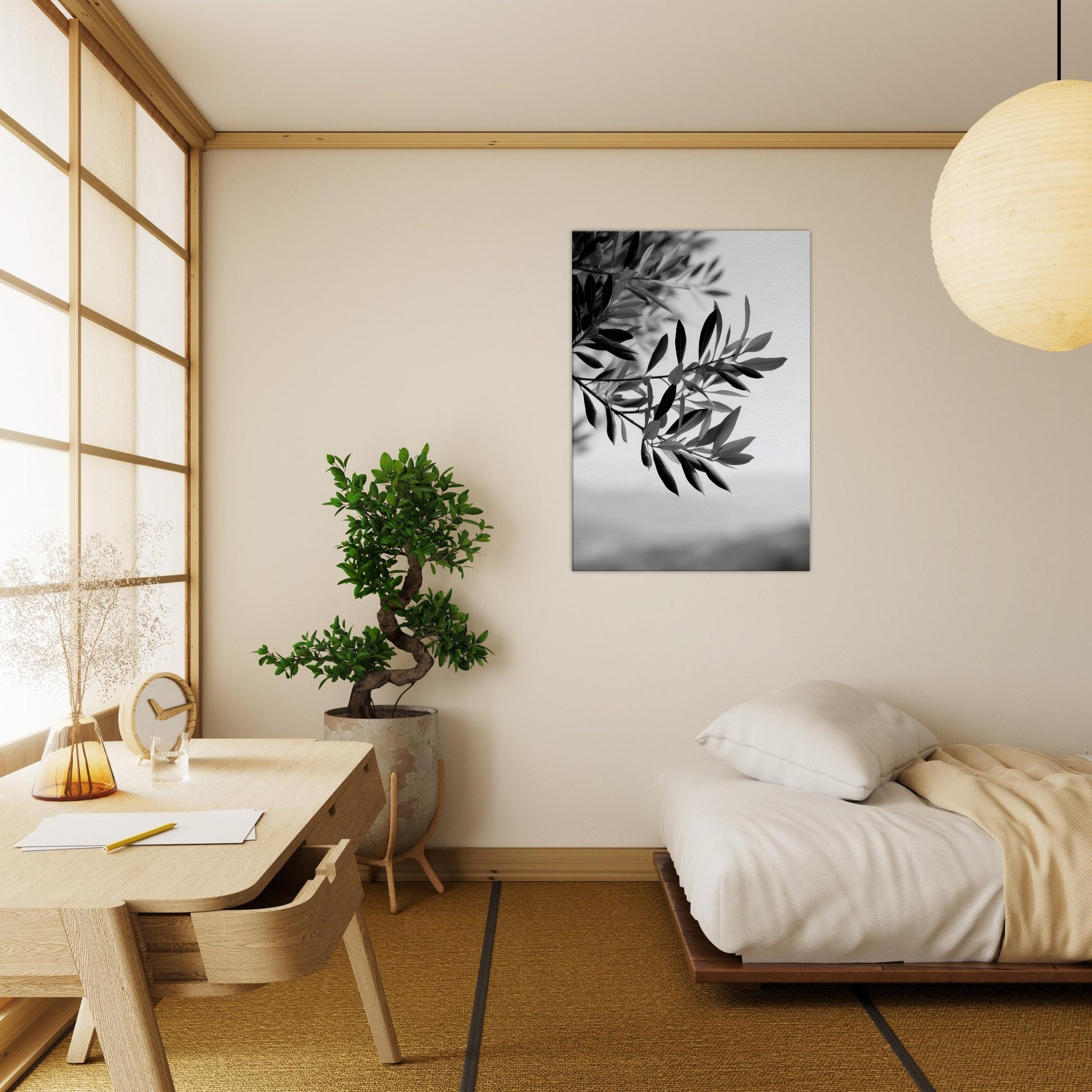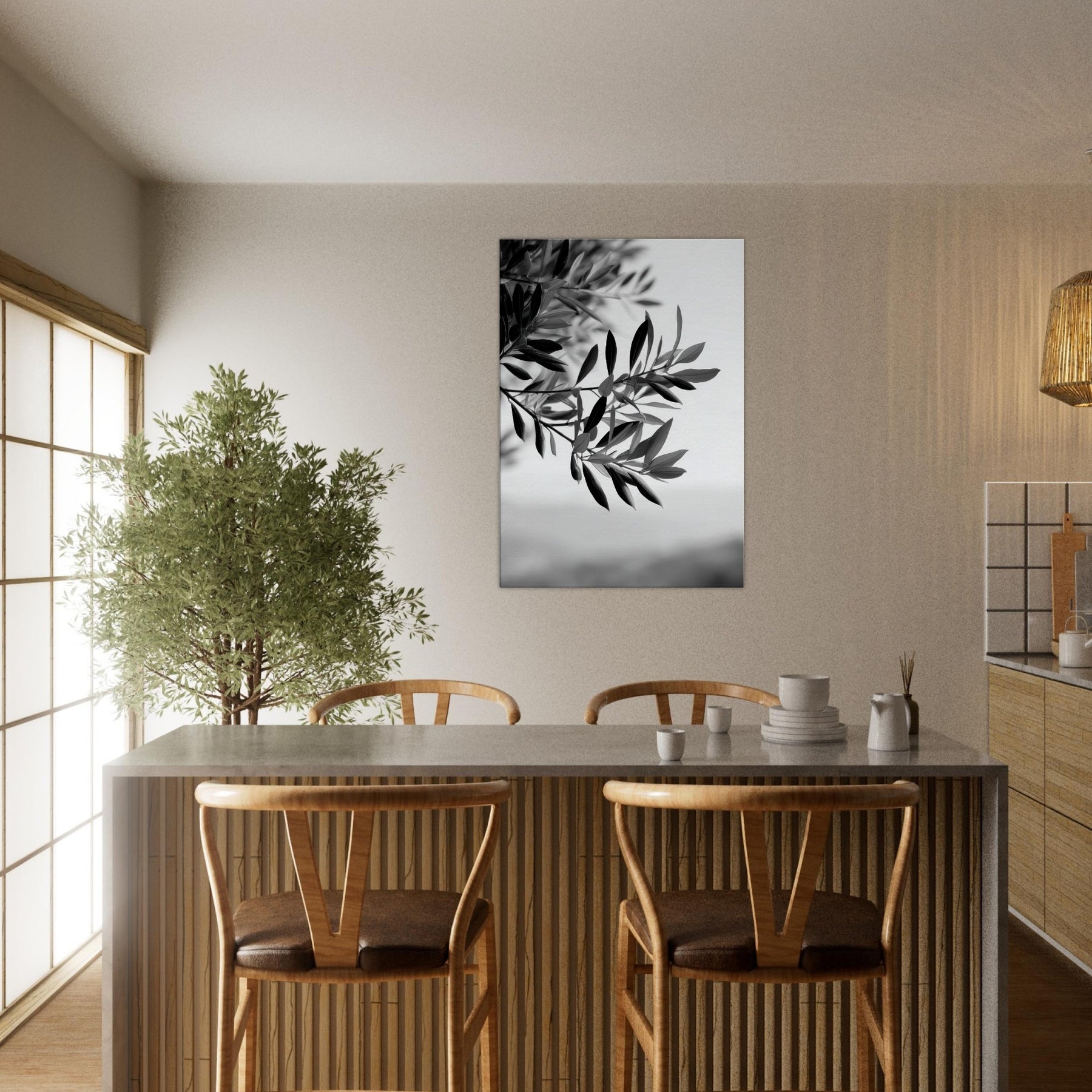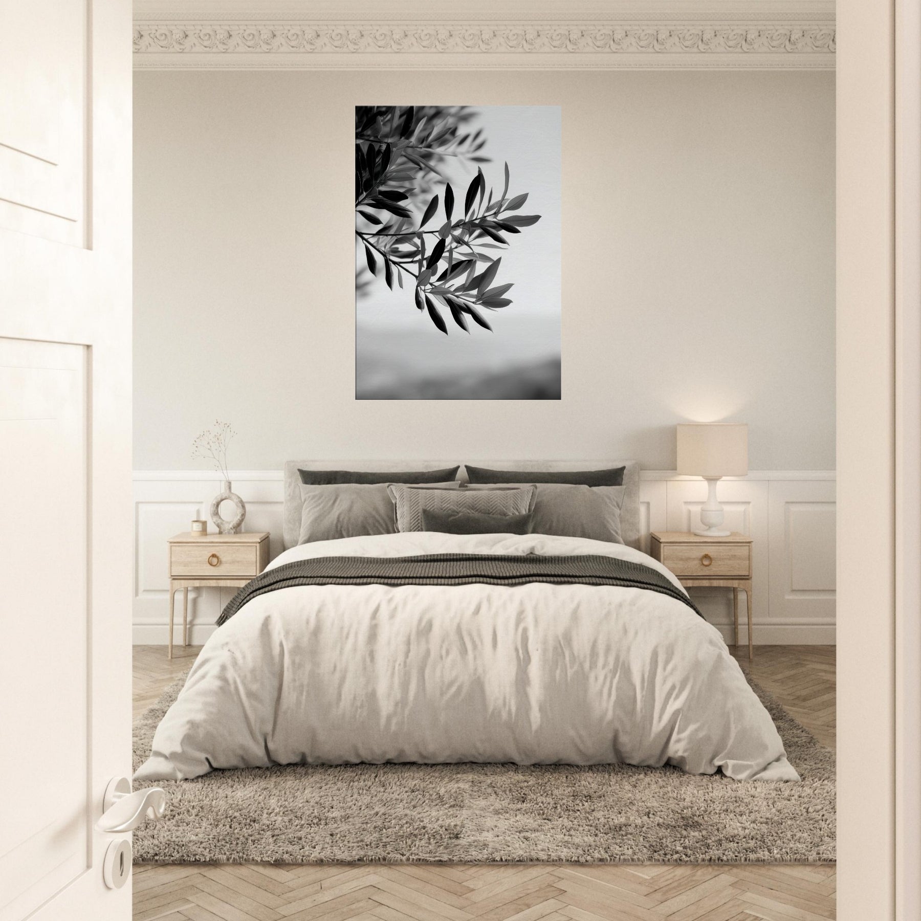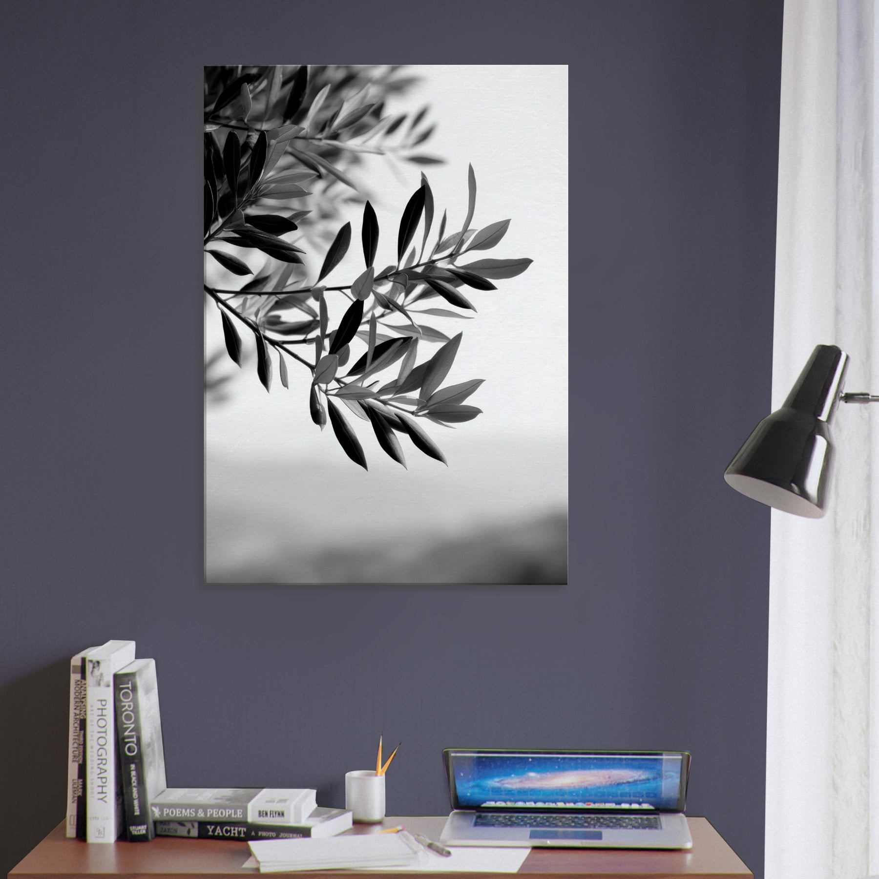 An intimate study in light and shadow, this black and white rendering captures the olive branch in quiet, contemplative detail. Its slender leaves unfurl like whispered prayers, casting delicate tonal shifts that breathe calm into any room. Framed in a way that invites close looking, the piece elevates a living space with a restrained, nature inspired elegance perfect above a sofa or in a reading nook. The olive branch becomes a serene reminder of resilience, balance, and timeless beauty in everyday life.